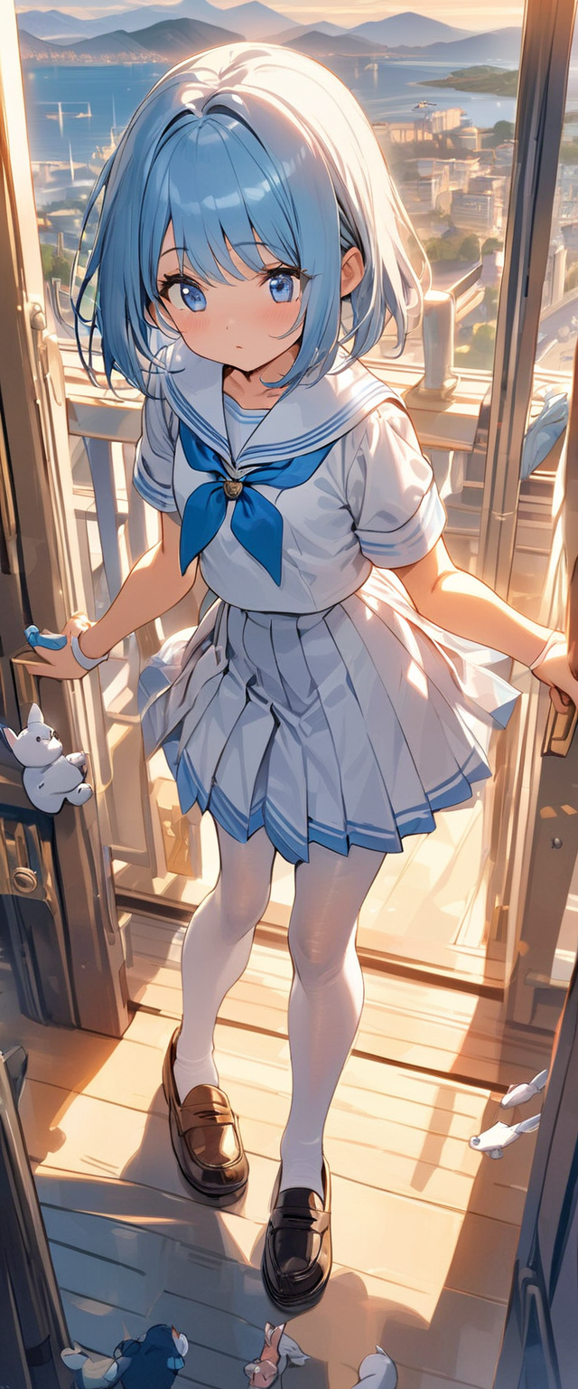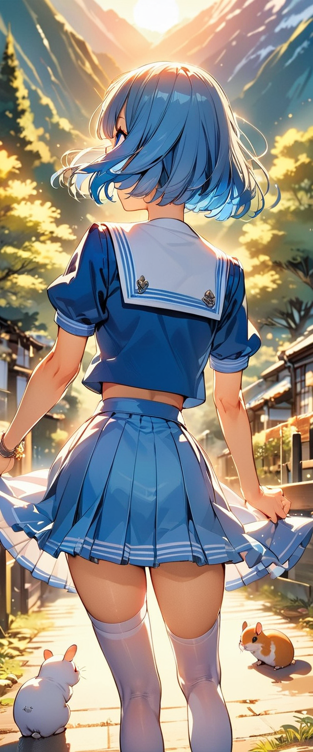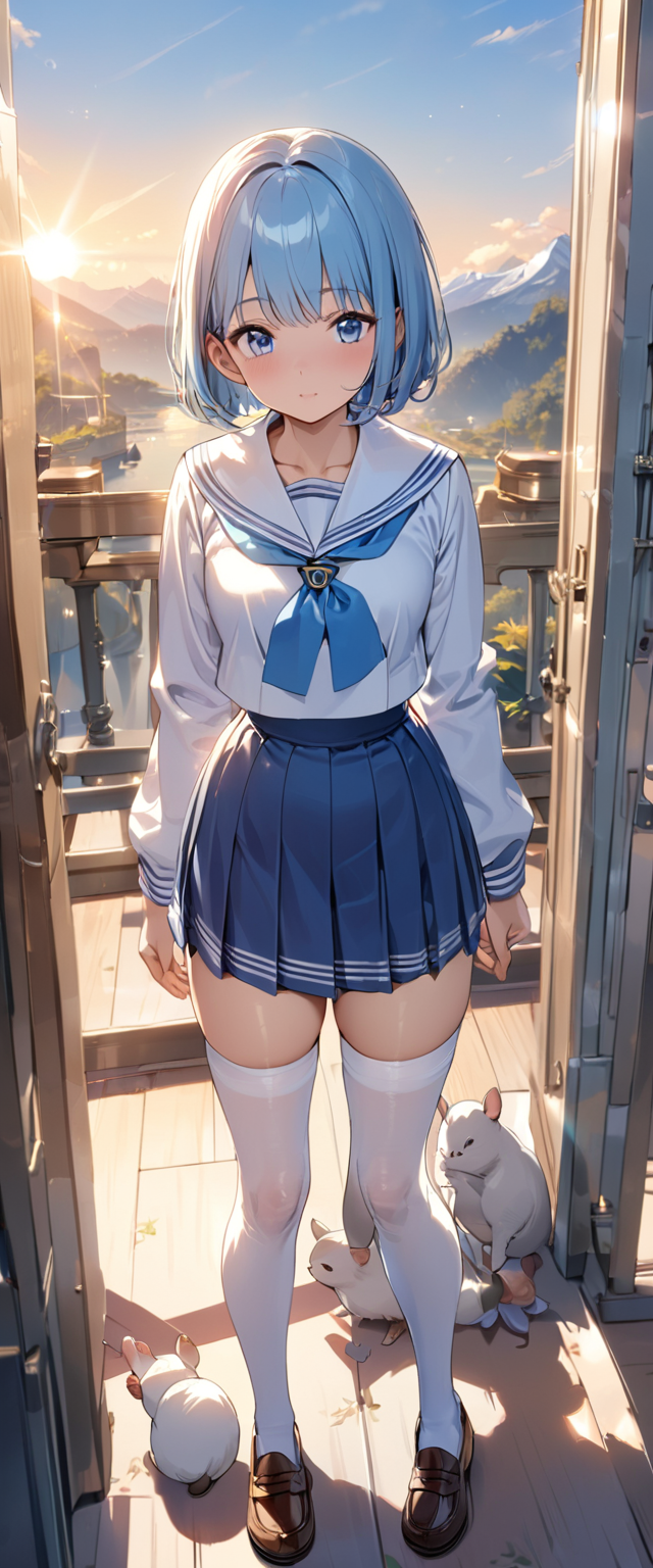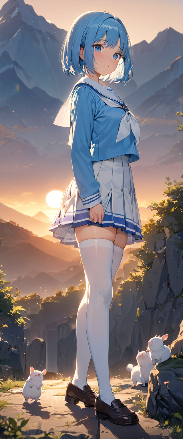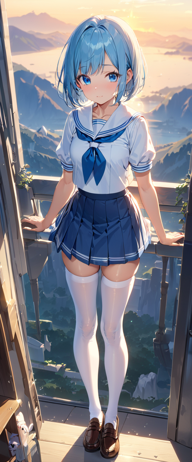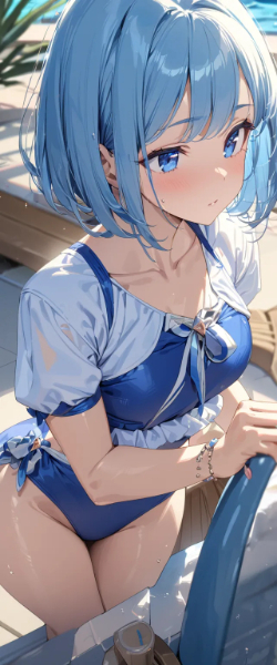 制服姿の青髪さん