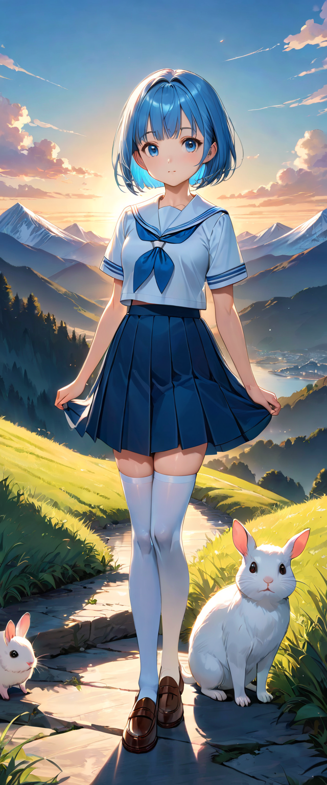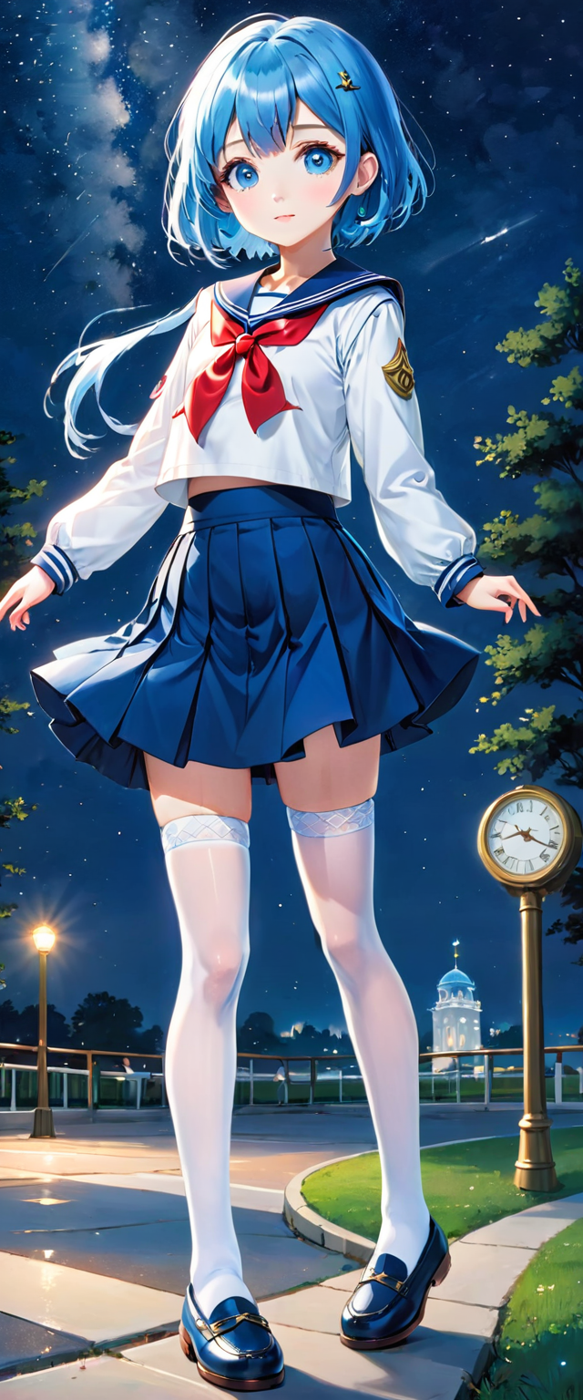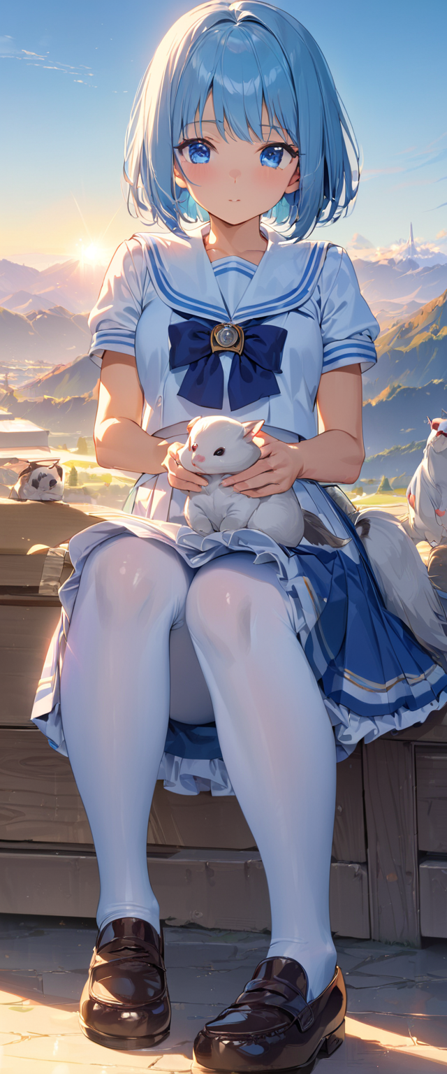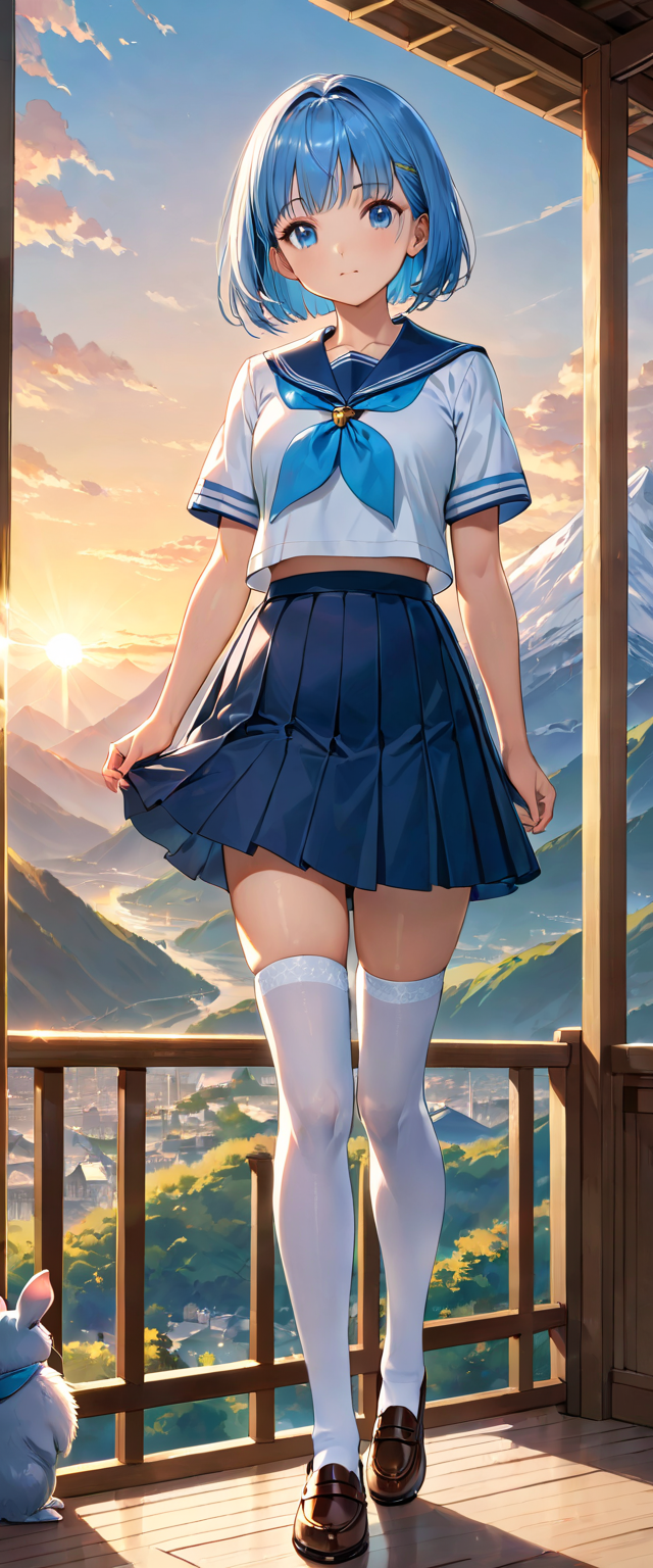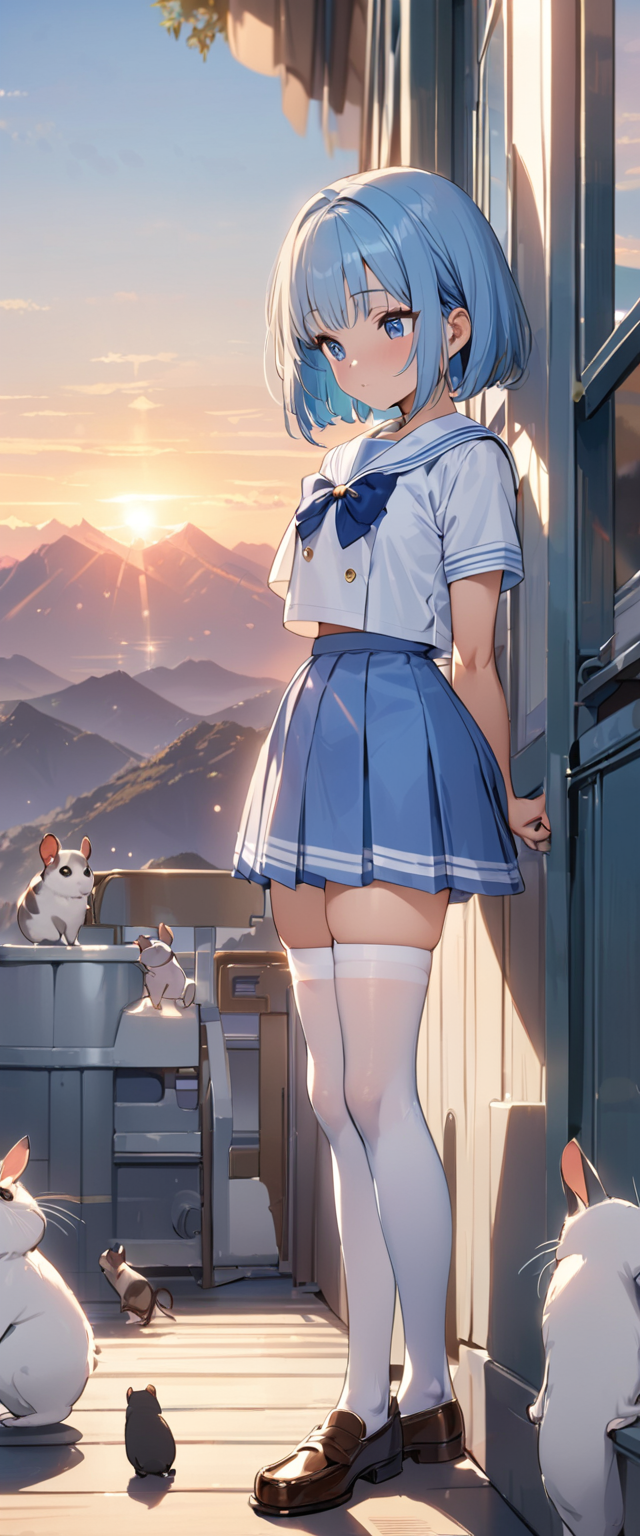 制服姿の青髪さん