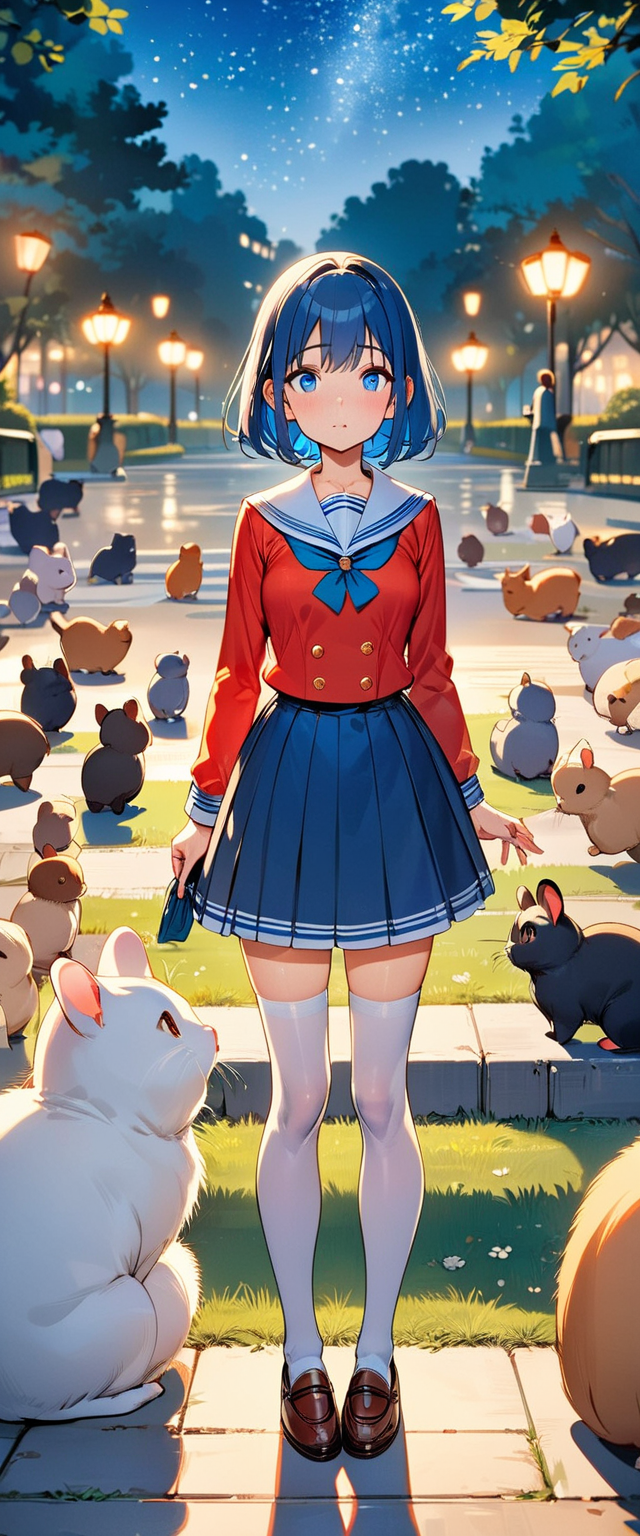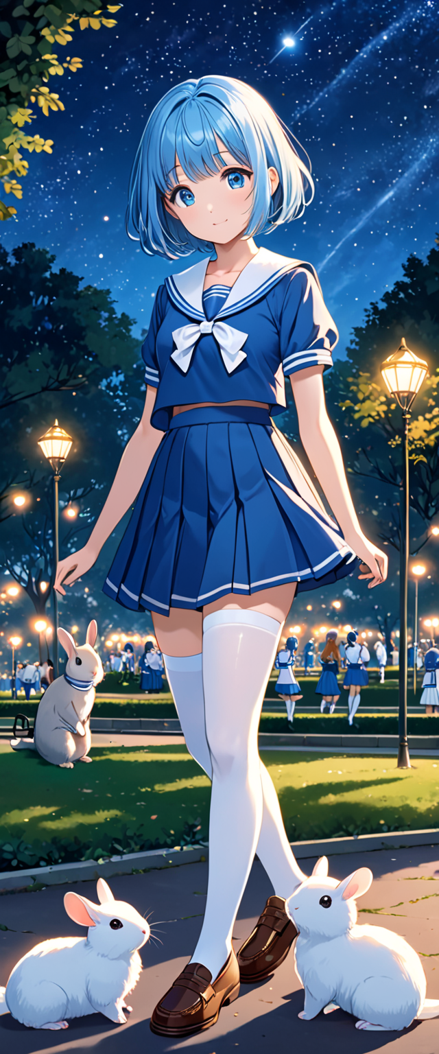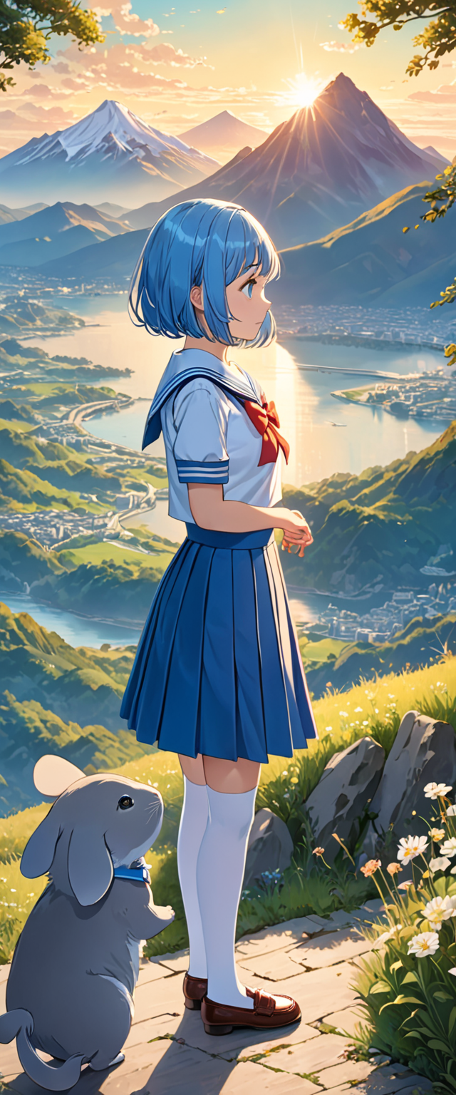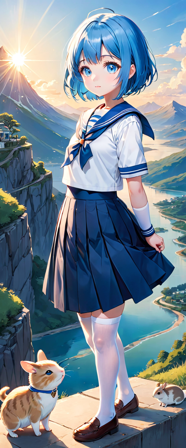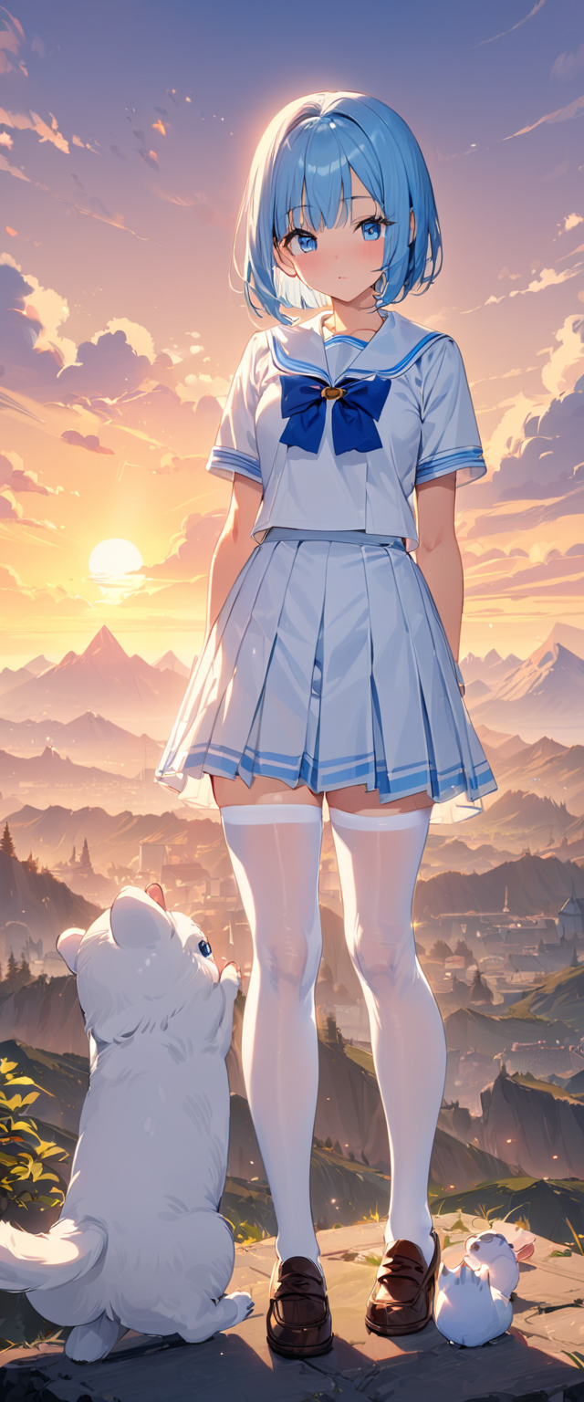 制服姿の青髪さん