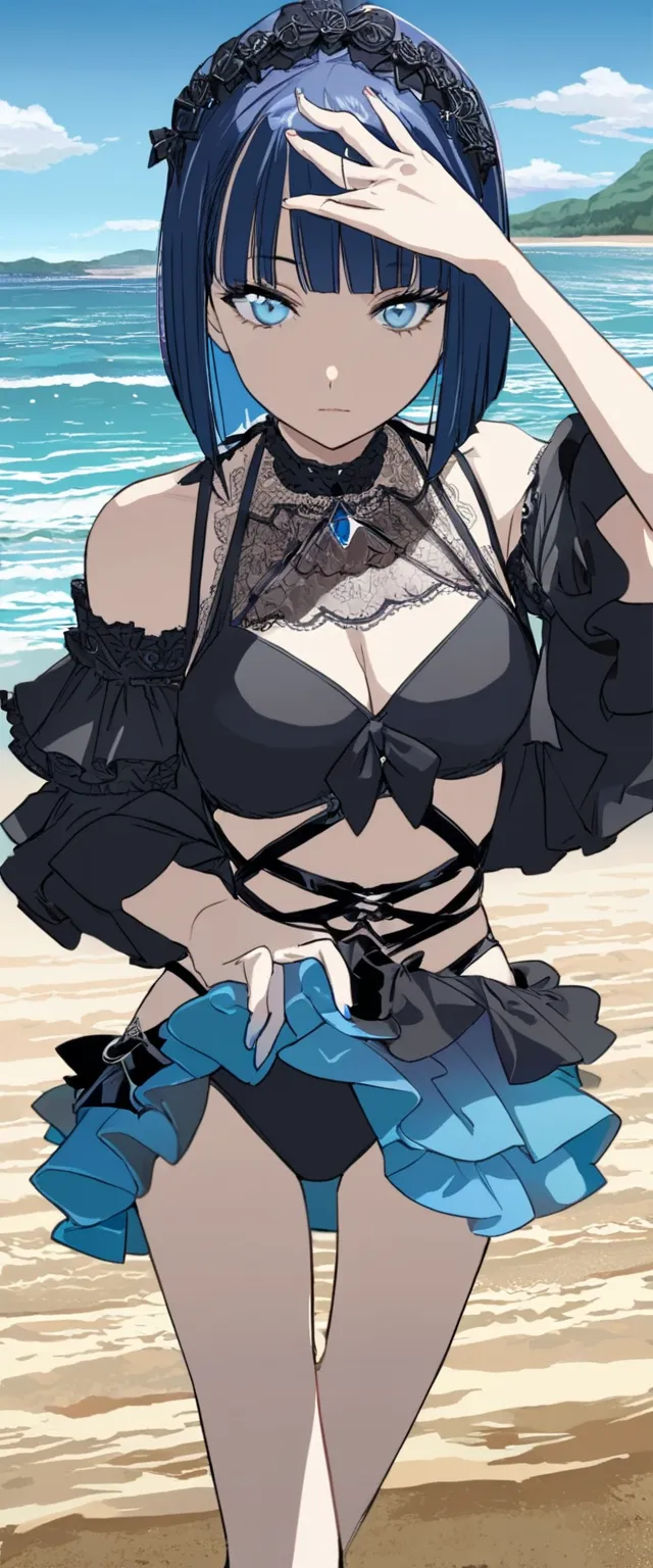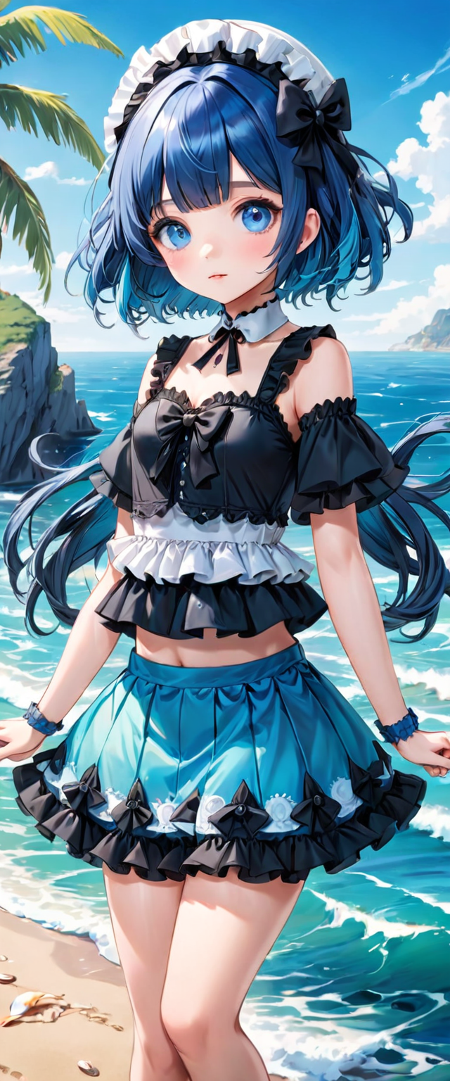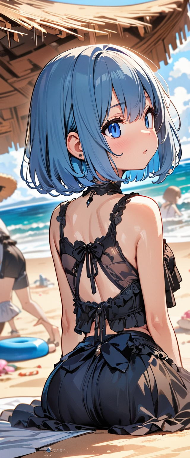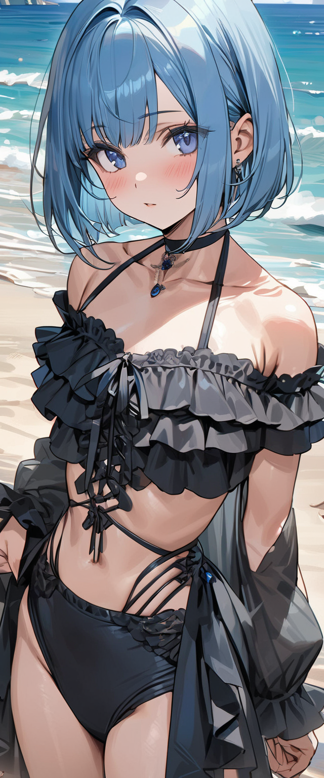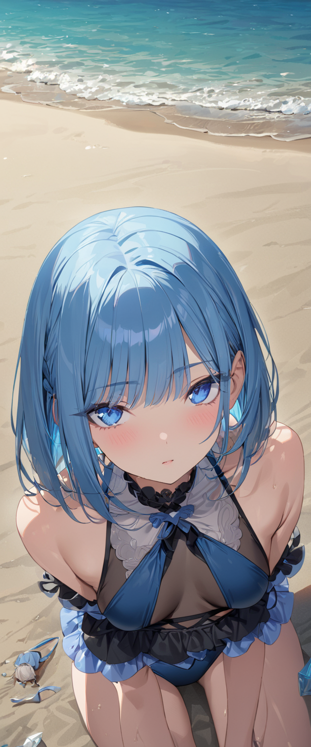 ビーチの青髪さん