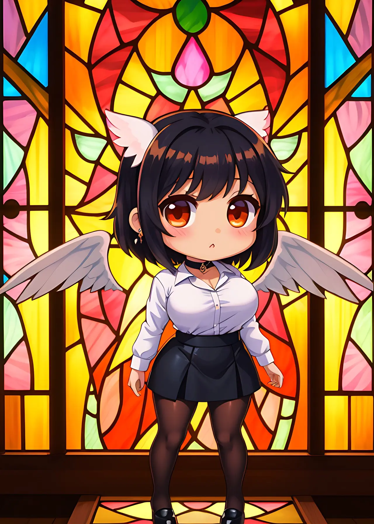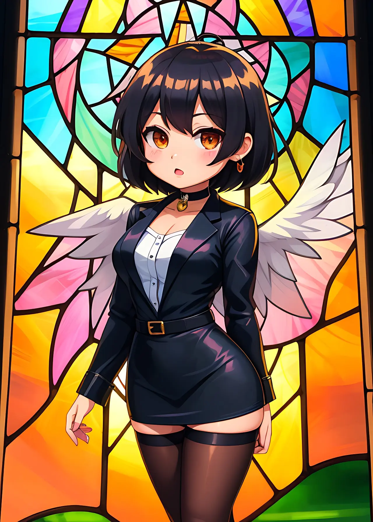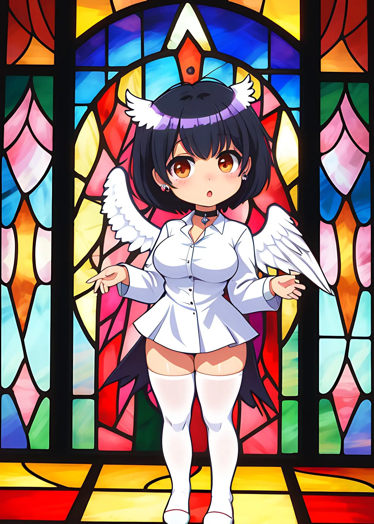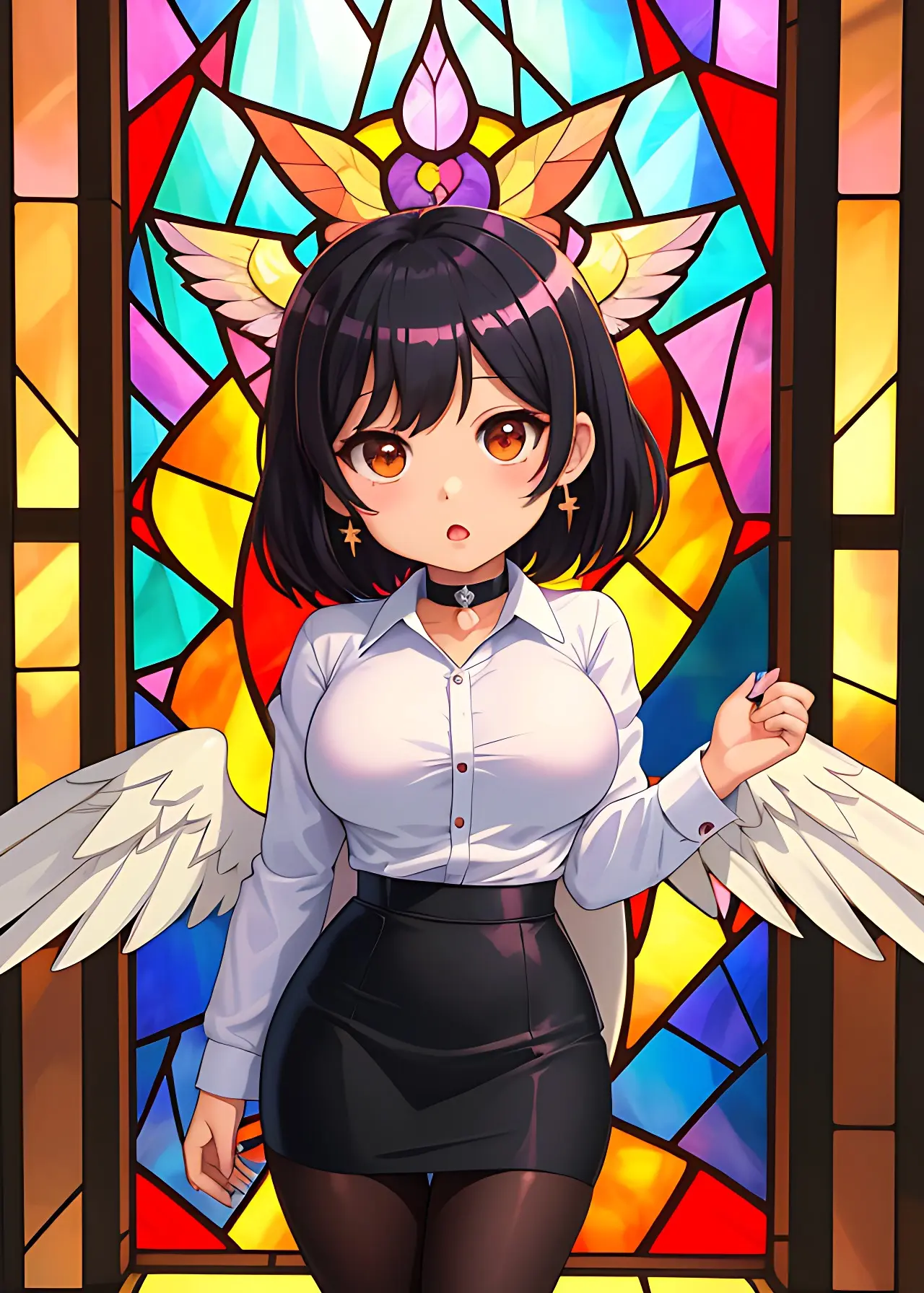 彼女の翼はステンドグラスの模様か、はたまた彼女の一部か。