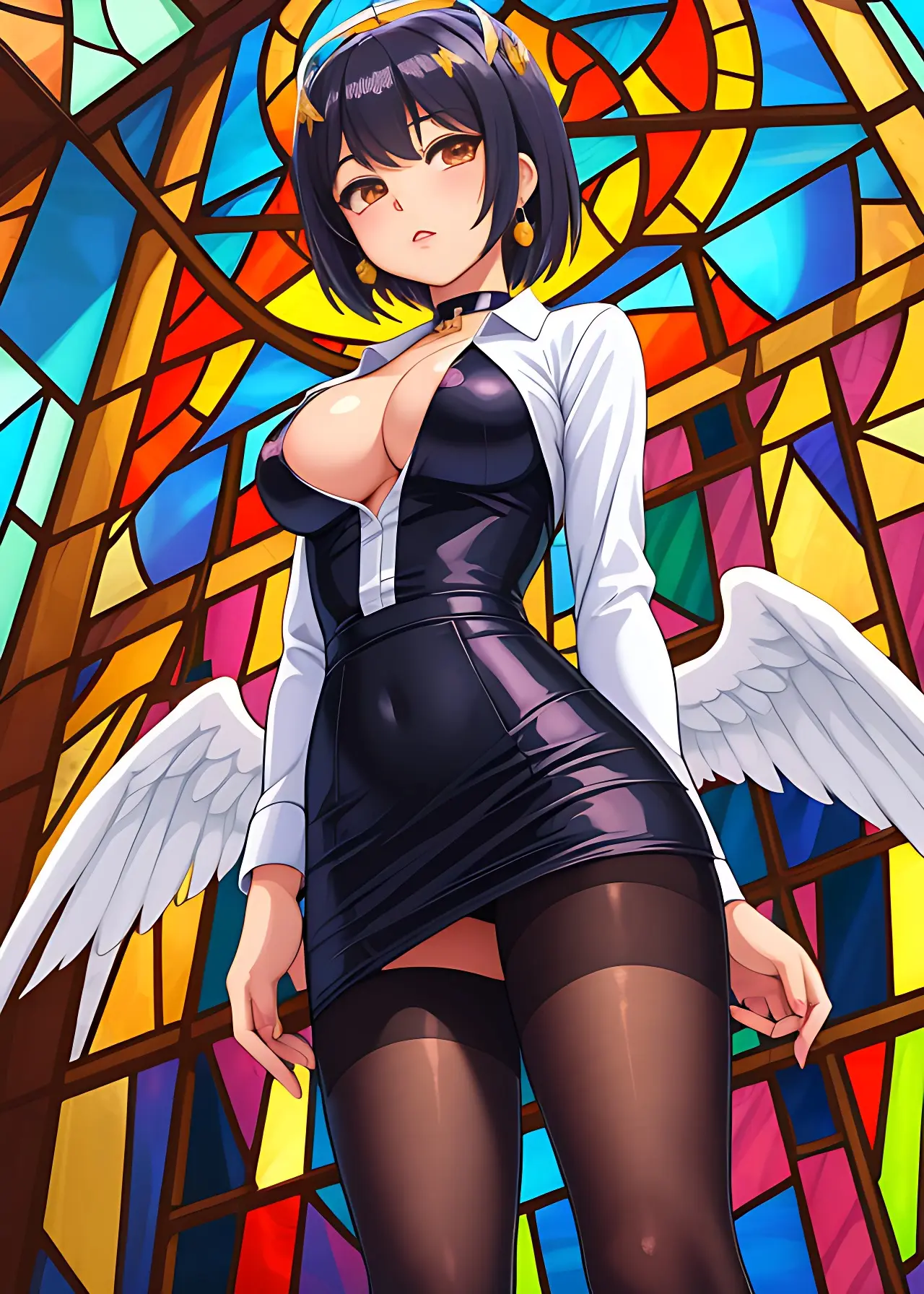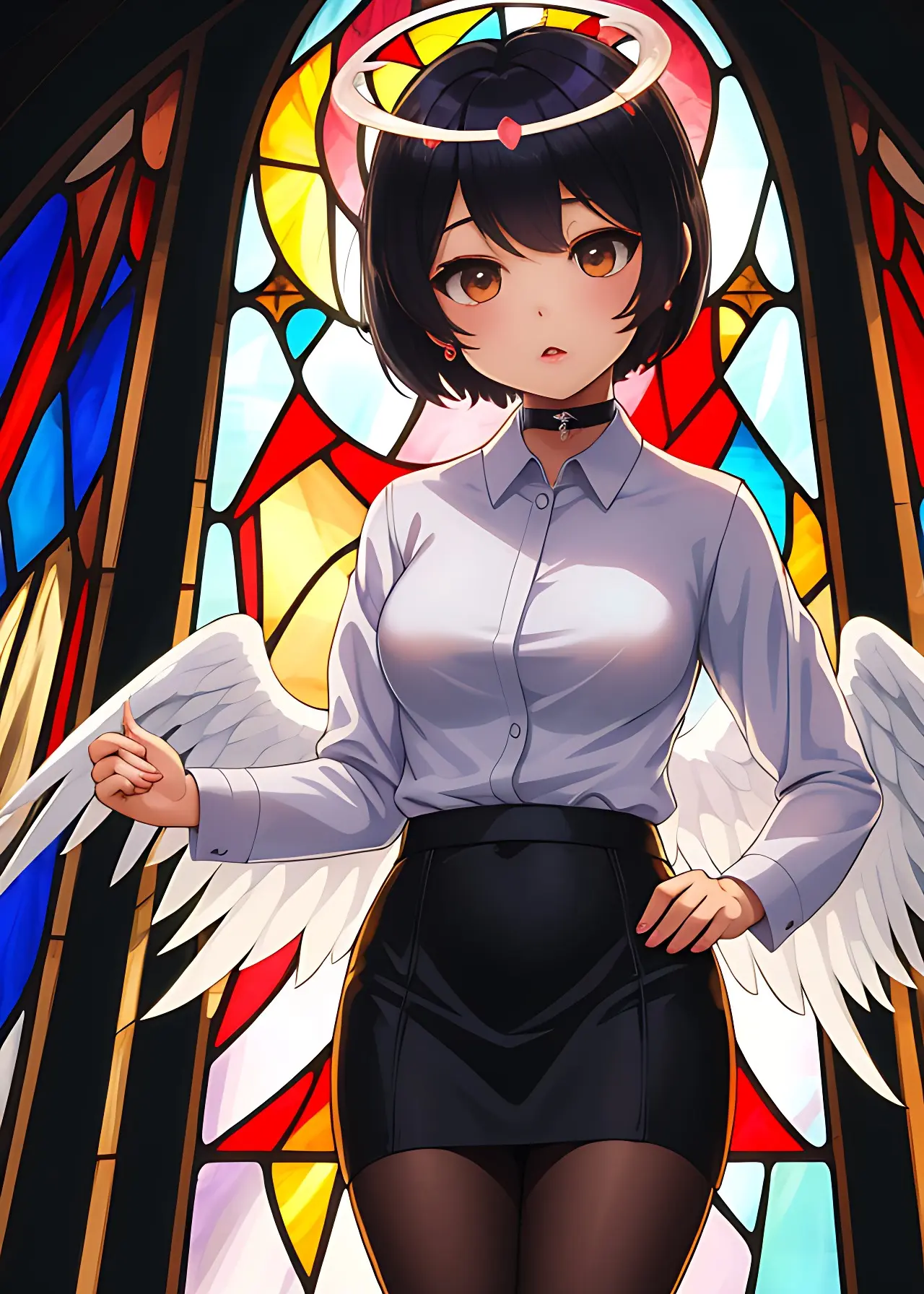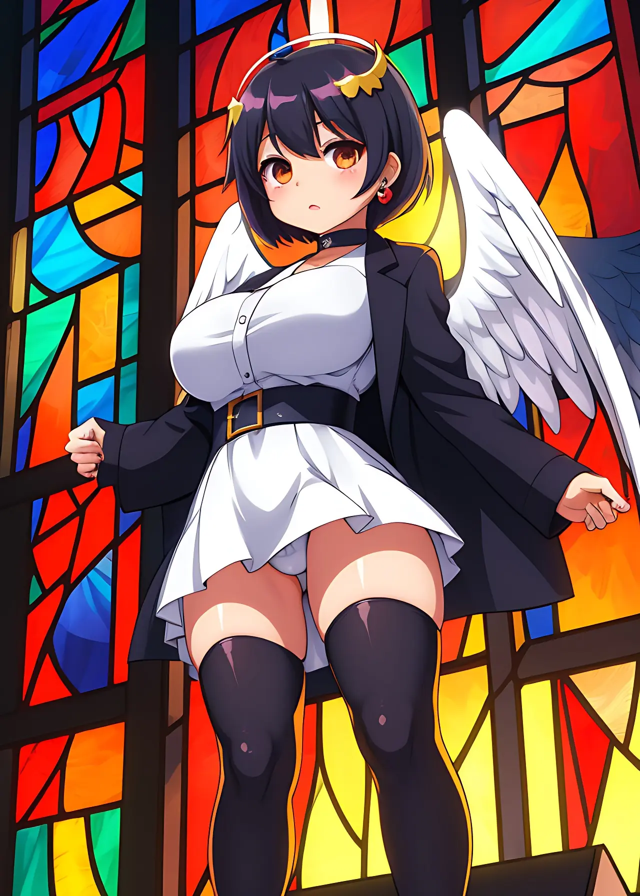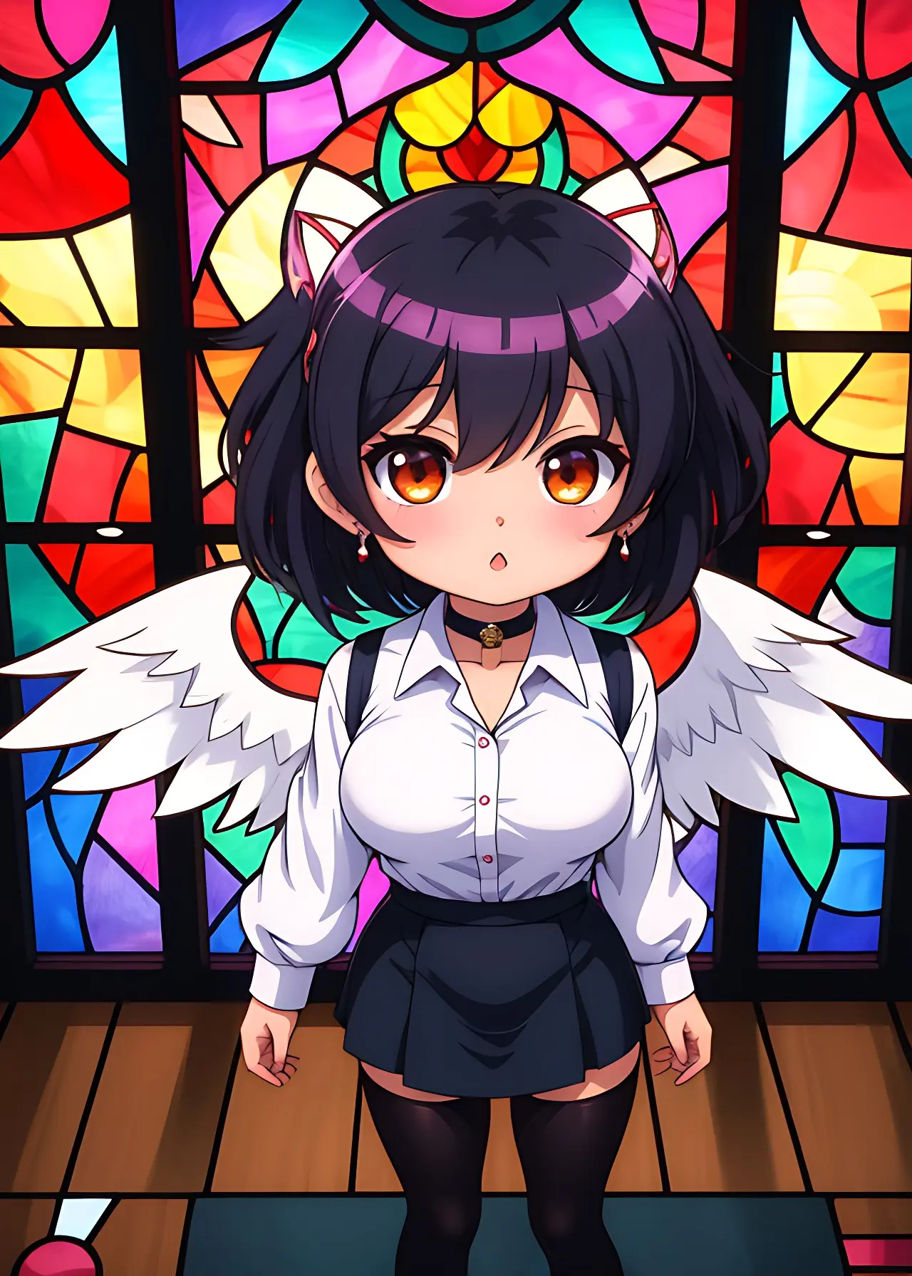 彼女の翼はステンドグラスの模様か、はたまた彼女の一部か。