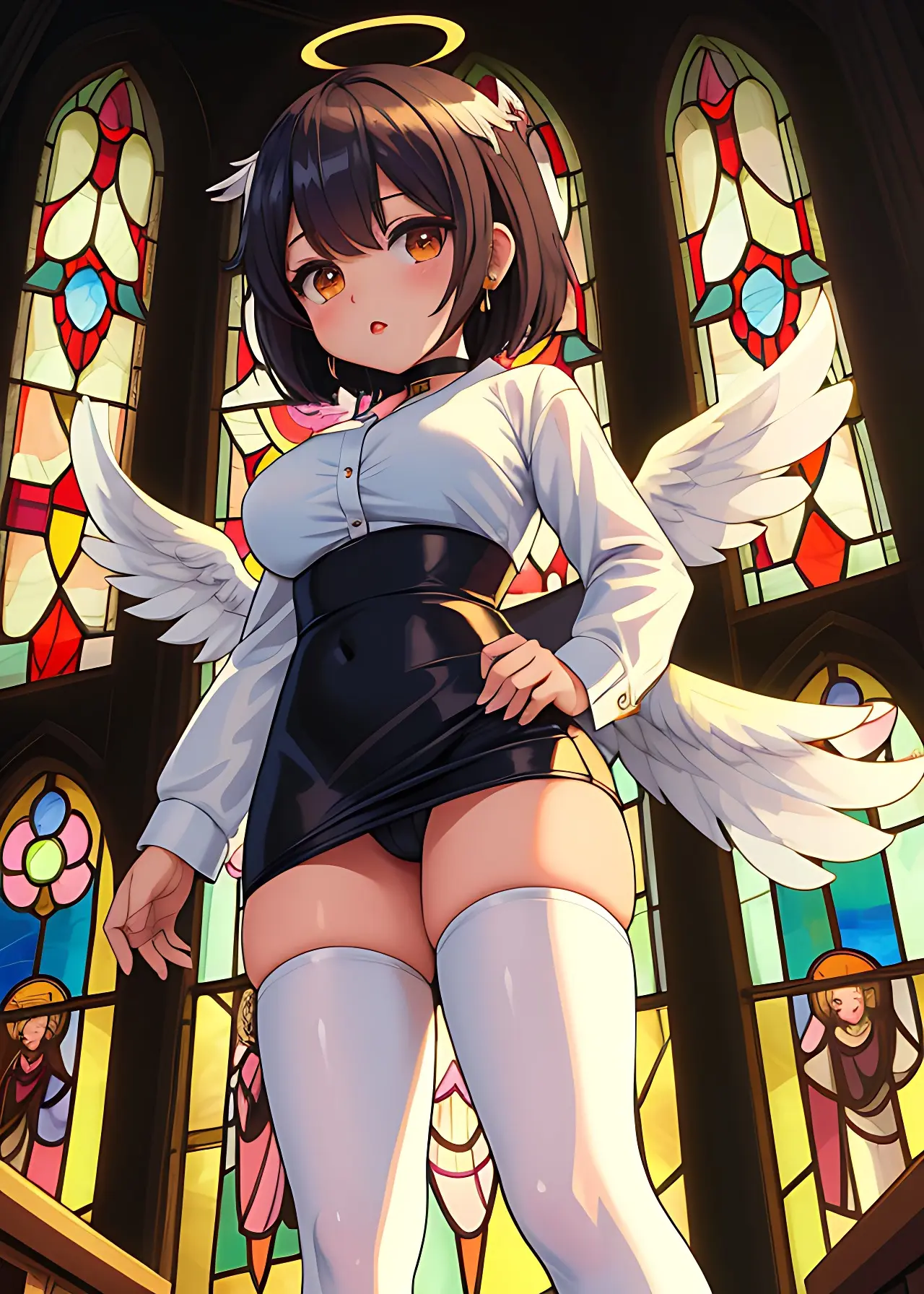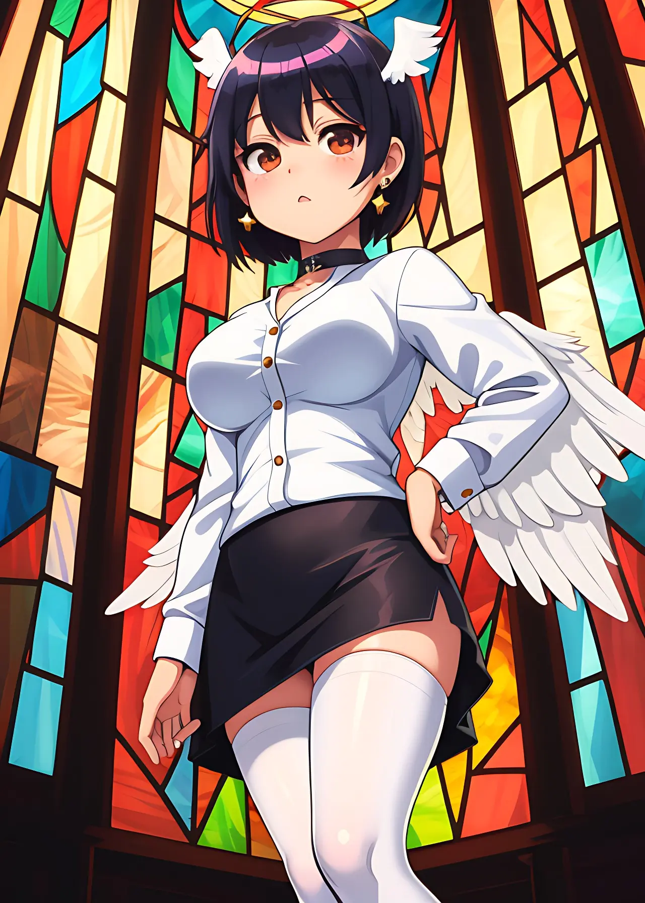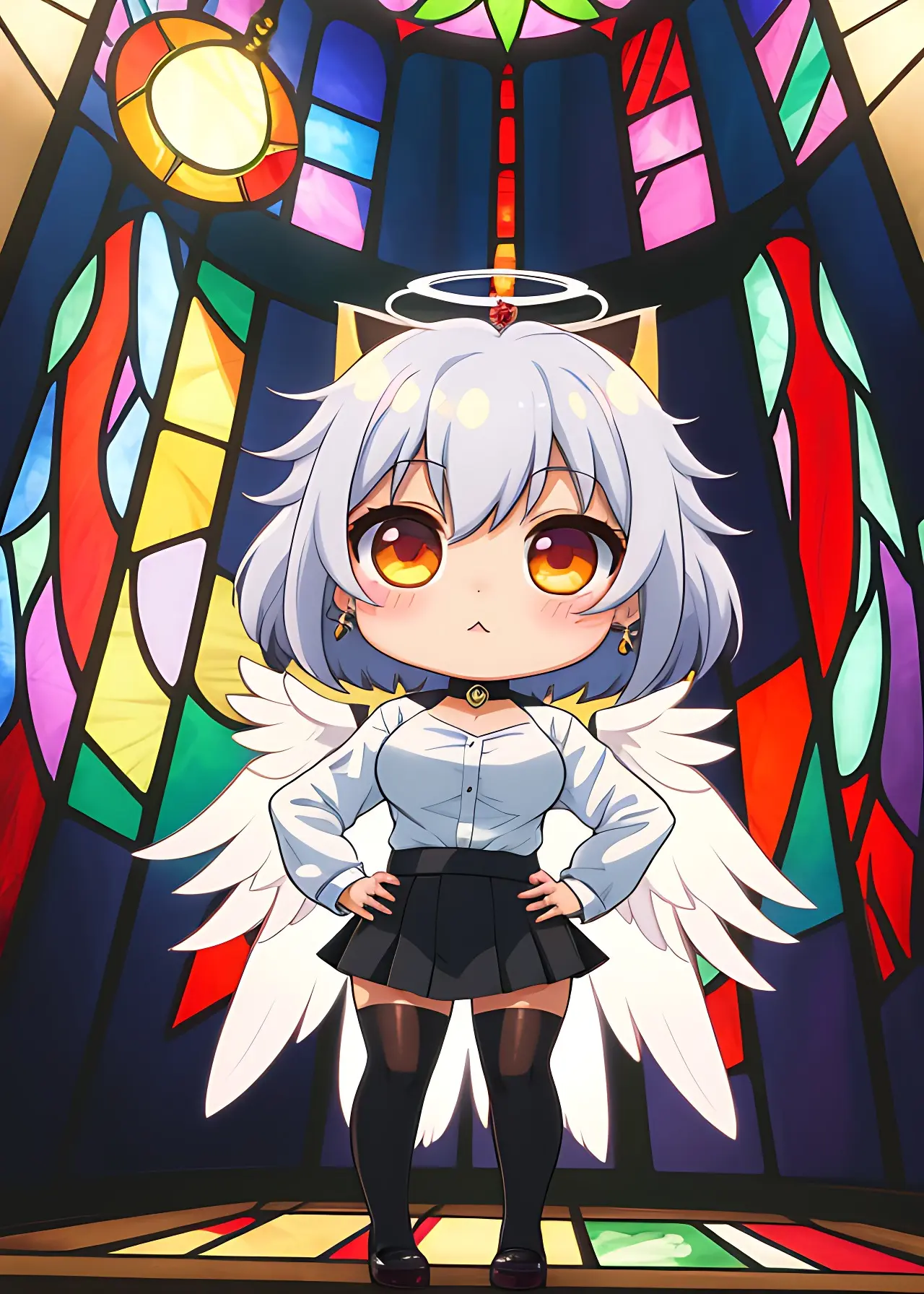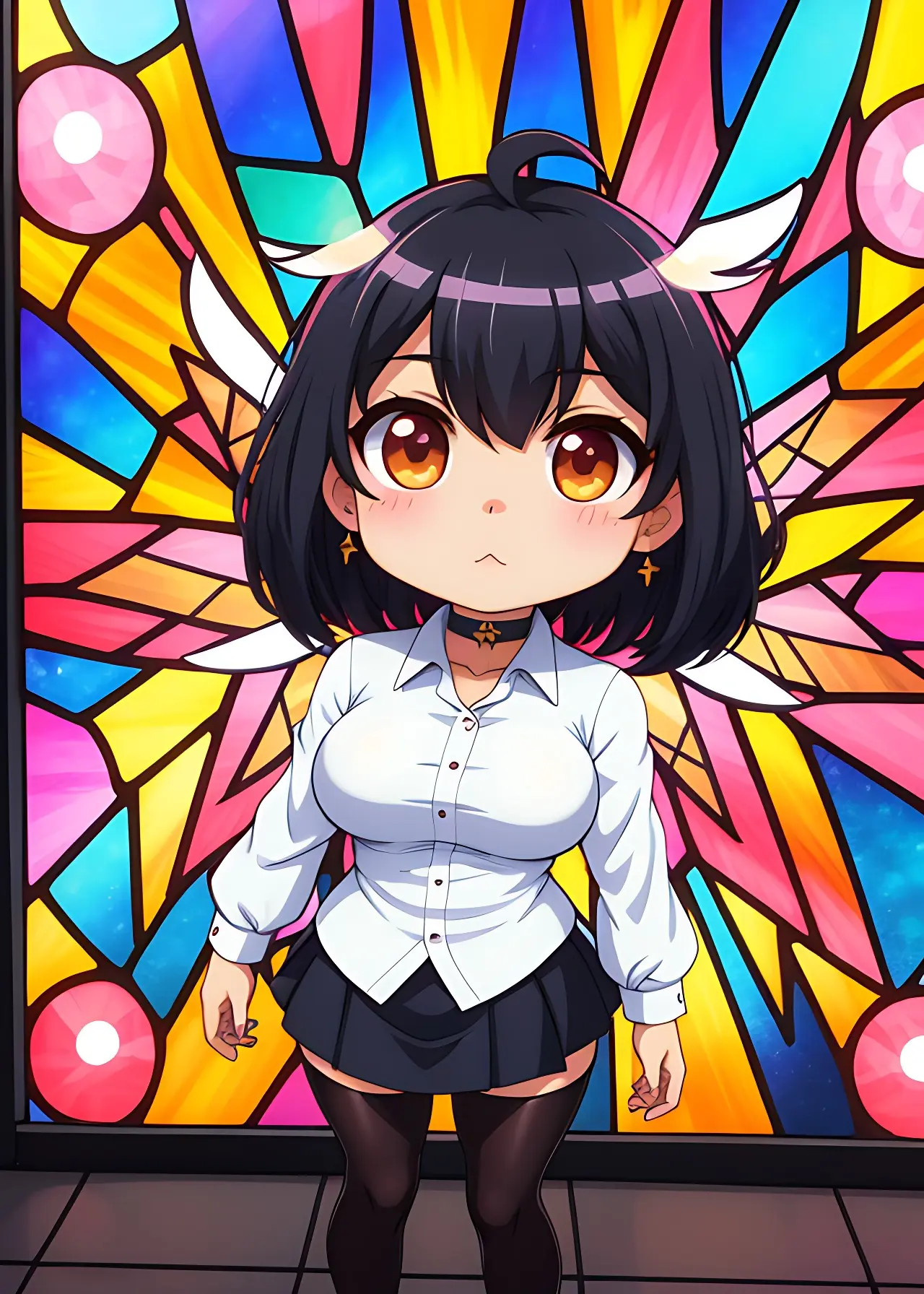彼女の翼はステンドグラスの模様か、はたまた彼女の一部か。