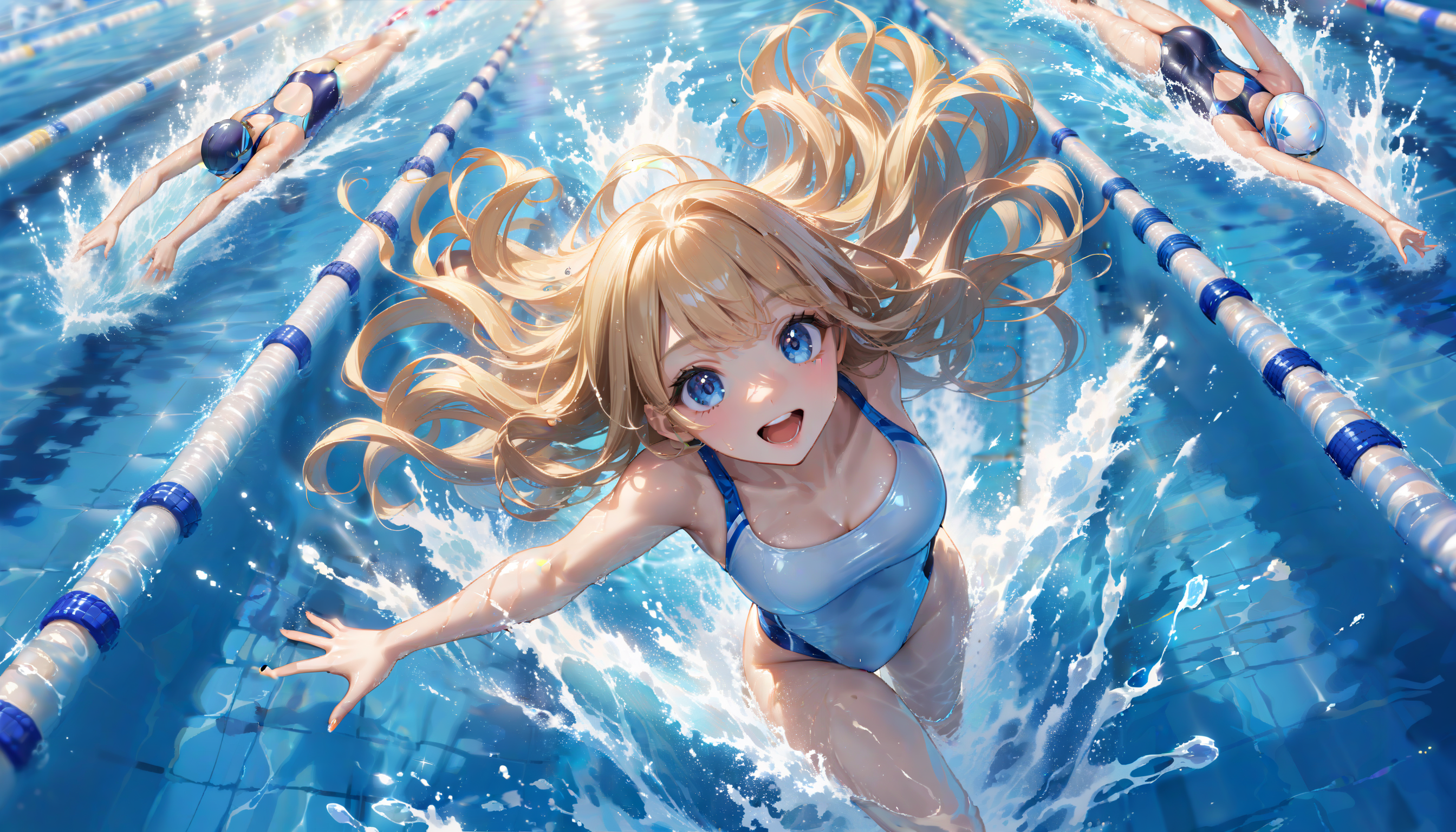 競技の水泳の事は良く分かりませんが「自由」形なら水上を走っても大丈夫な筈ww
