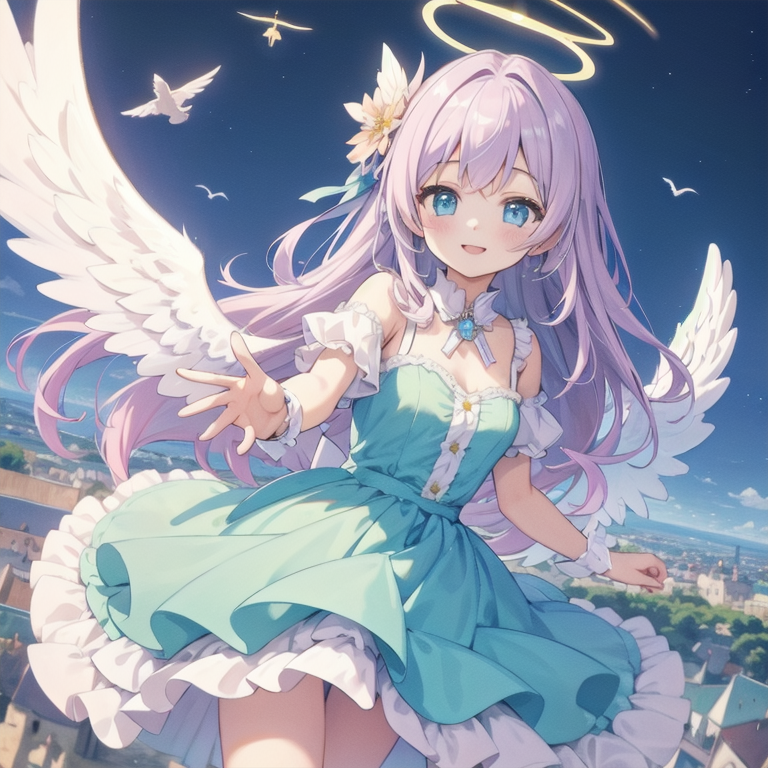 (masterpiece, best quality:1.3), illustration, (extream detailed), one girl, angel Descending