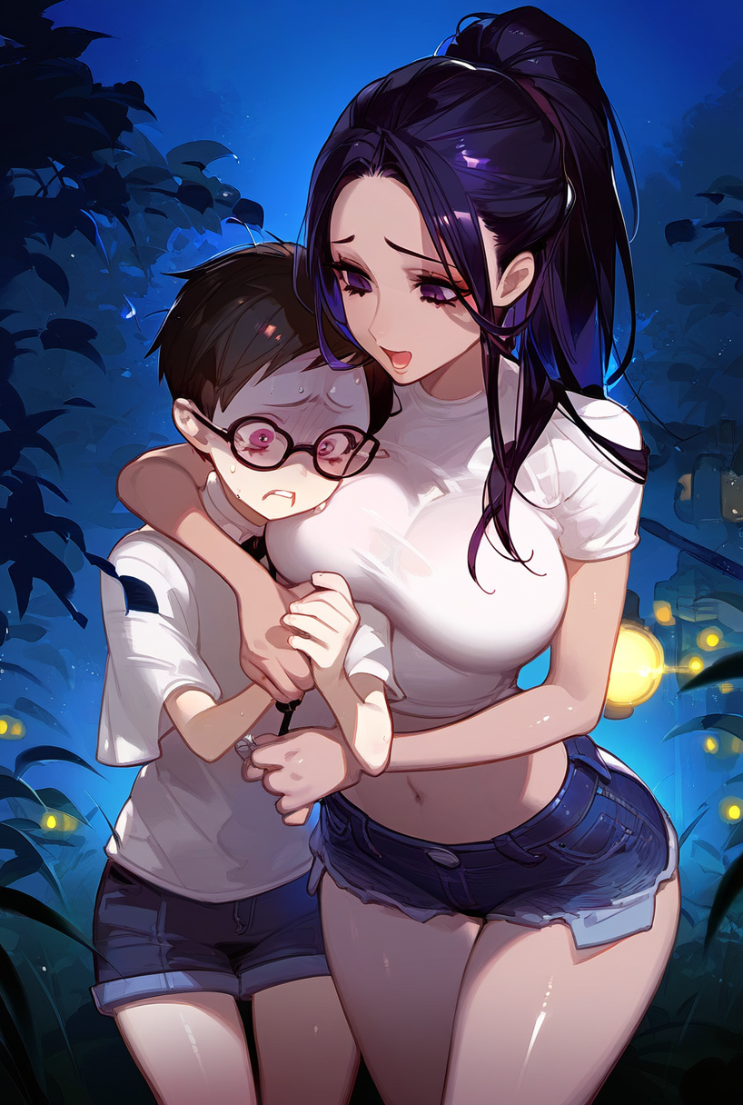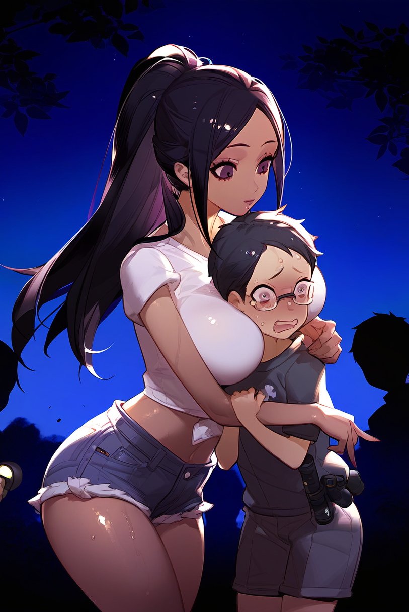 それぞれいちゃラブ展開を期待して肝試しに臨んだ我が家の看板娘ツートップのママと凉香お姉ちゃん、そして僕くんだったが、予想外に肝試しが怖すぎた😱😱😱