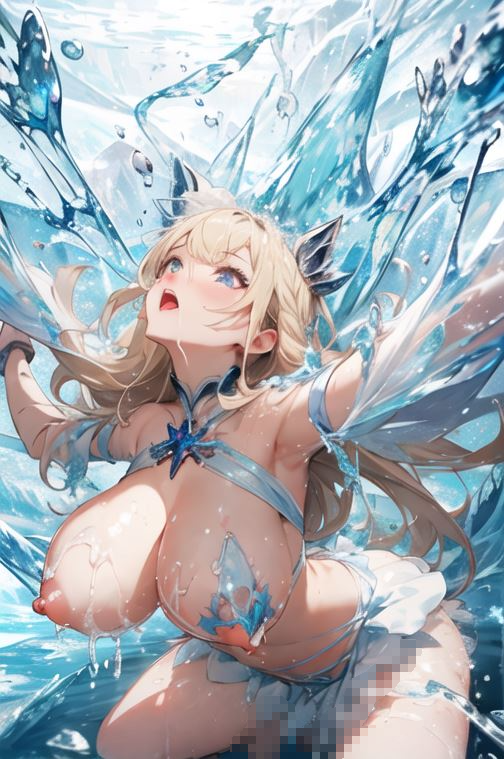 敵の氷魔法が直撃したヒロインのコスチュームが剥がれ落ち