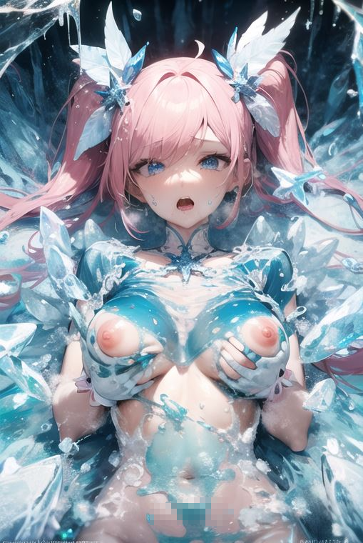 氷の磔状態で動けないヒロインは寒さで思考が鈍る中、