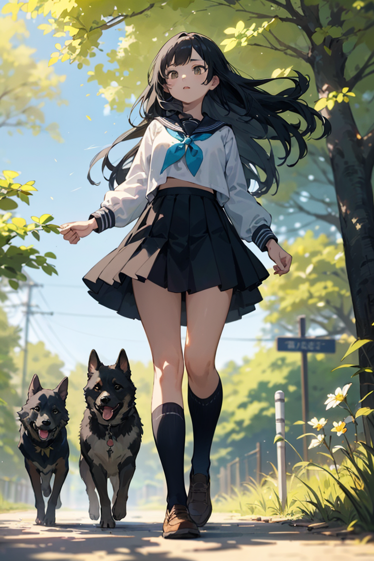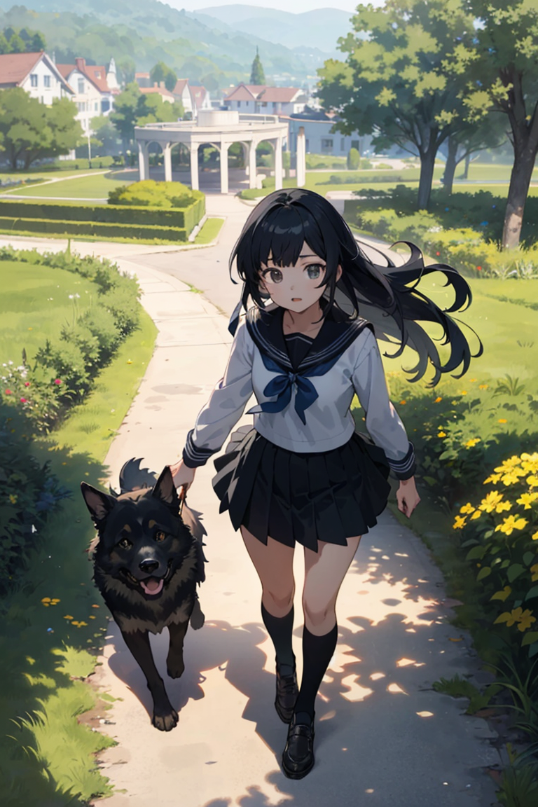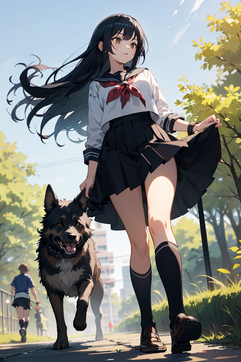 女子高生と犬