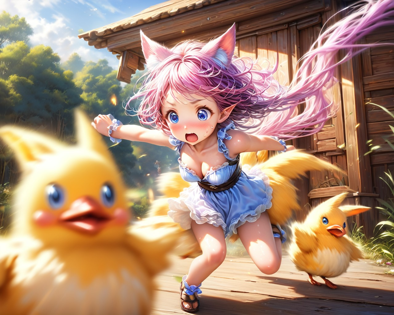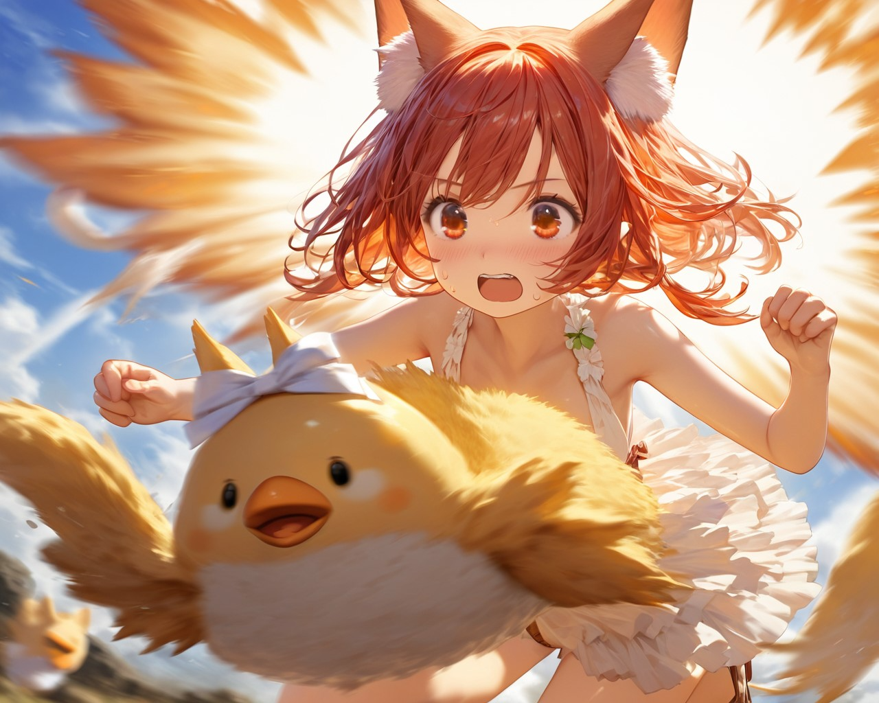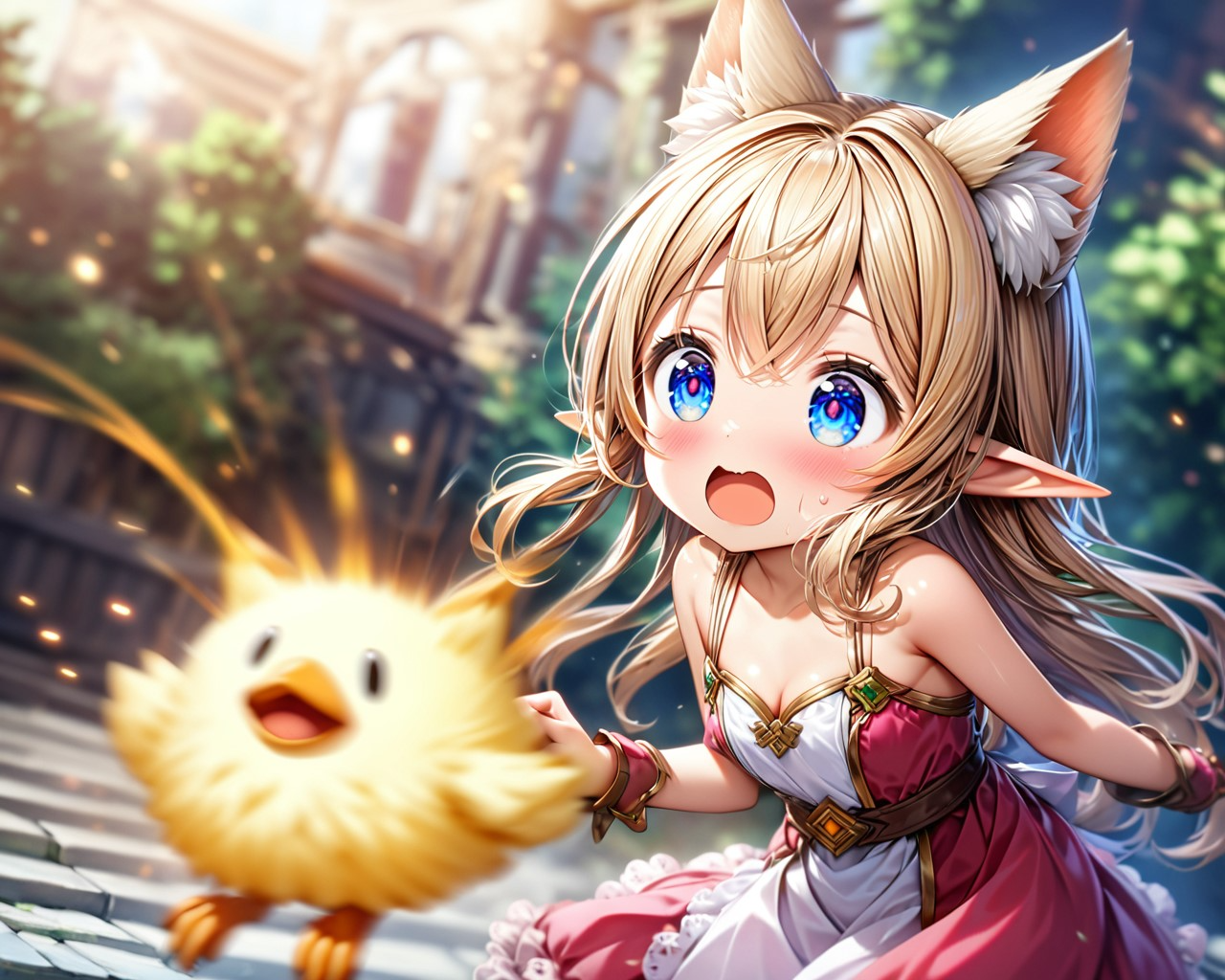 ヒヨコとケモ耳エルフさん(3枚)
