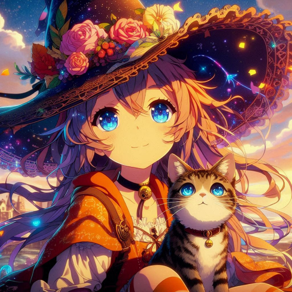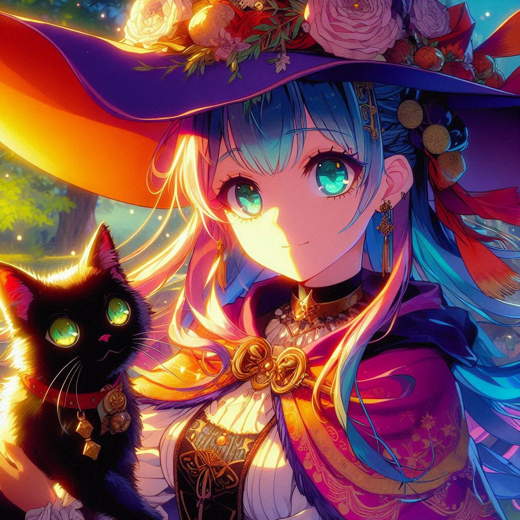 “Moments of Magic, AI Illustration of a Witch Apprentice and Her Cat”
