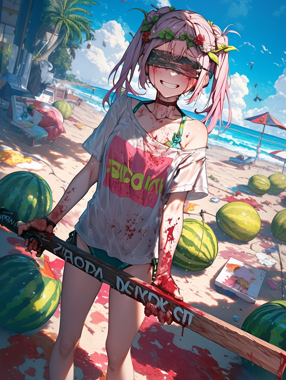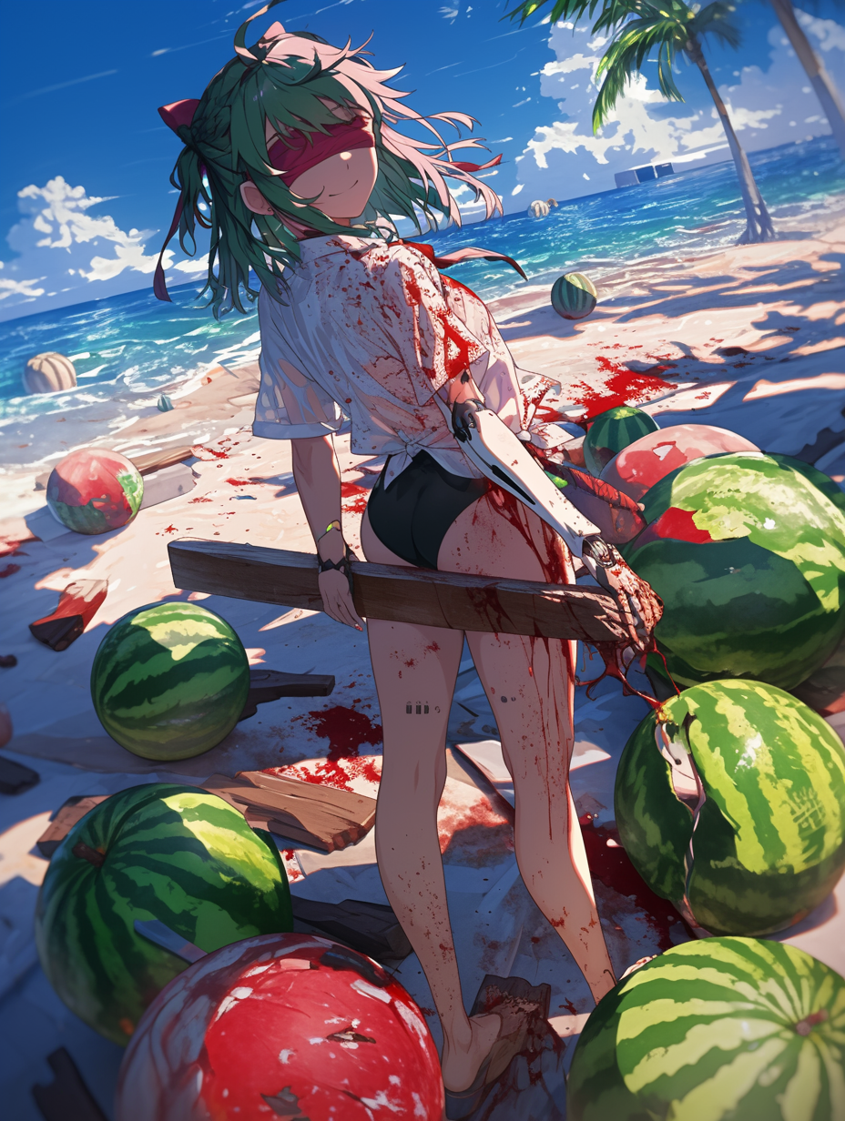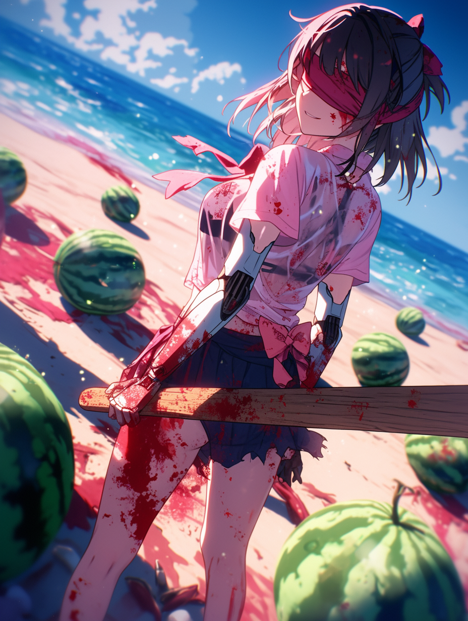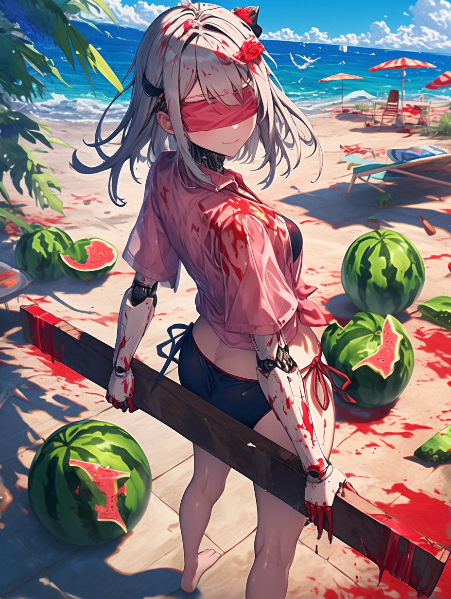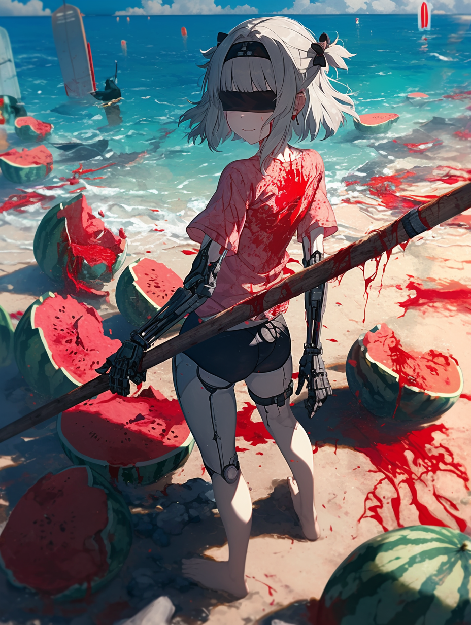 Cyborg girl on the beach and the tragedy of watermelons