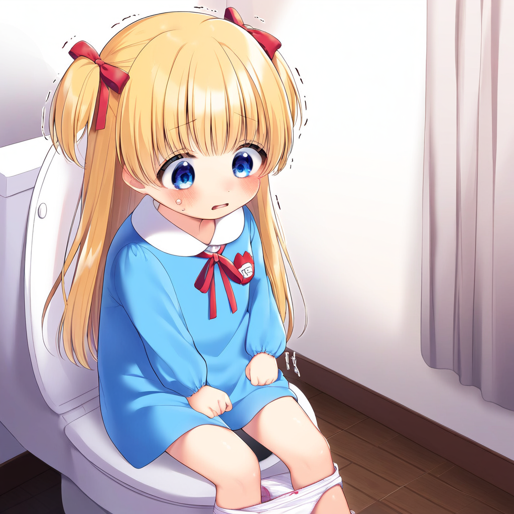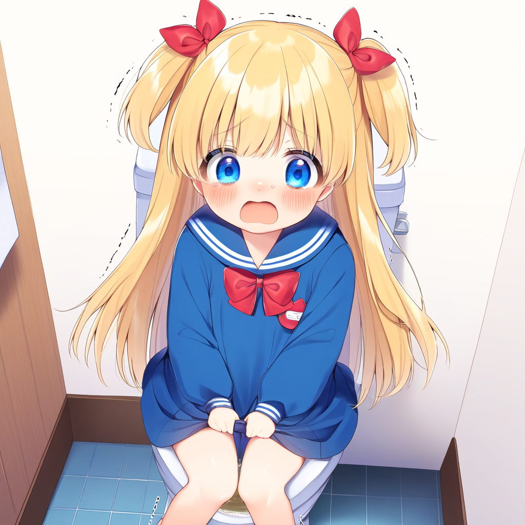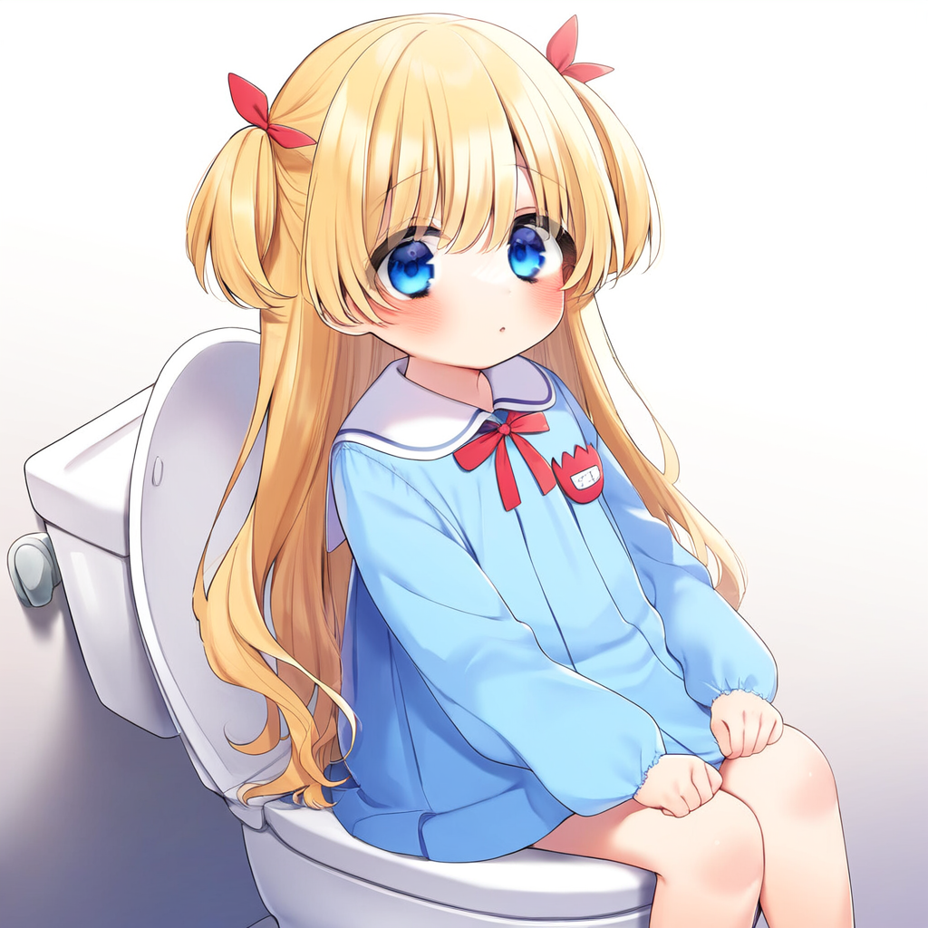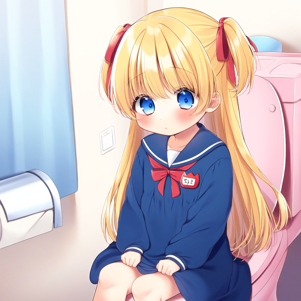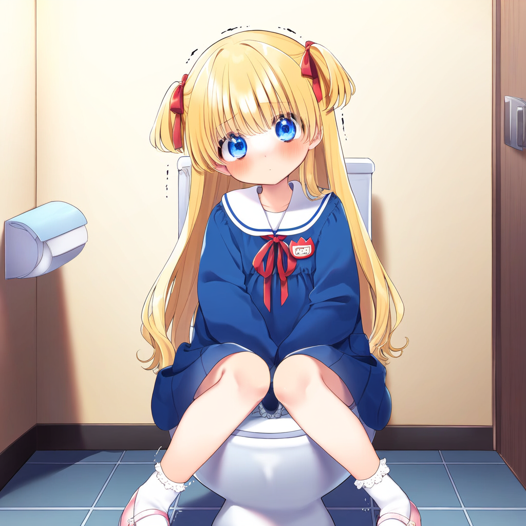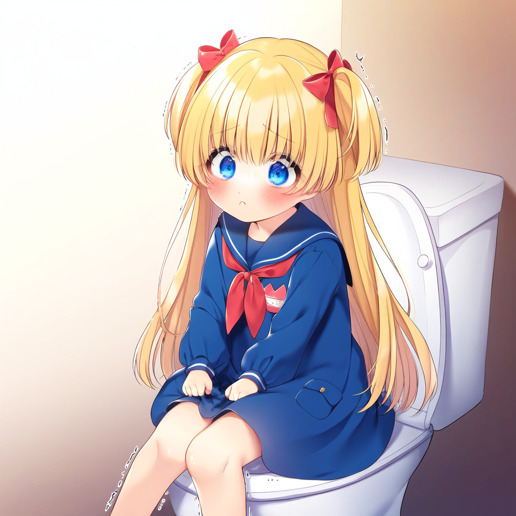 Blonde girl going to the toilet