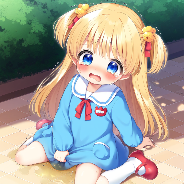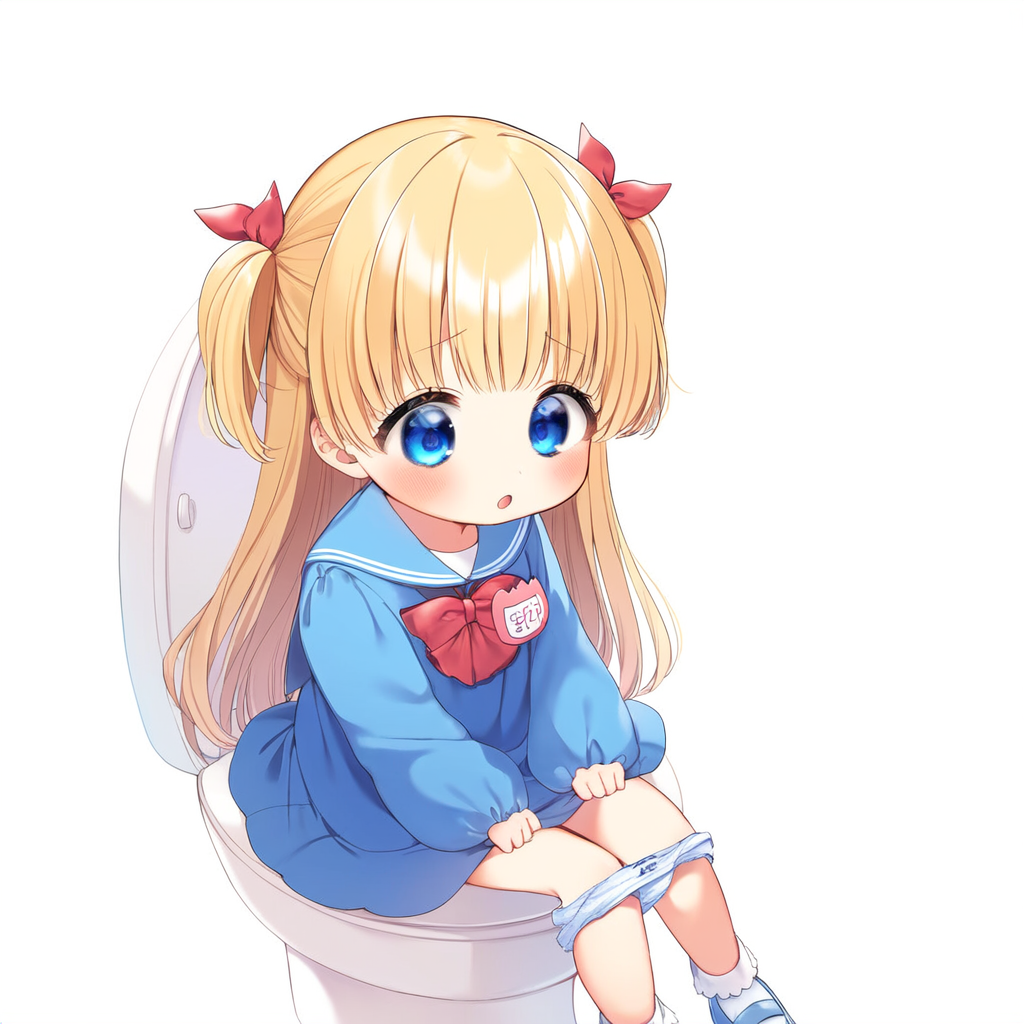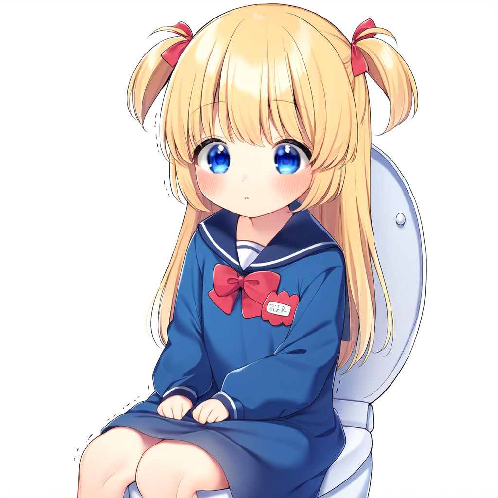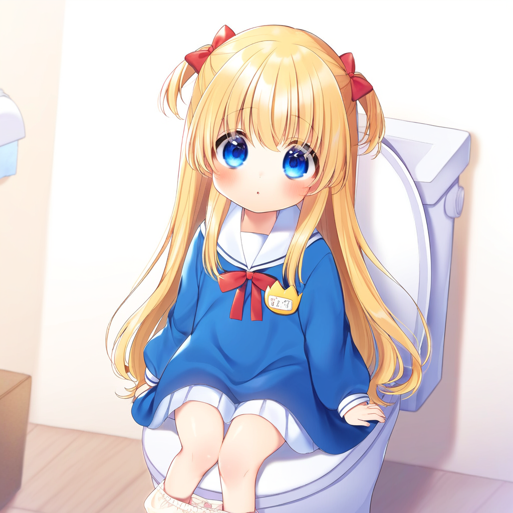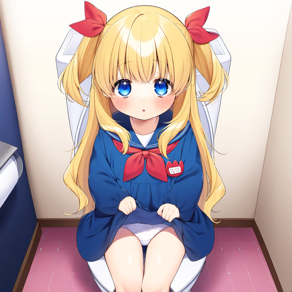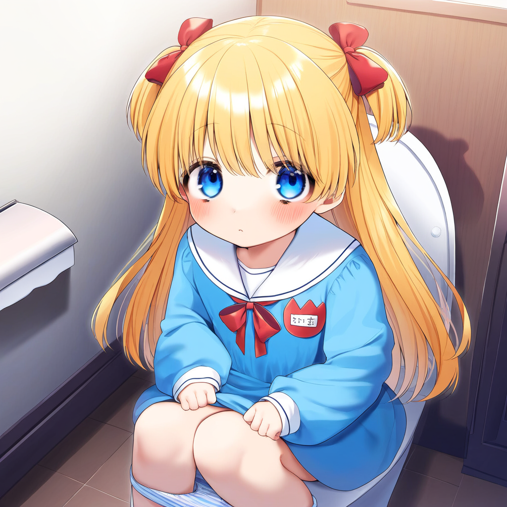 Blonde girl going to the toilet