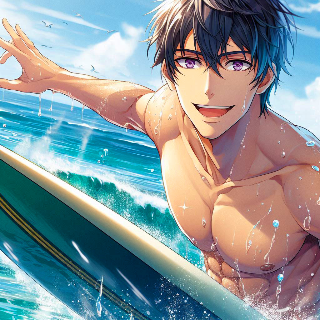 笑顔な、サーフィンをしている男性…!!その1(2枚)
