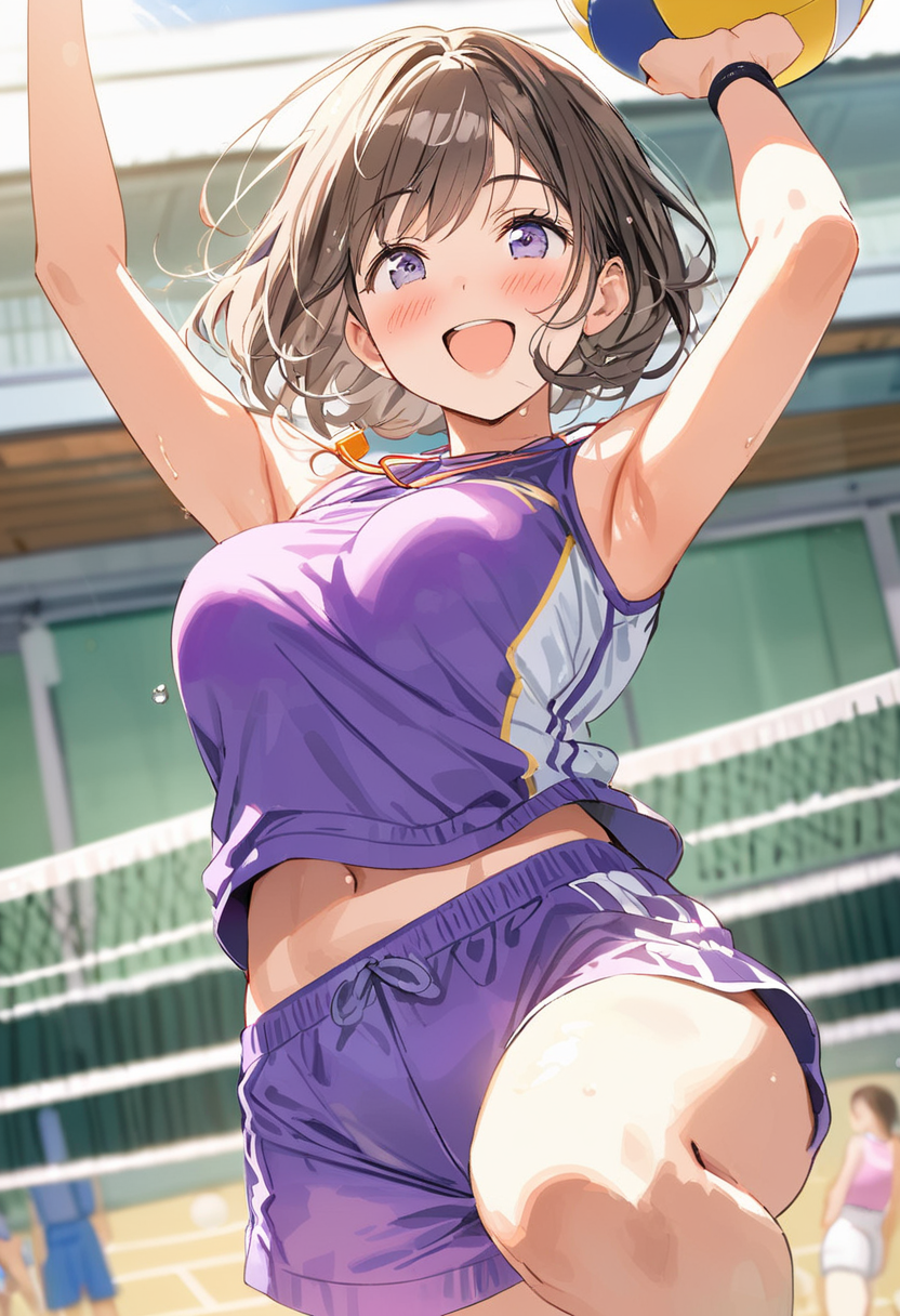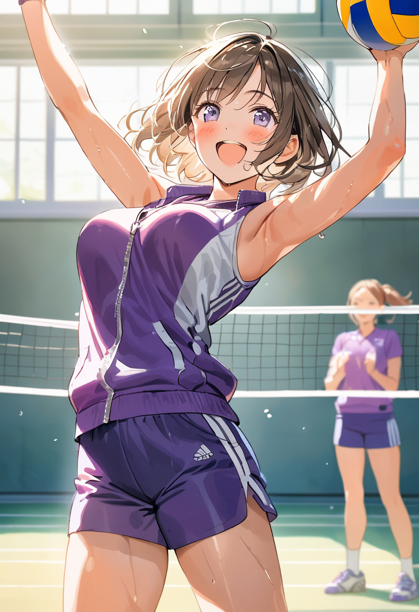 バレーで張り切る先生