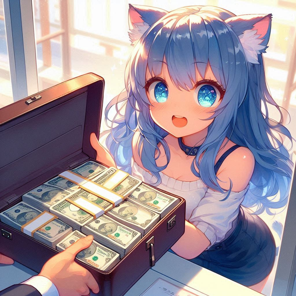 Big winner, blue-haired cat ears