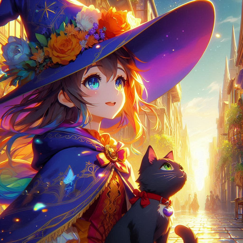 “Moments of Magic, AI Illustration of a Witch Apprentice and Her Cat”