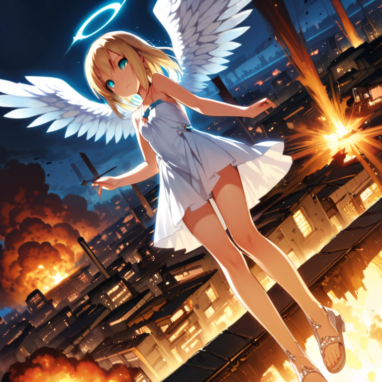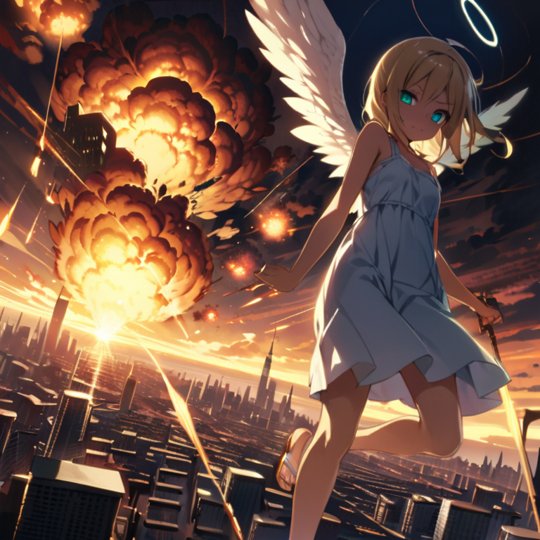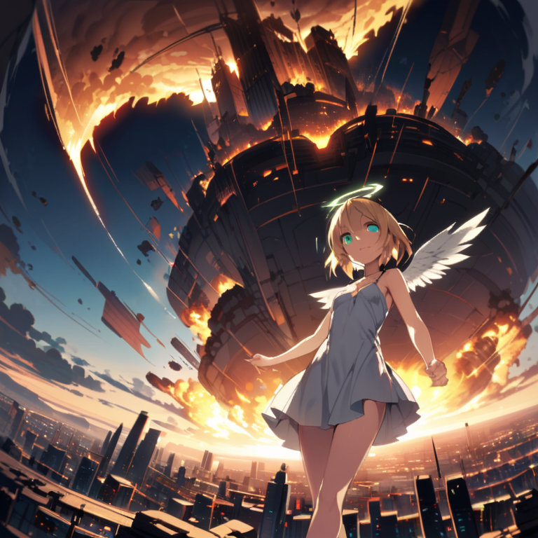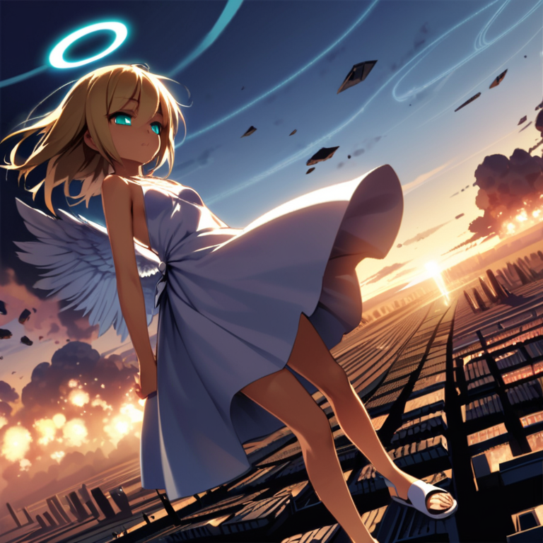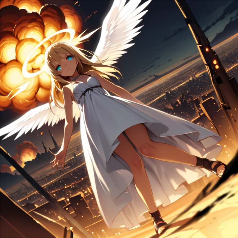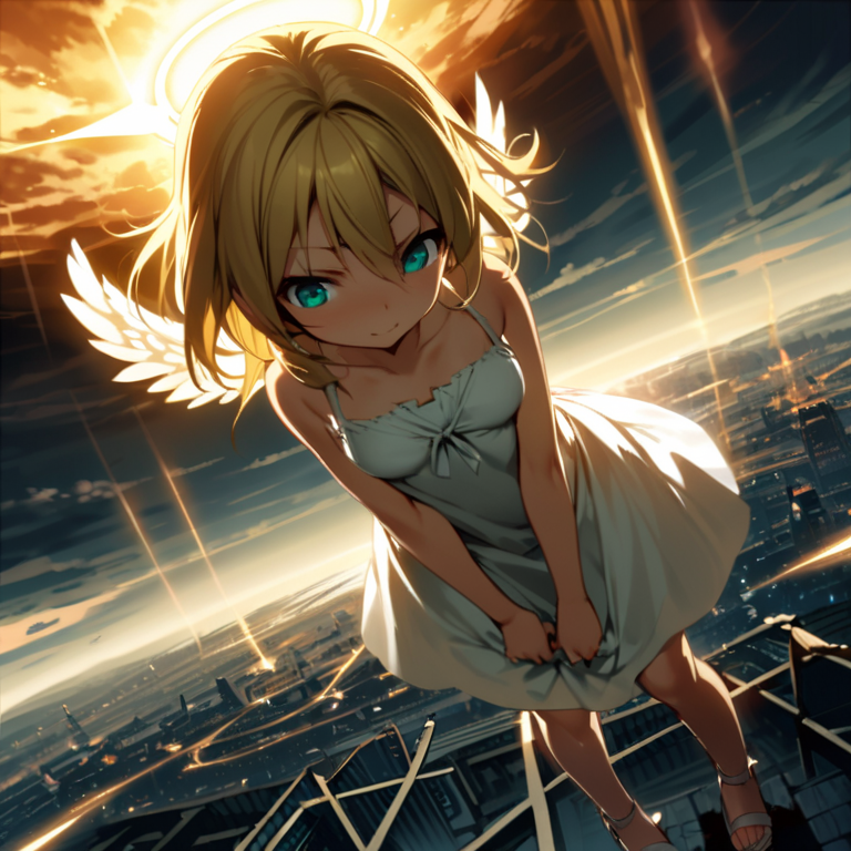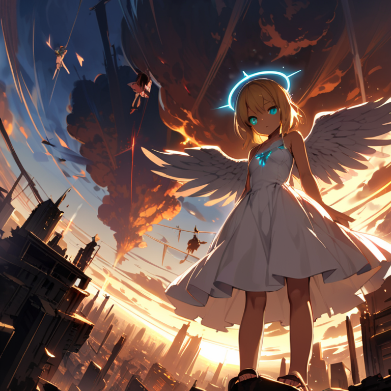 (masterpiece, best quality:1.3), illustration, (extream detailed), one girl, angel Descending