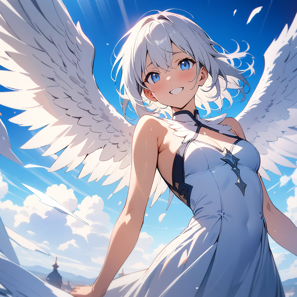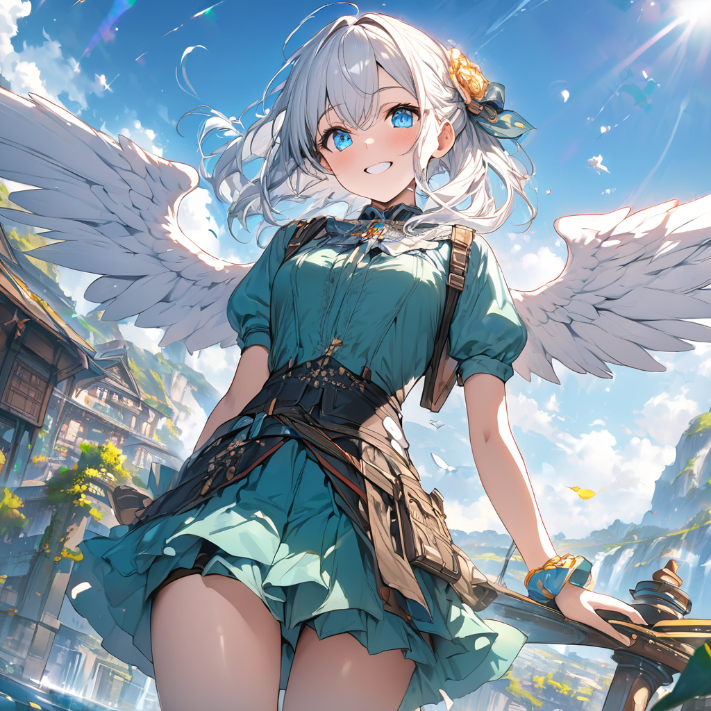 (masterpiece, best quality:1.3), illustration, (extream detailed), one girl, angel Descending