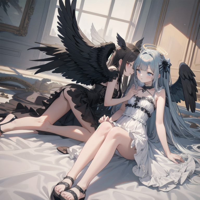 (masterpiece, best quality:1.3), illustration, (extream detailed), one girl, angel Descending