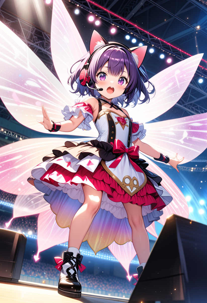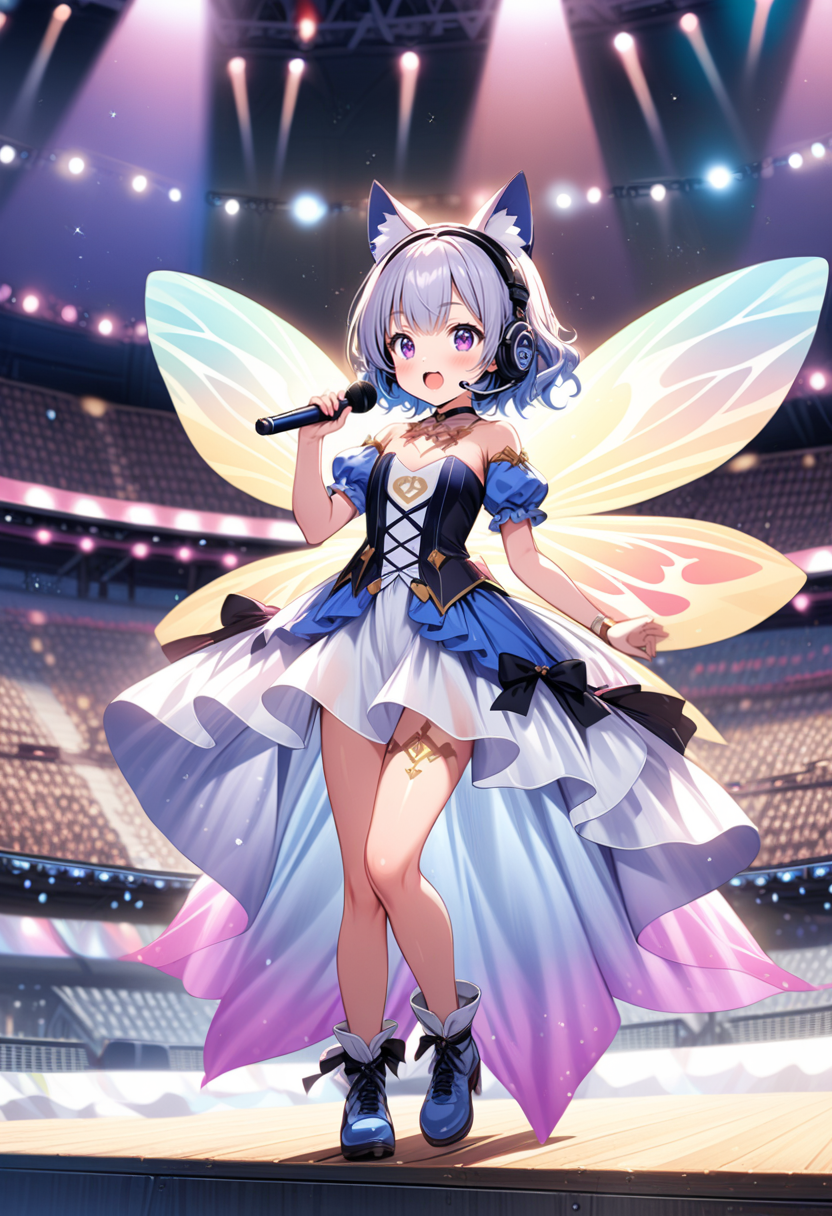 ステージ上で歌うネコミミ妖精のカリンちゃんです。