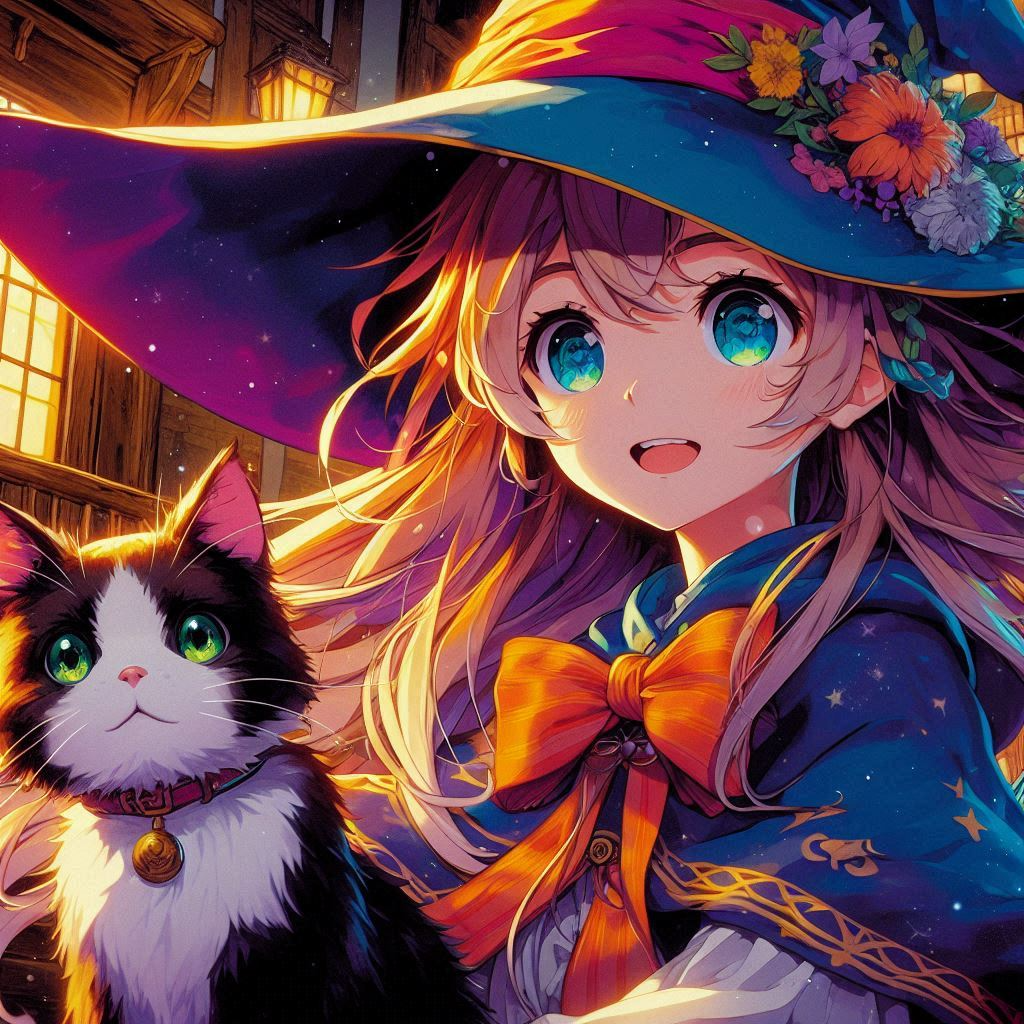 “Moments of Magic, AI Illustration of a Witch Apprentice and Her Cat”