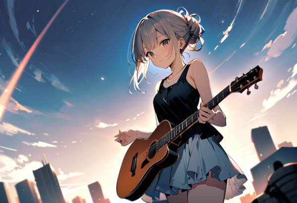 Sunrise and guitar girl