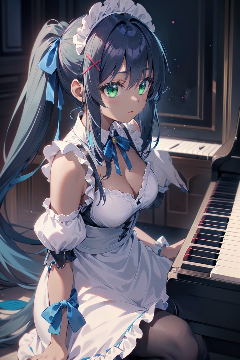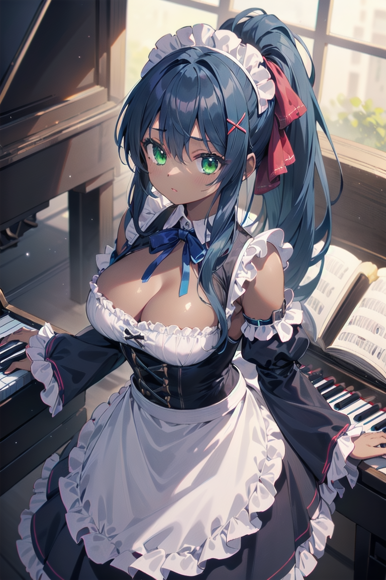 ピアノを弾く青ポニテメイドちゃん