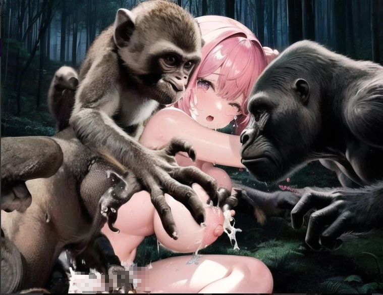 さっそく子猿たちの洗礼を浴び、群れの性欲の捌け口にされていく。