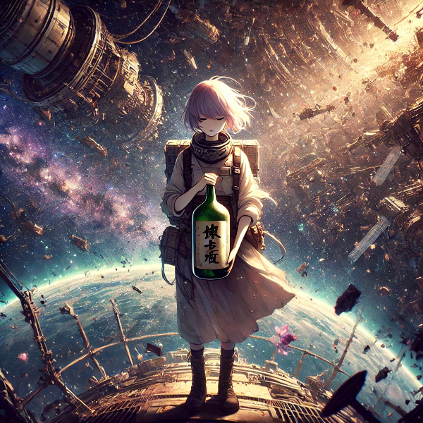 DALL-E3先生の考える一升瓶を抱えて旅に出るイメージでした!