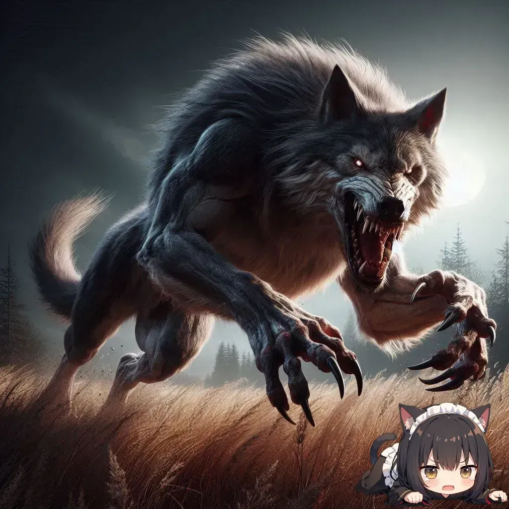 あんにゃでっかい狼相手に振り向くにゃんて怖くて腰が抜けちゃうニャ~(TOT)