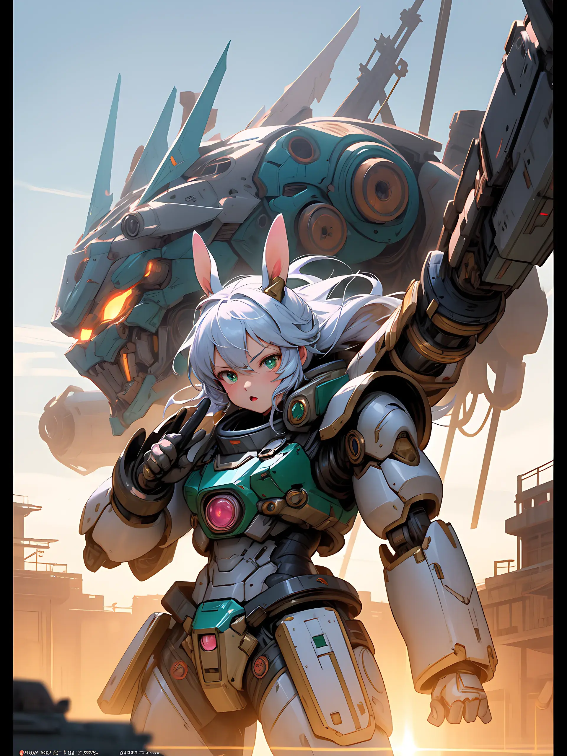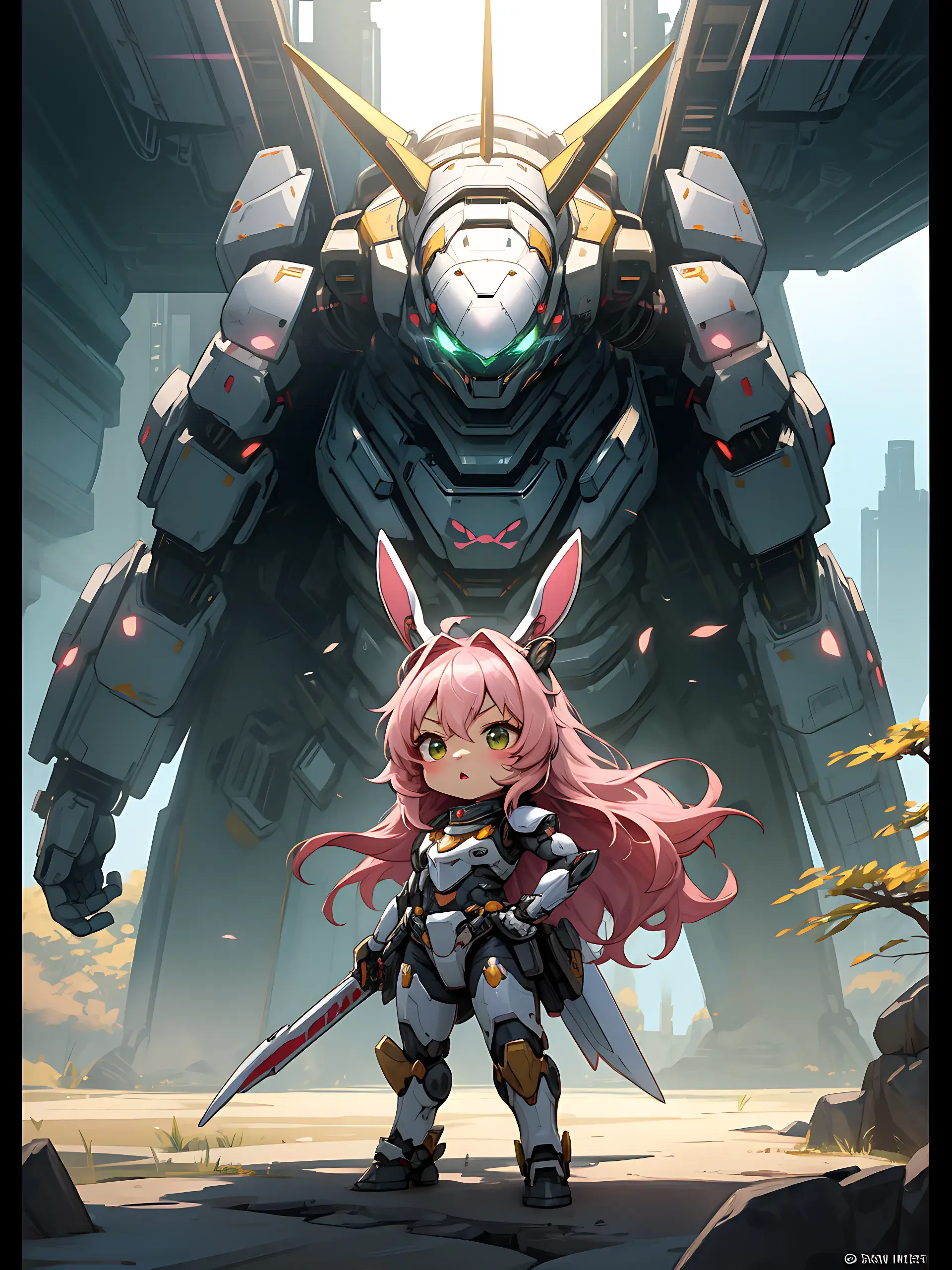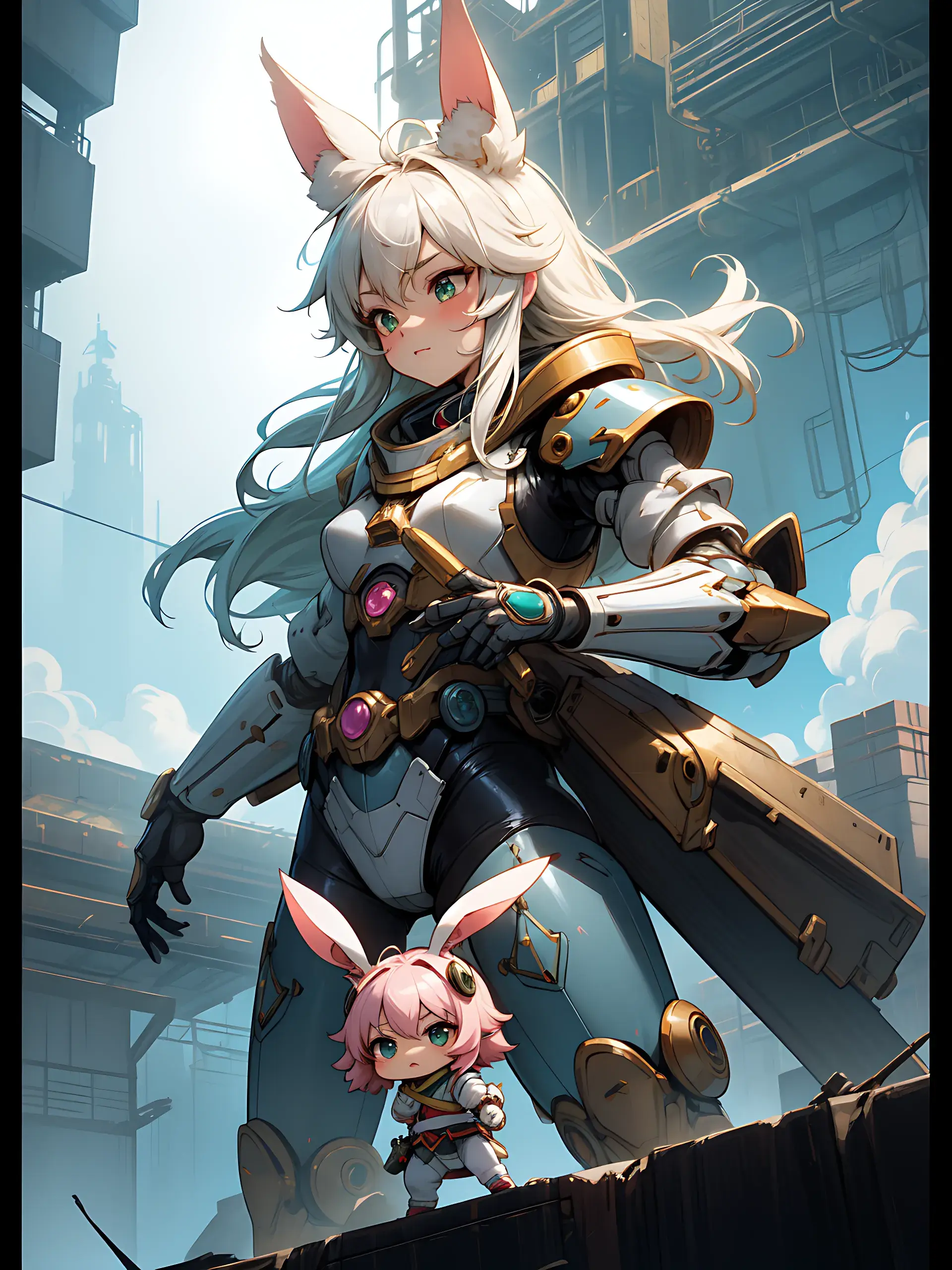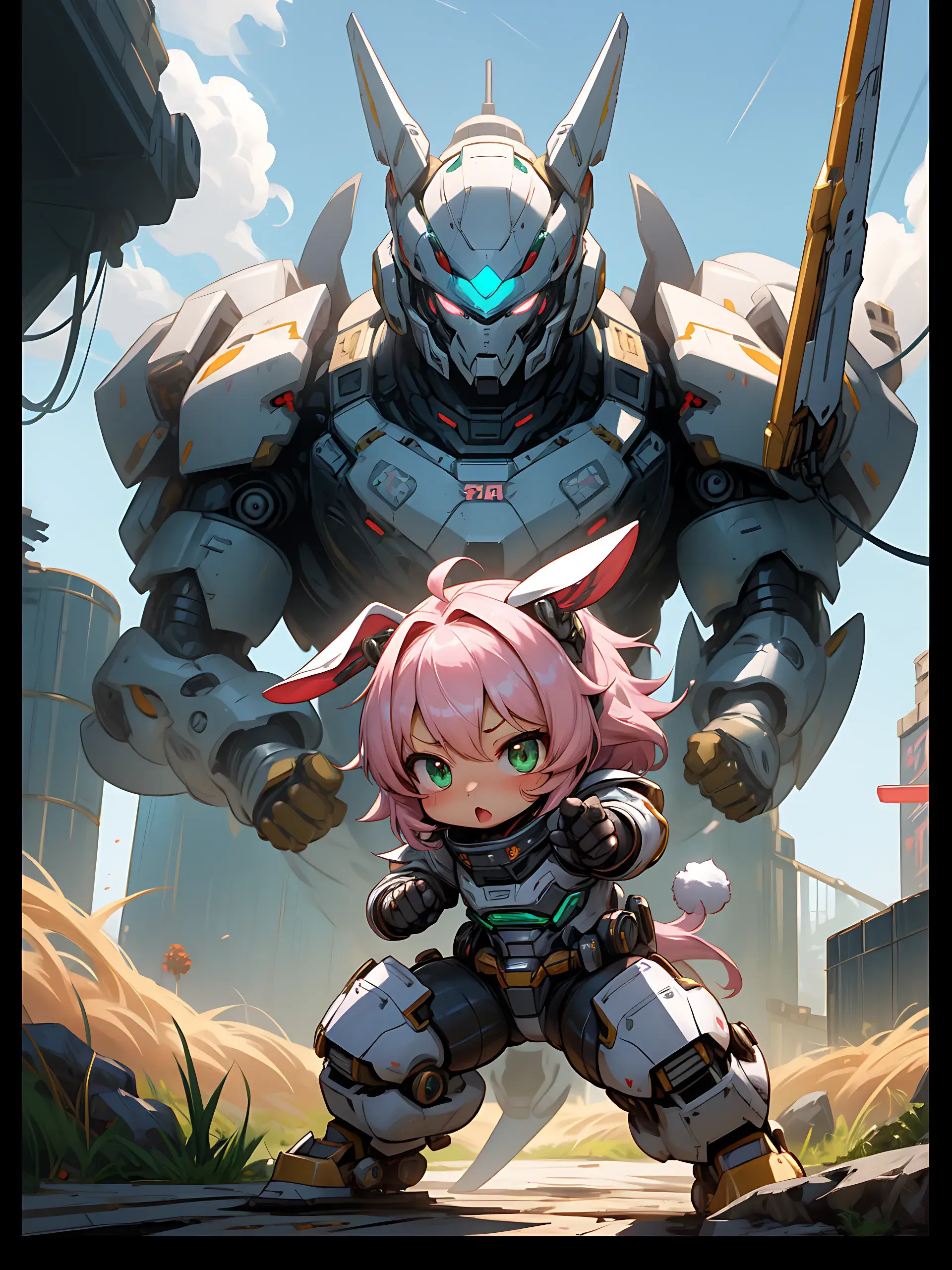ウサ耳ちびキャラと巨大ロボ