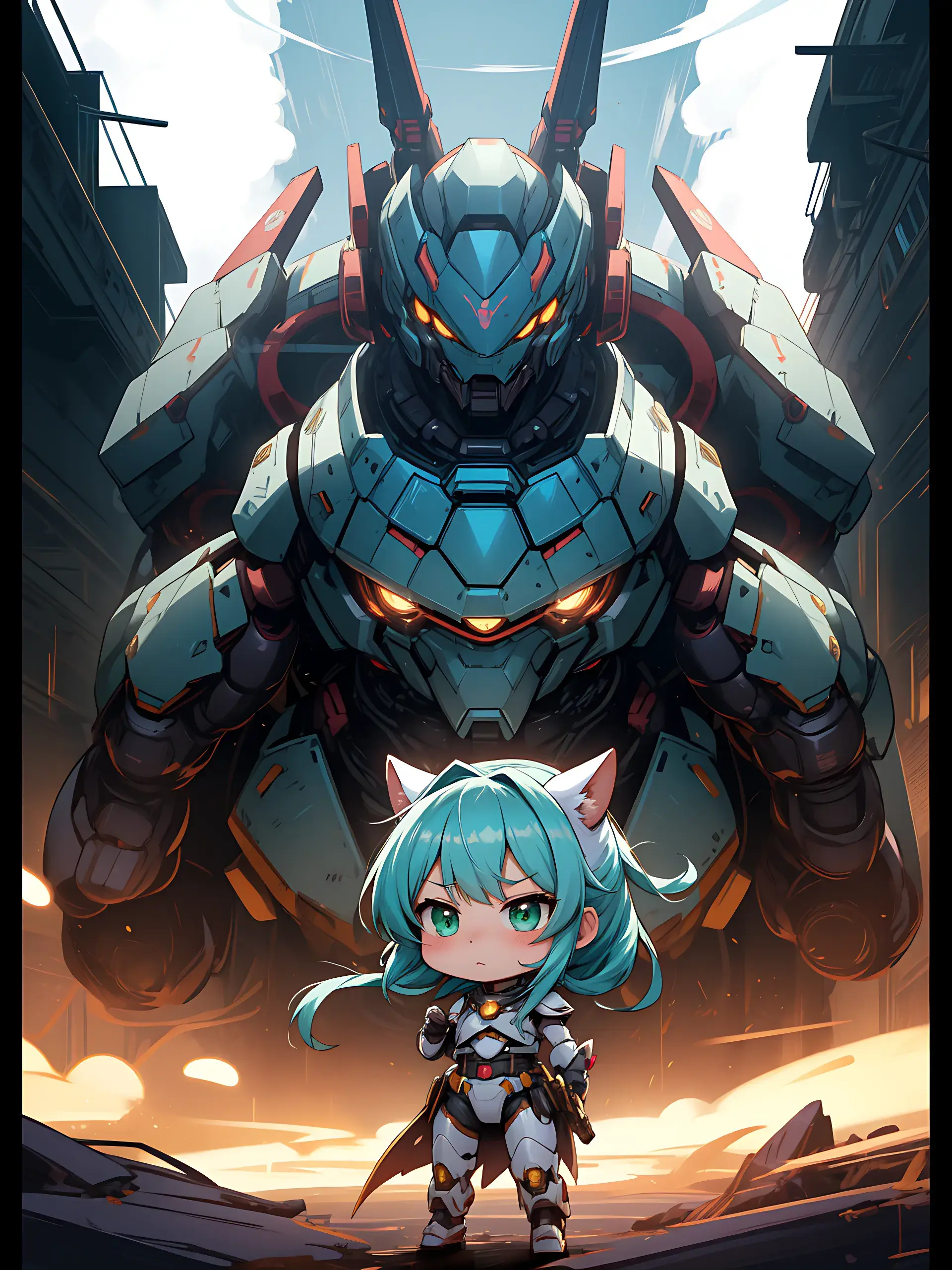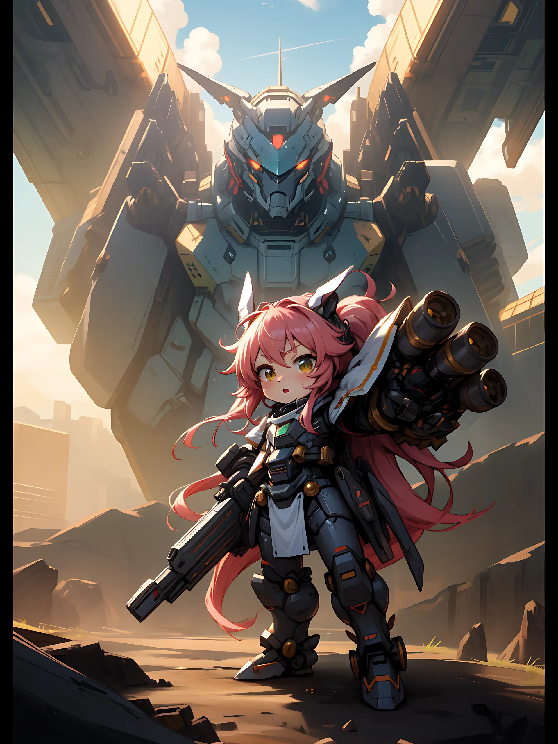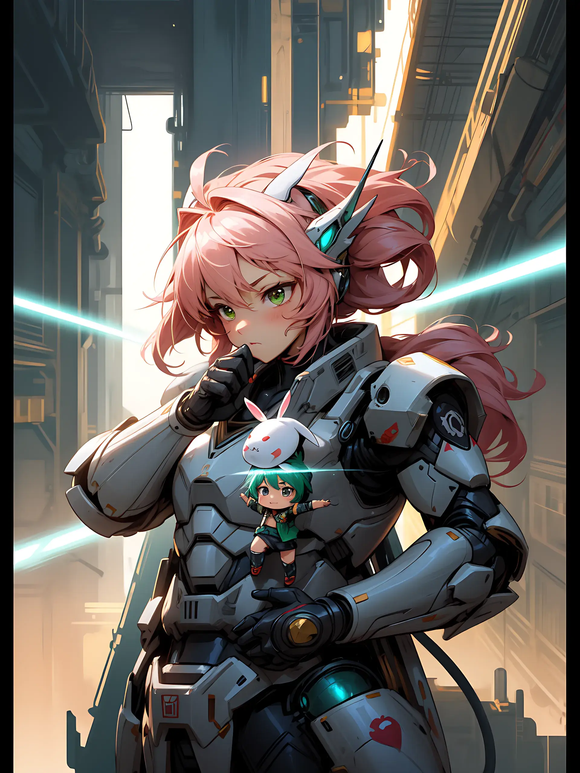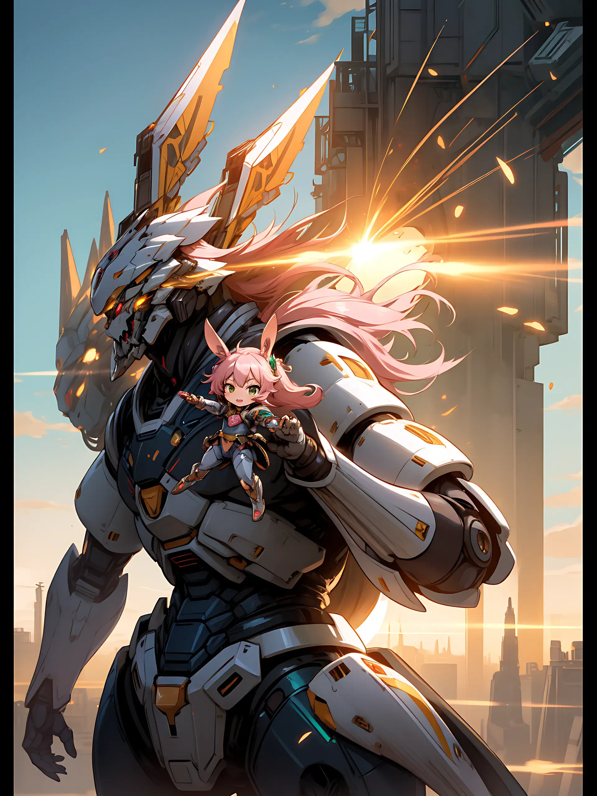 ウサ耳ちびキャラと巨大ロボ