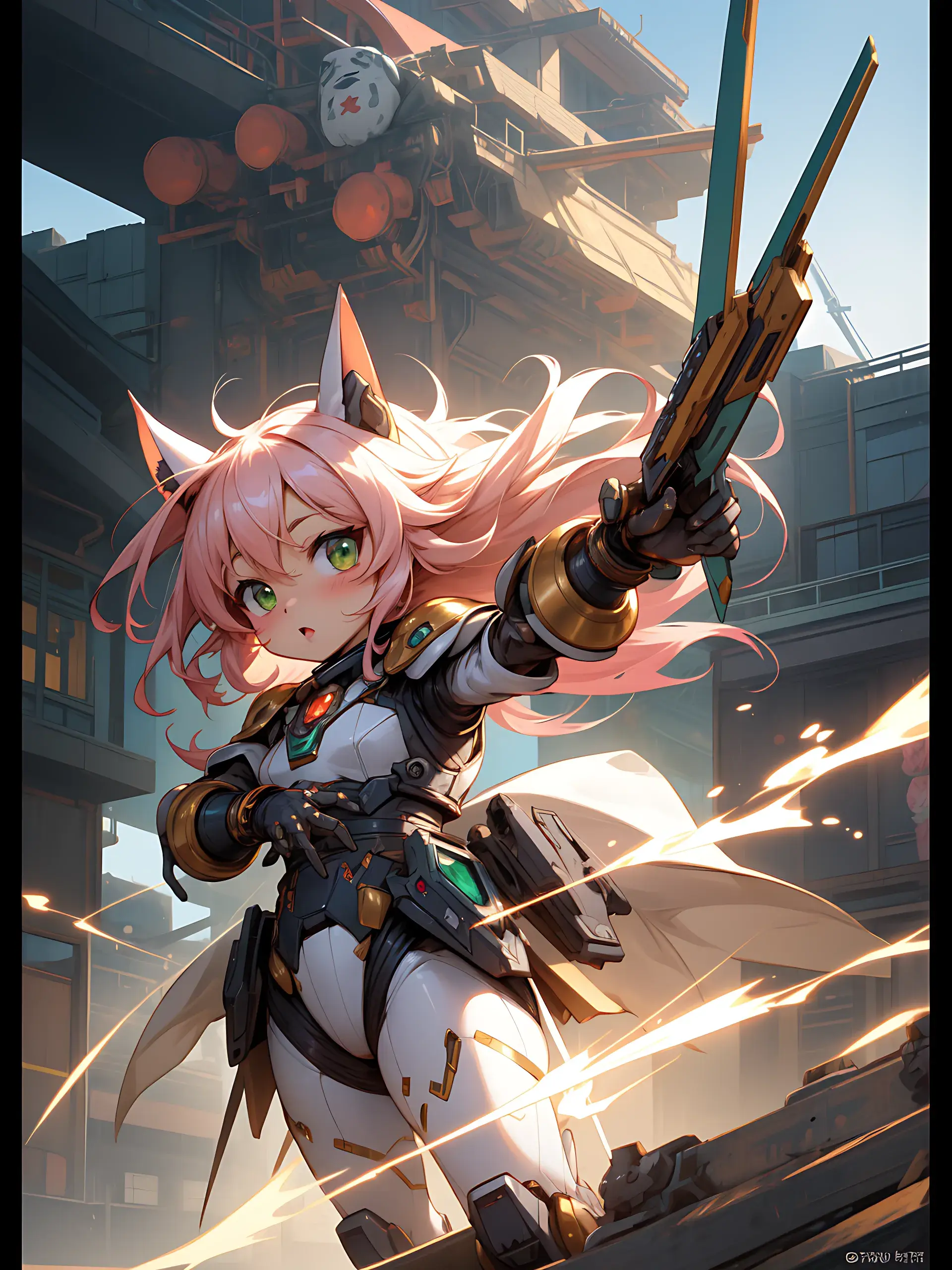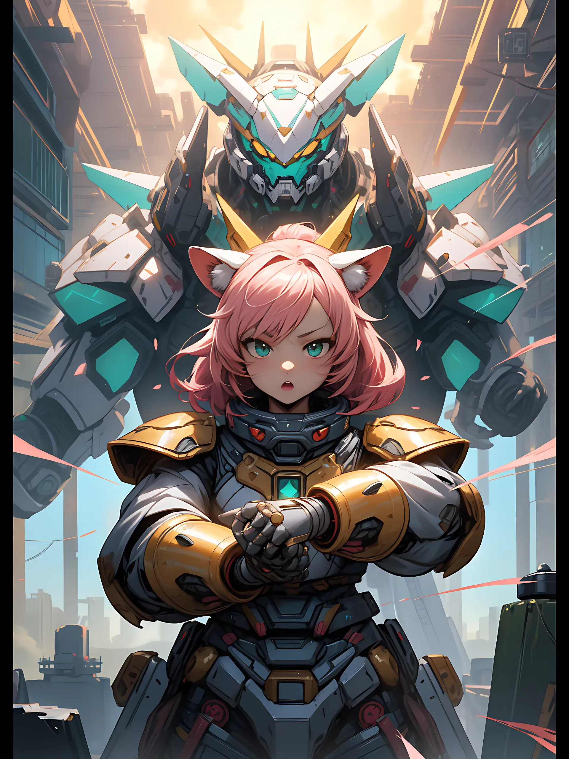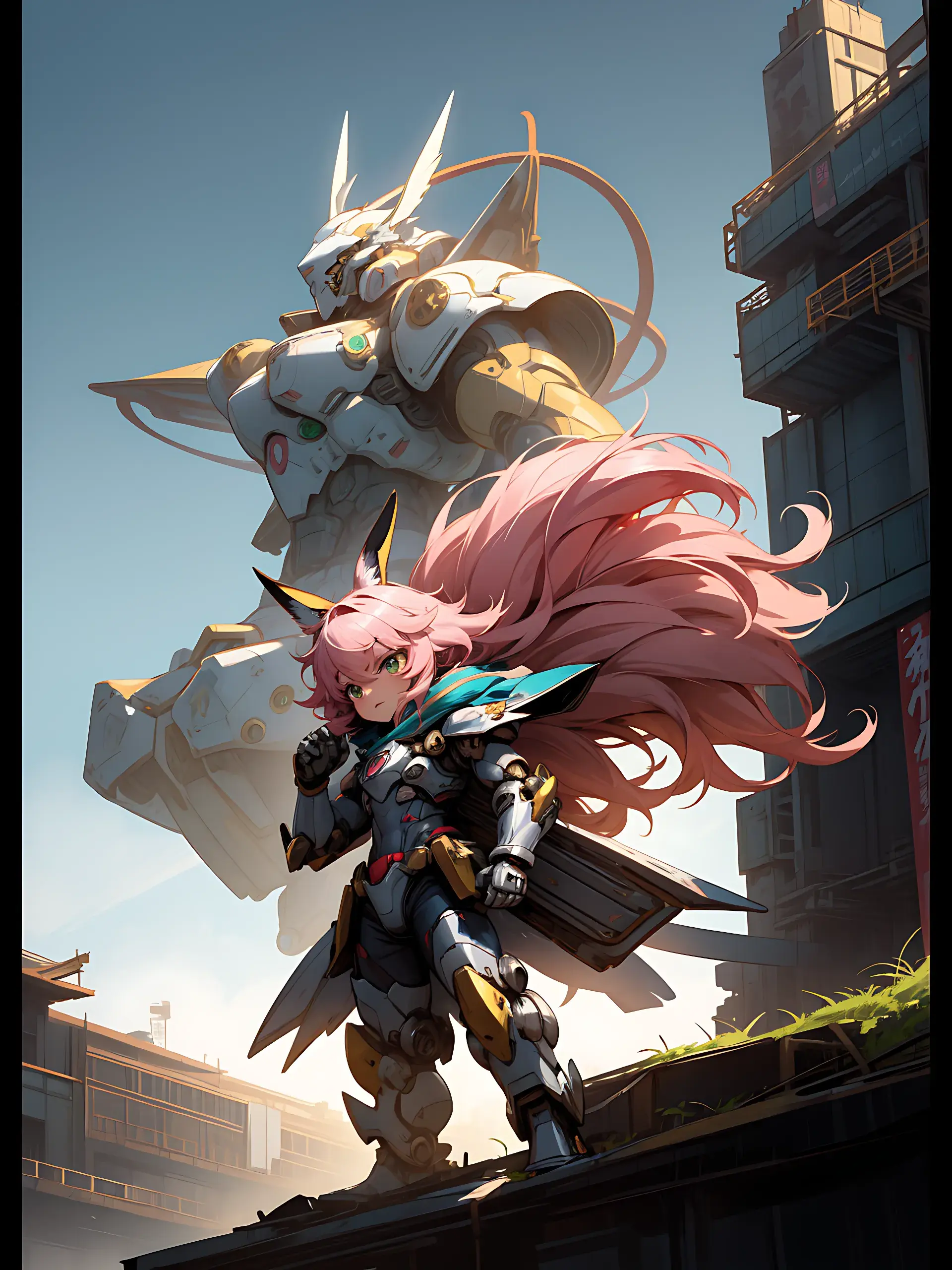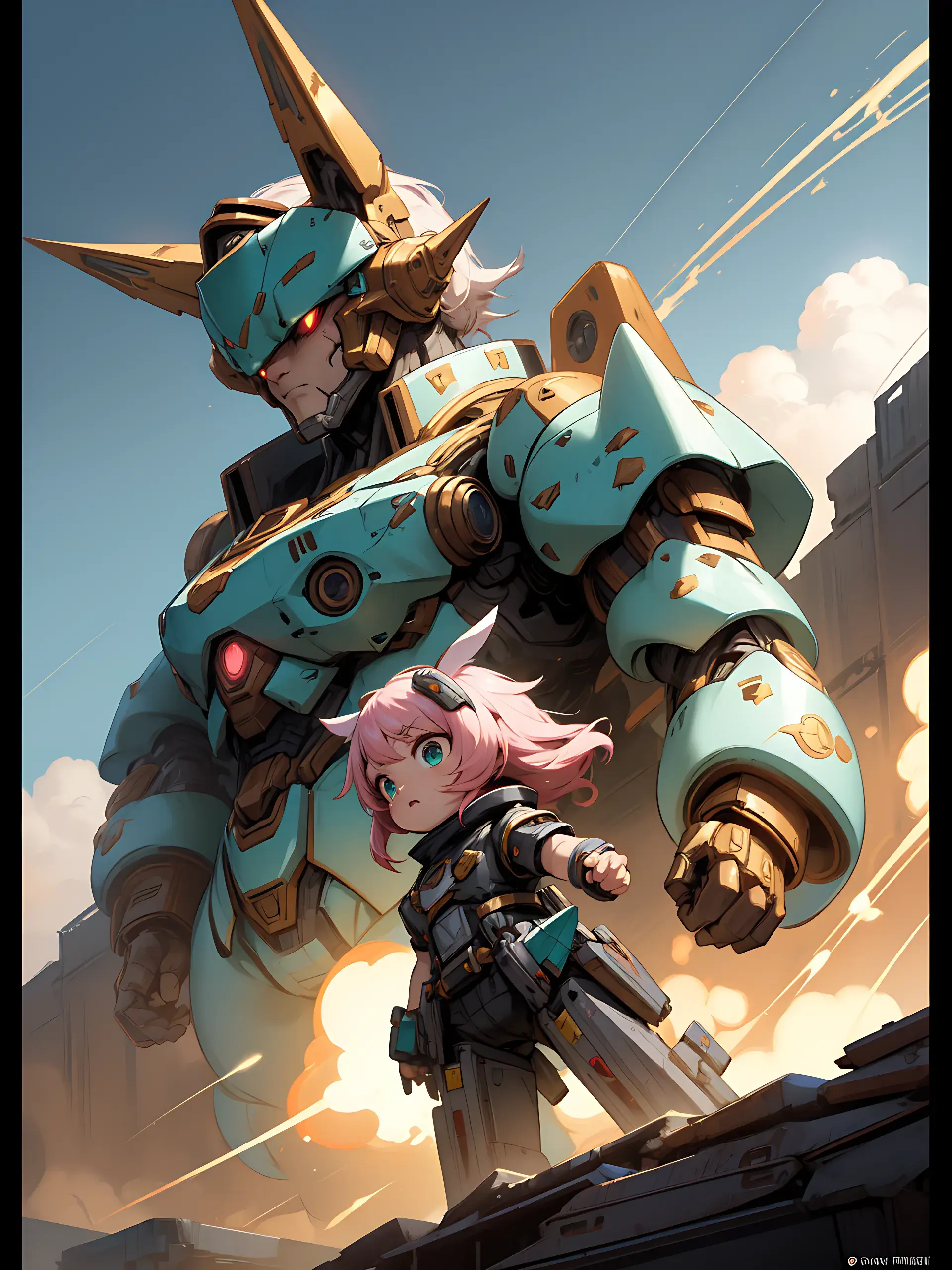 ウサ耳ちびキャラと巨大ロボ