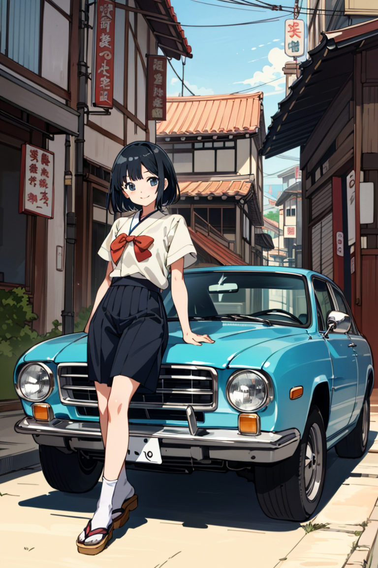 レトロカーと少女