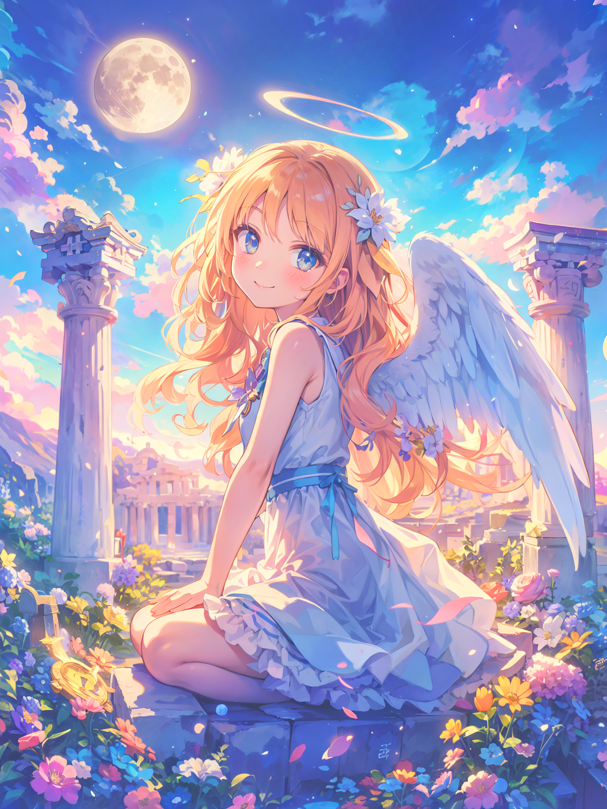 (masterpiece, best quality:1.3), illustration, (extream detailed), one girl, angel Descending