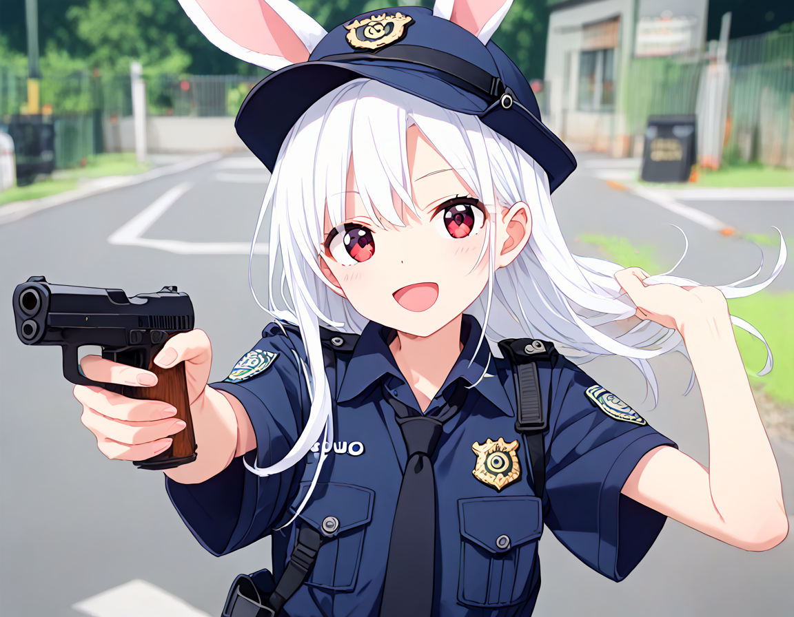 White rabbit who is a police officer for a day!