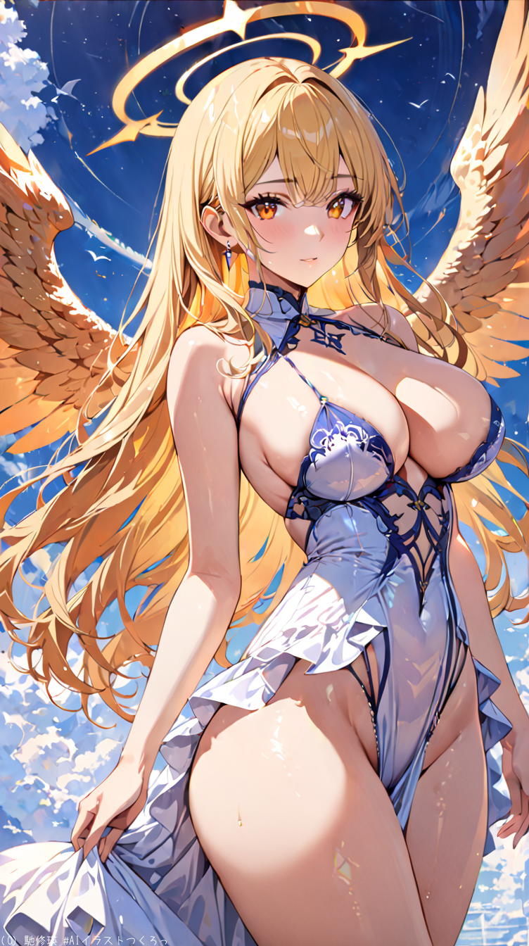 (masterpiece, best quality:1.3), illustration, (extream detailed), one girl, angel Descending