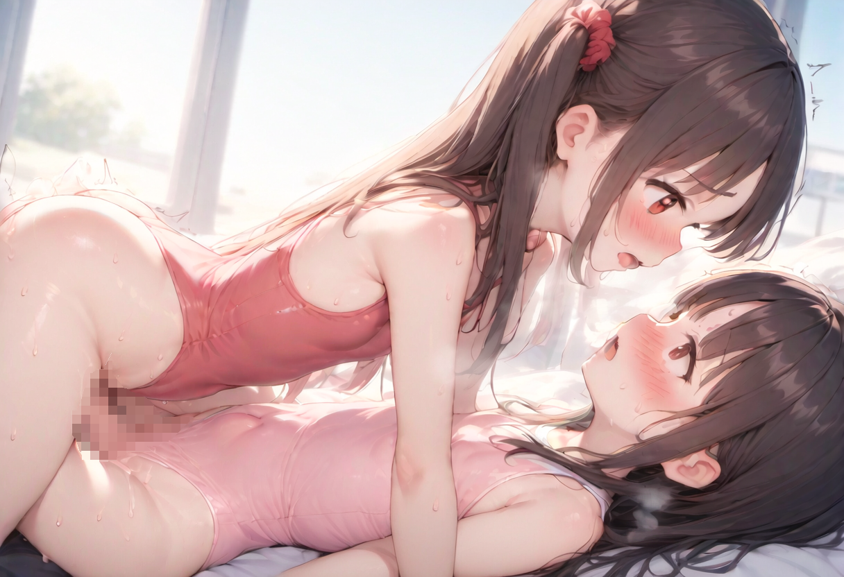 prompt: {nsfw},{{{2 girls,yuri}}},{black hair,red eyes,pink leotard},{{{{{one is futanari-girl and the other is vaginal other\'s penis}}}}},{{{{{clothed sex,girl on top,missionary,face to face,eye contact}}}}},{{{sweat,heavy breathing,trembling}}},{{{{{pussy line,pussy juice stain,pussy focus, cameltoe}}}}},shiny skin,tareme,ai-generated,{{{amazing quality, very aesthetic}}},dot nose,{{{{{flat chest,loli}}}}},detailed face,eyeliner,bedroom,embarrassed