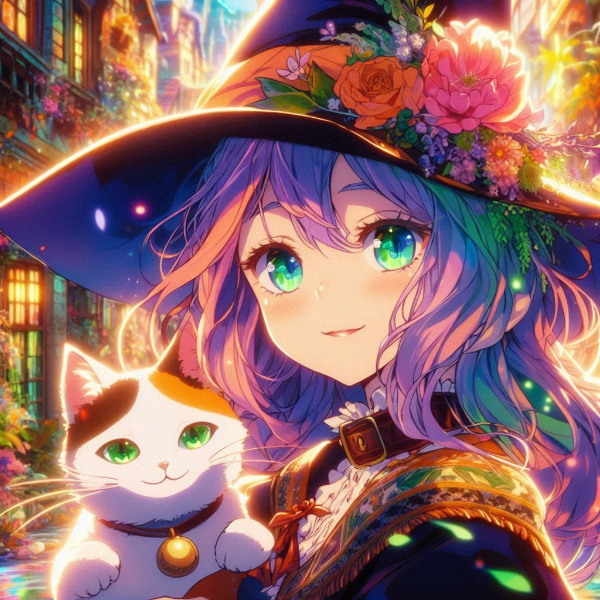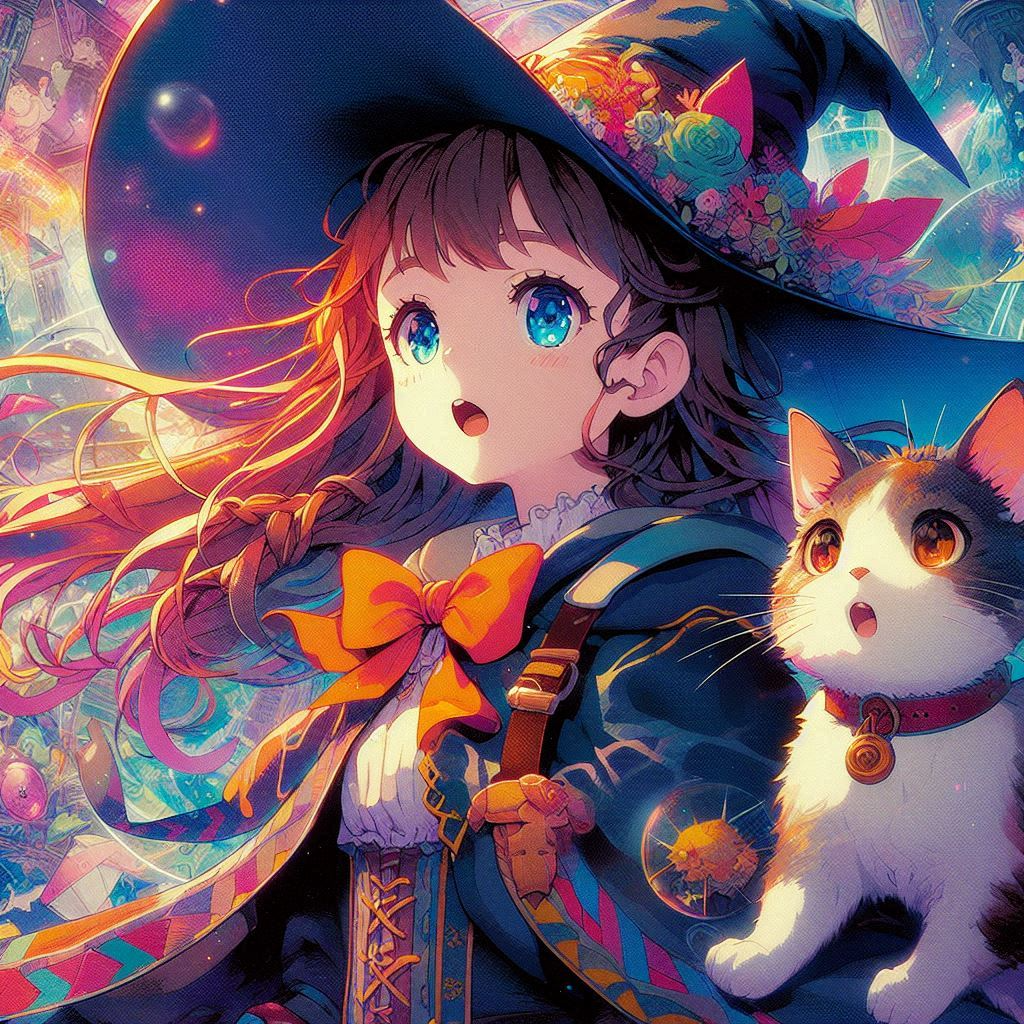 “Moments of Magic, AI Illustration of a Witch Apprentice and Her Cat”
