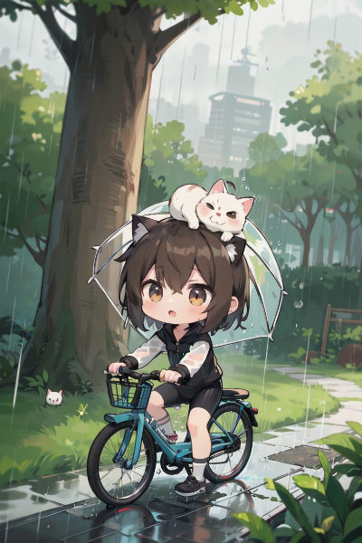 雨中の涙と青ポニテメイドちゃん