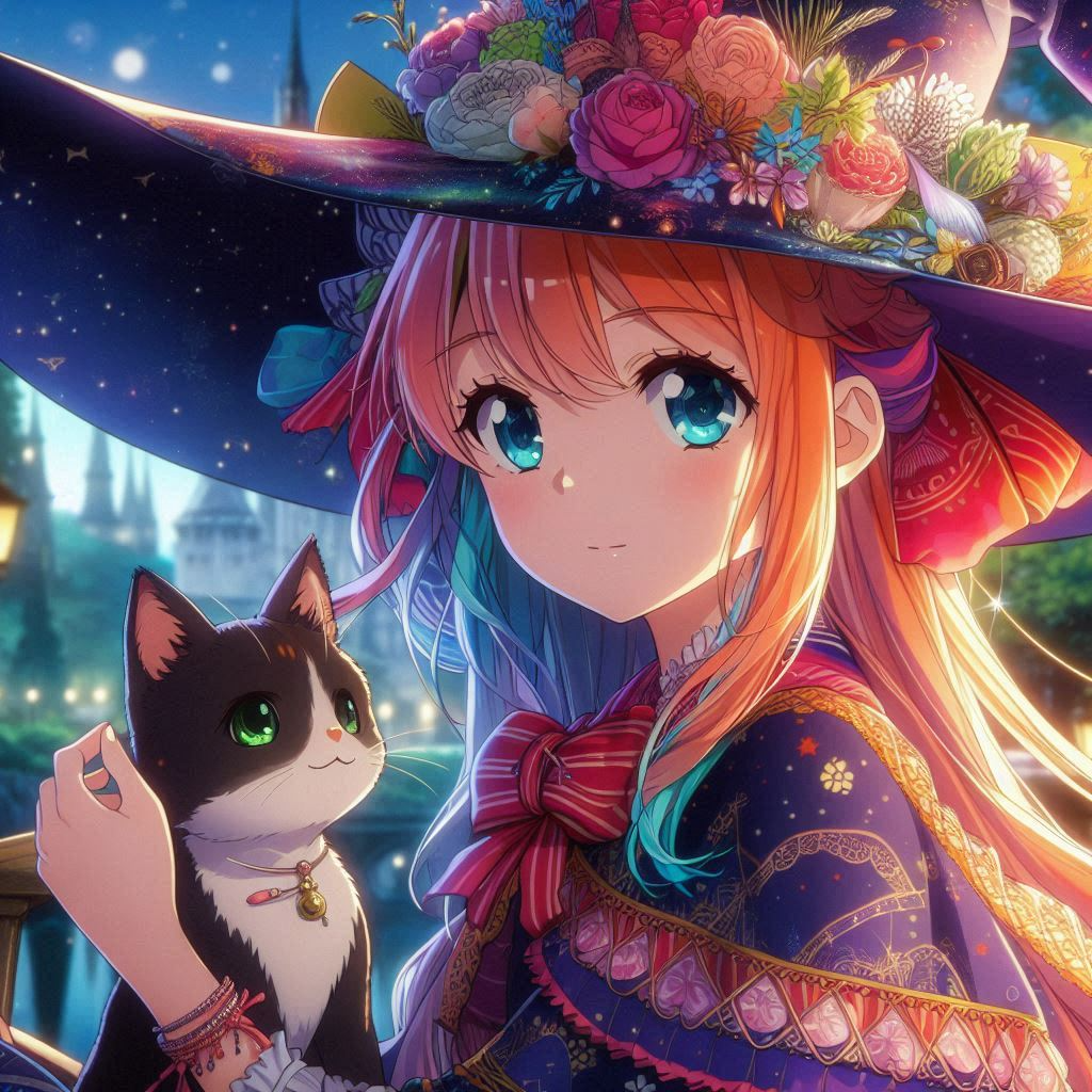 “Moments of Magic, AI Illustration of a Witch Apprentice and Her Cat”