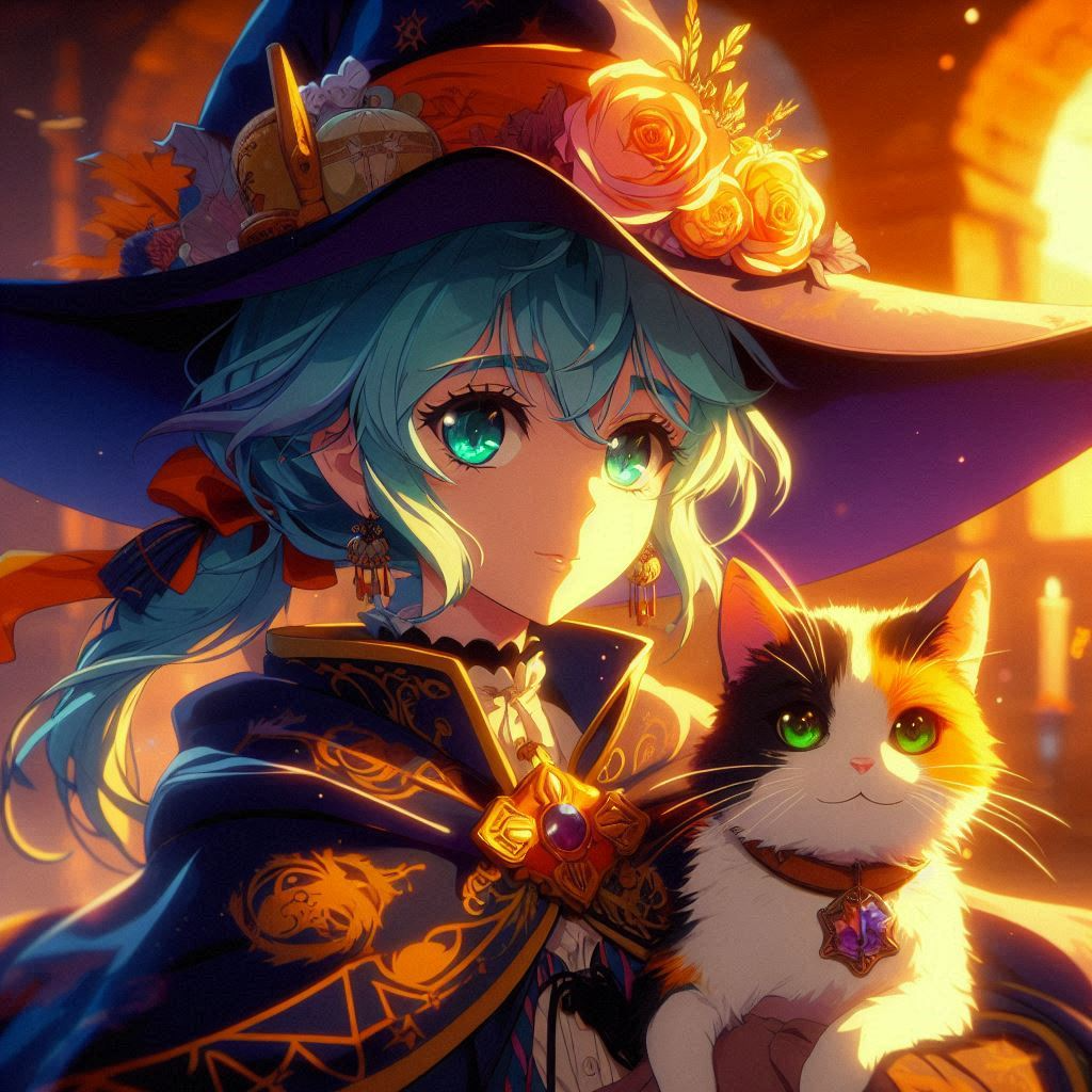 “Moments of Magic, AI Illustration of a Witch Apprentice and Her Cat”