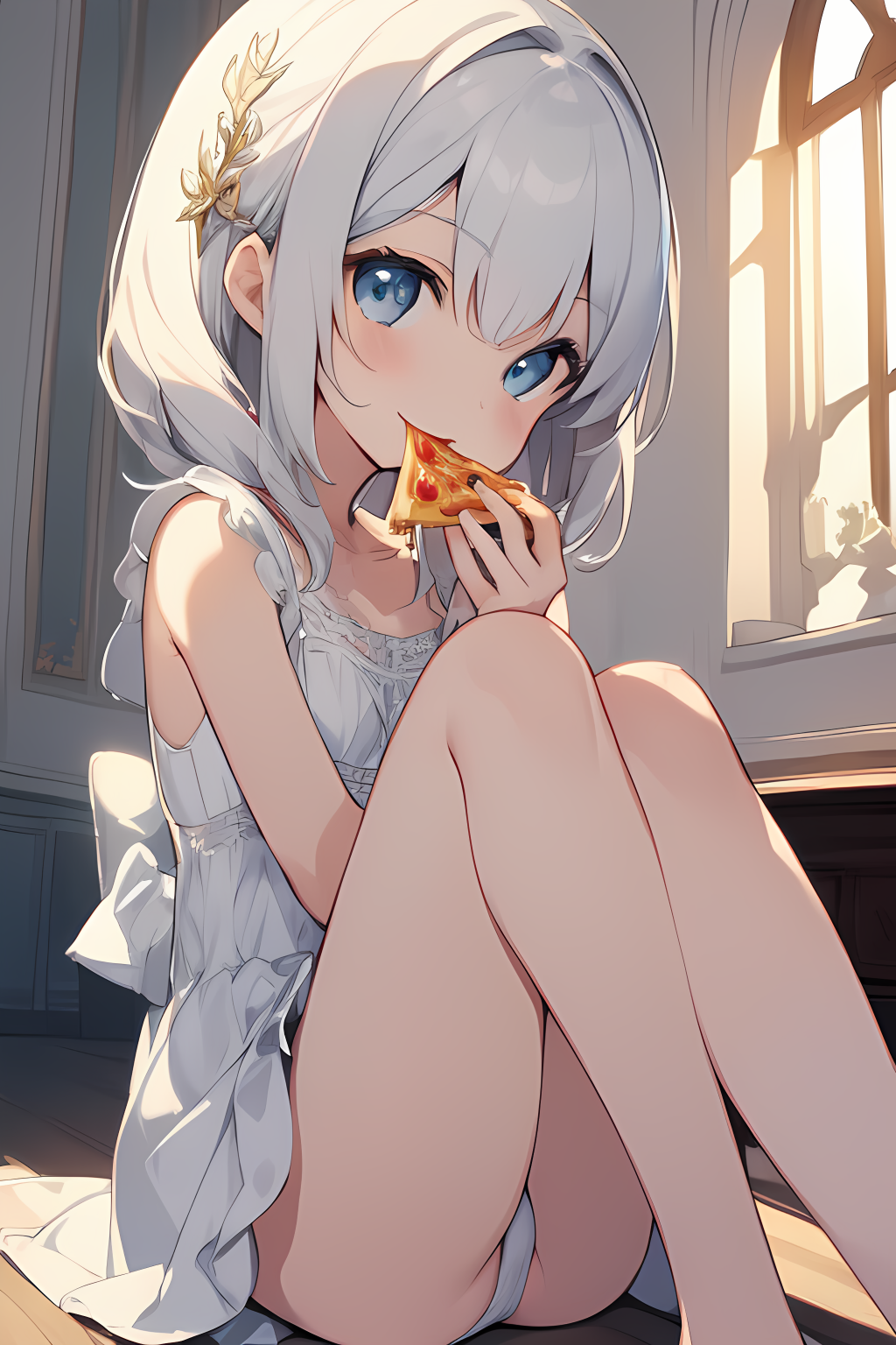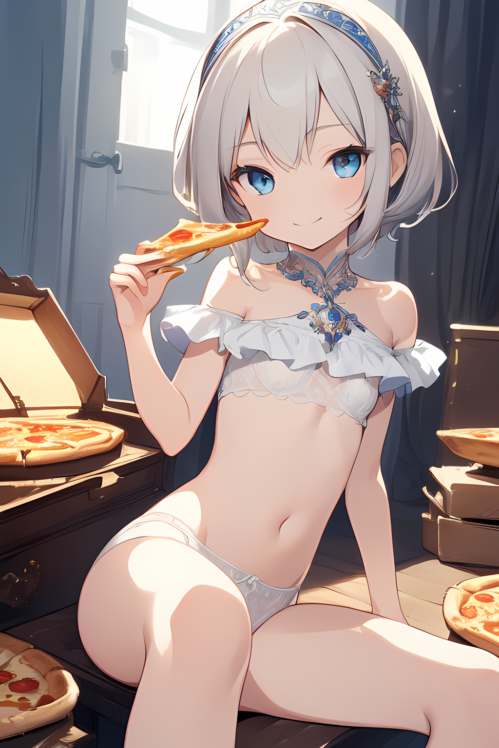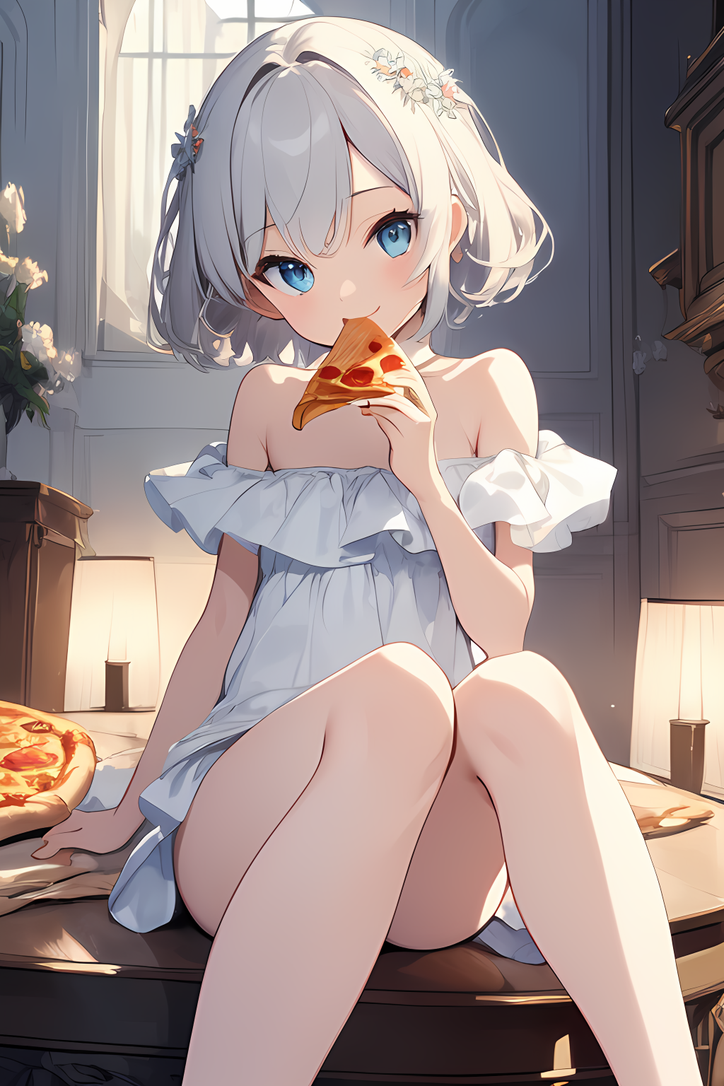 pure white girl and pizza