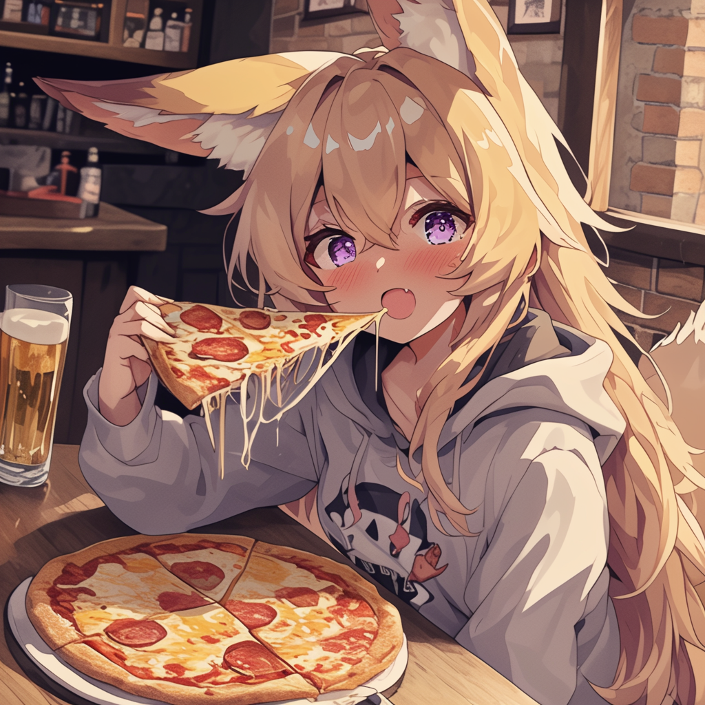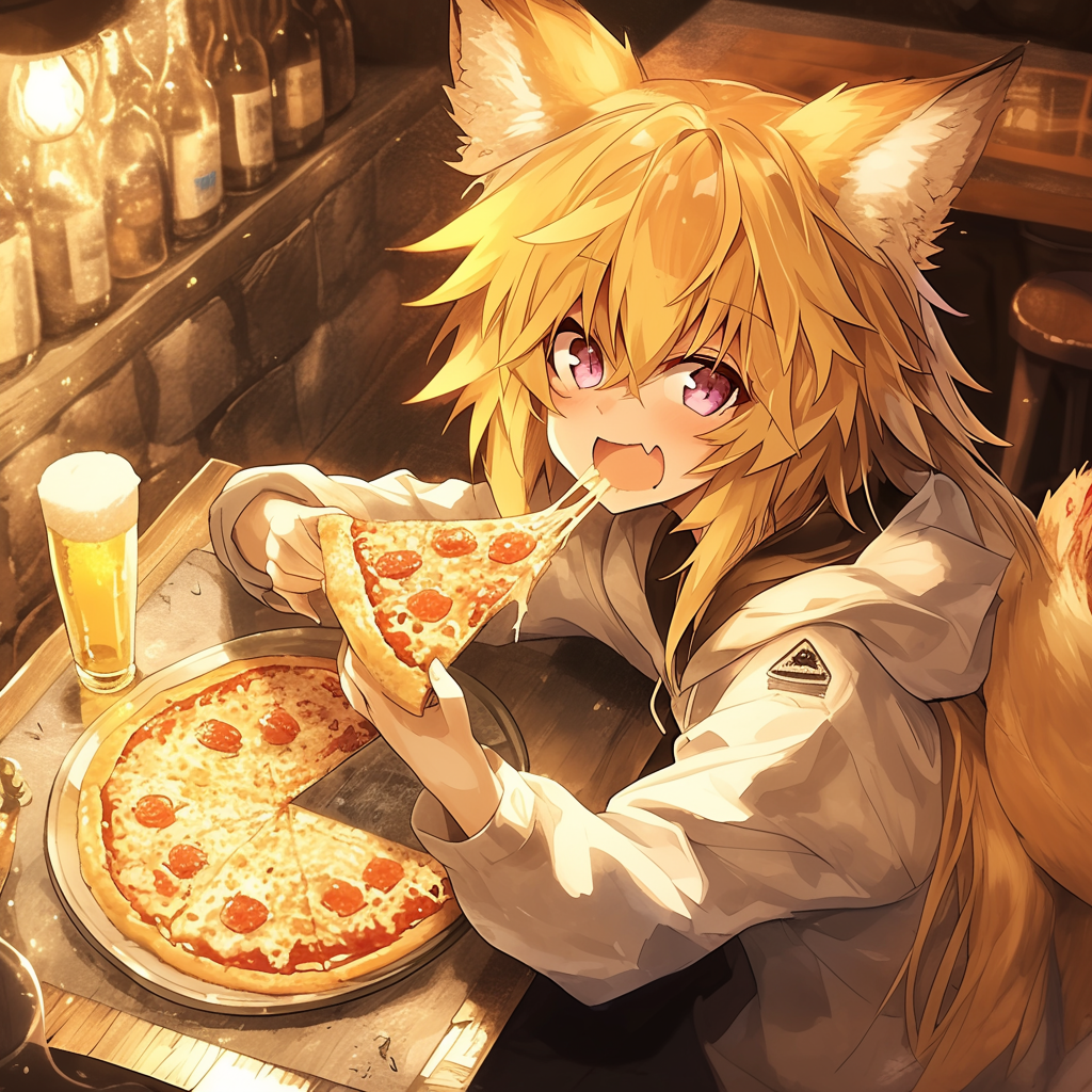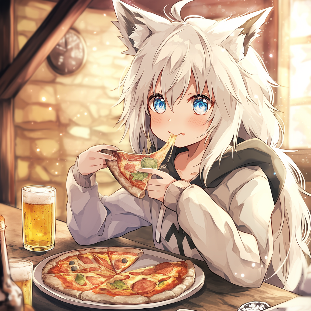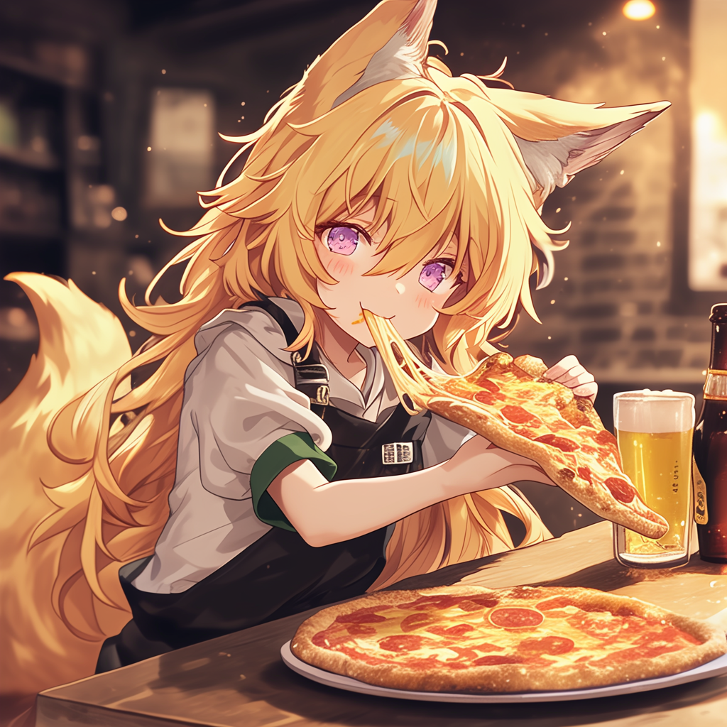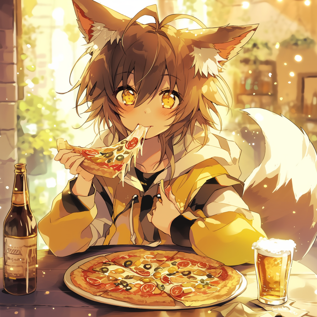 狐耳娘とピザとビール