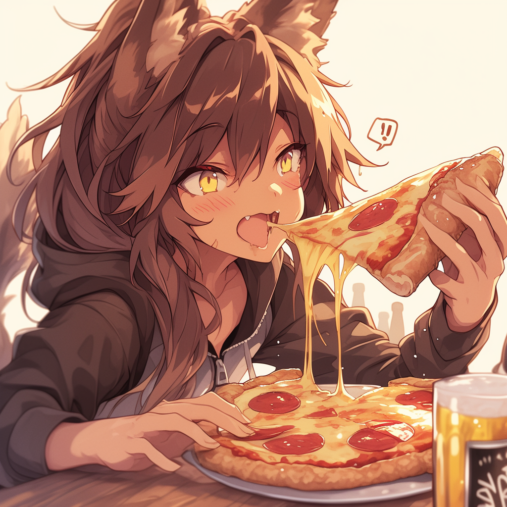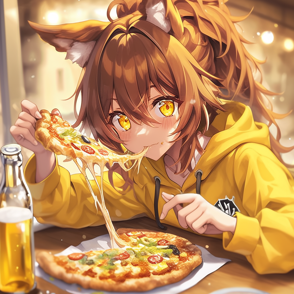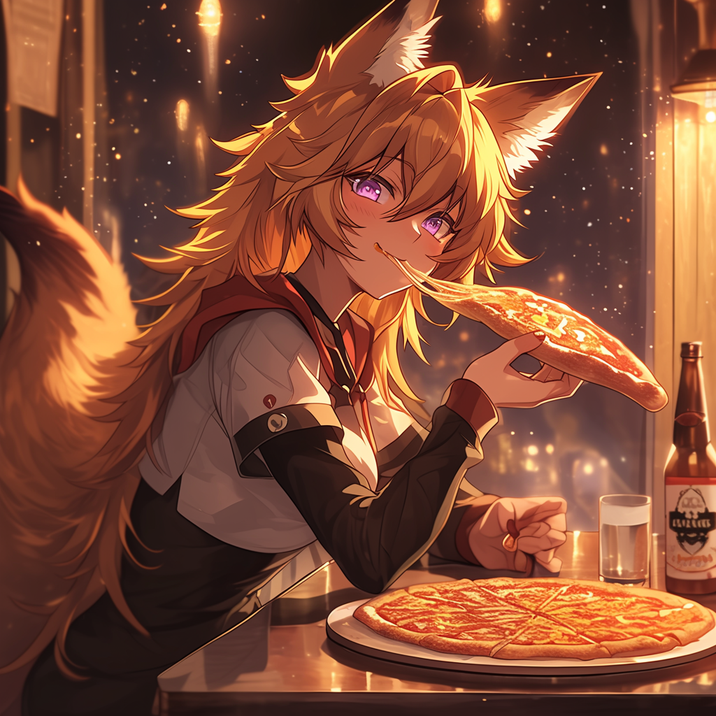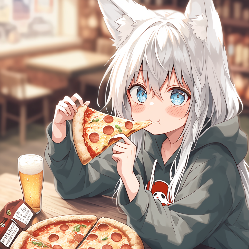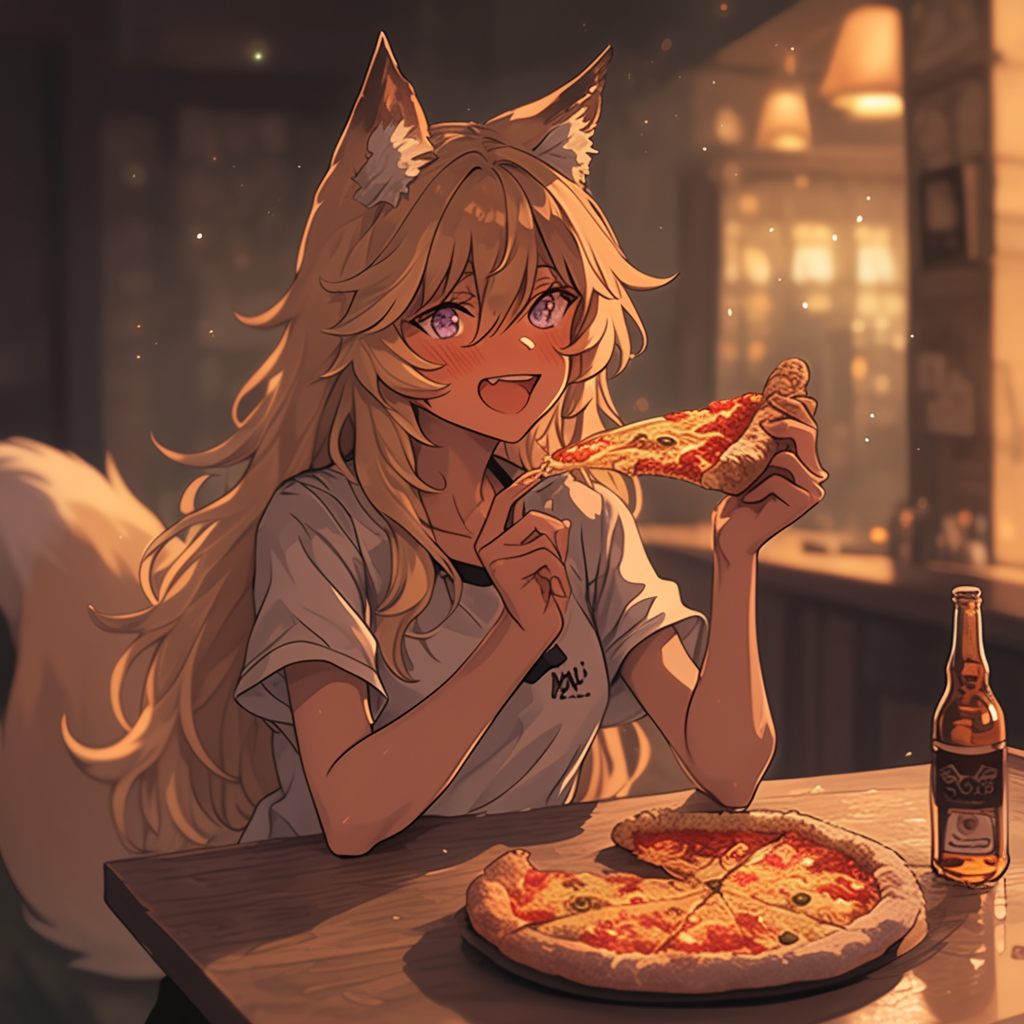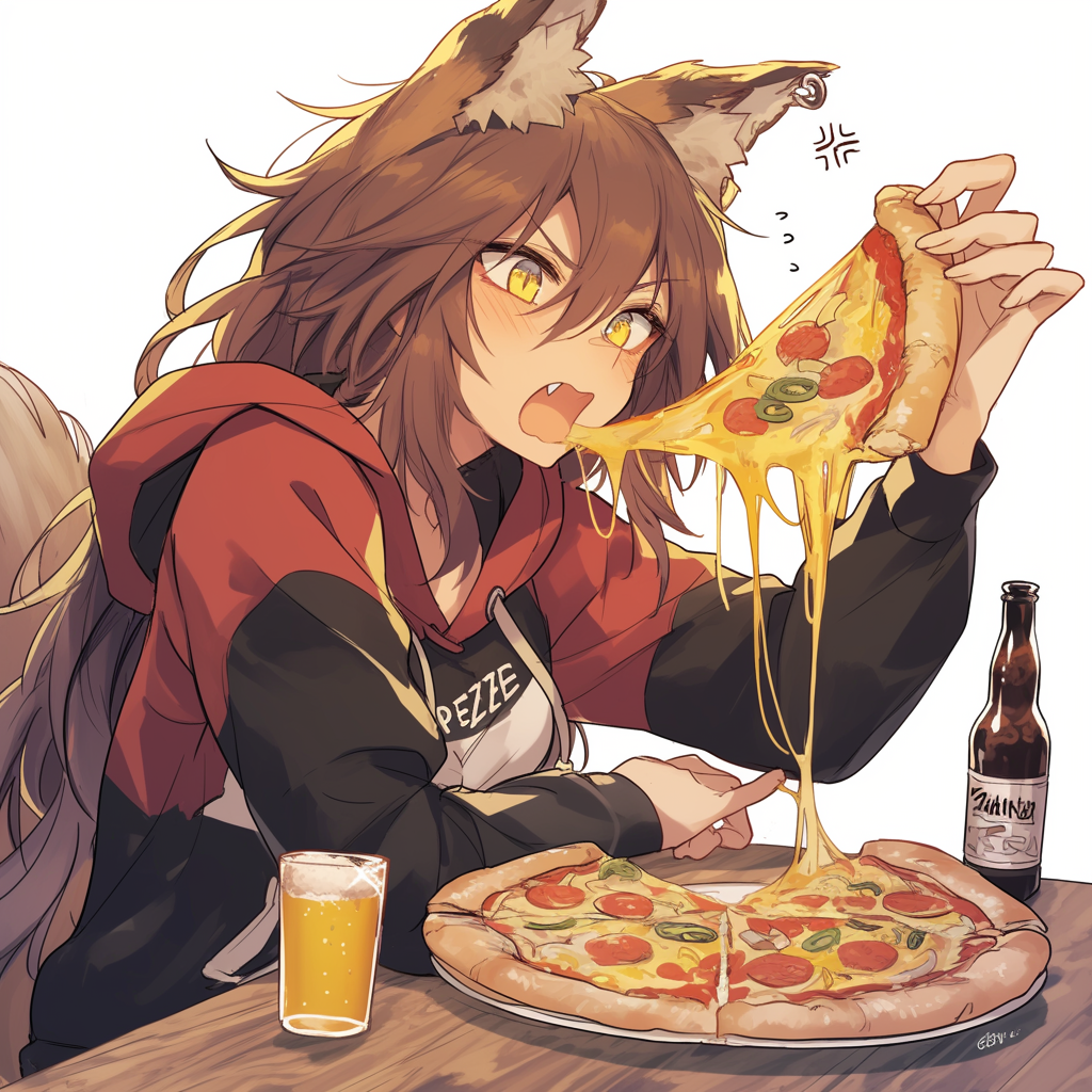 狐耳娘とピザとビール