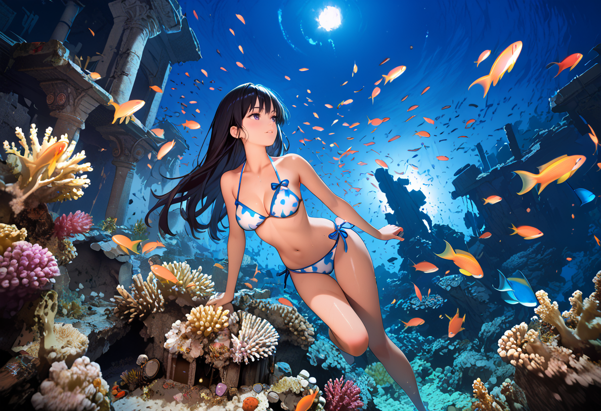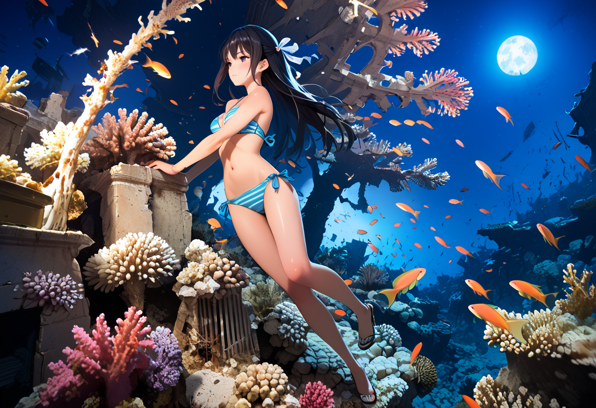 海中遺跡と珊瑚礁
