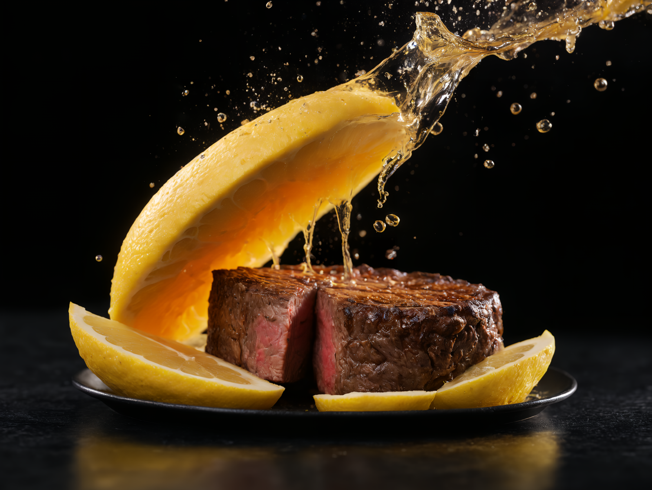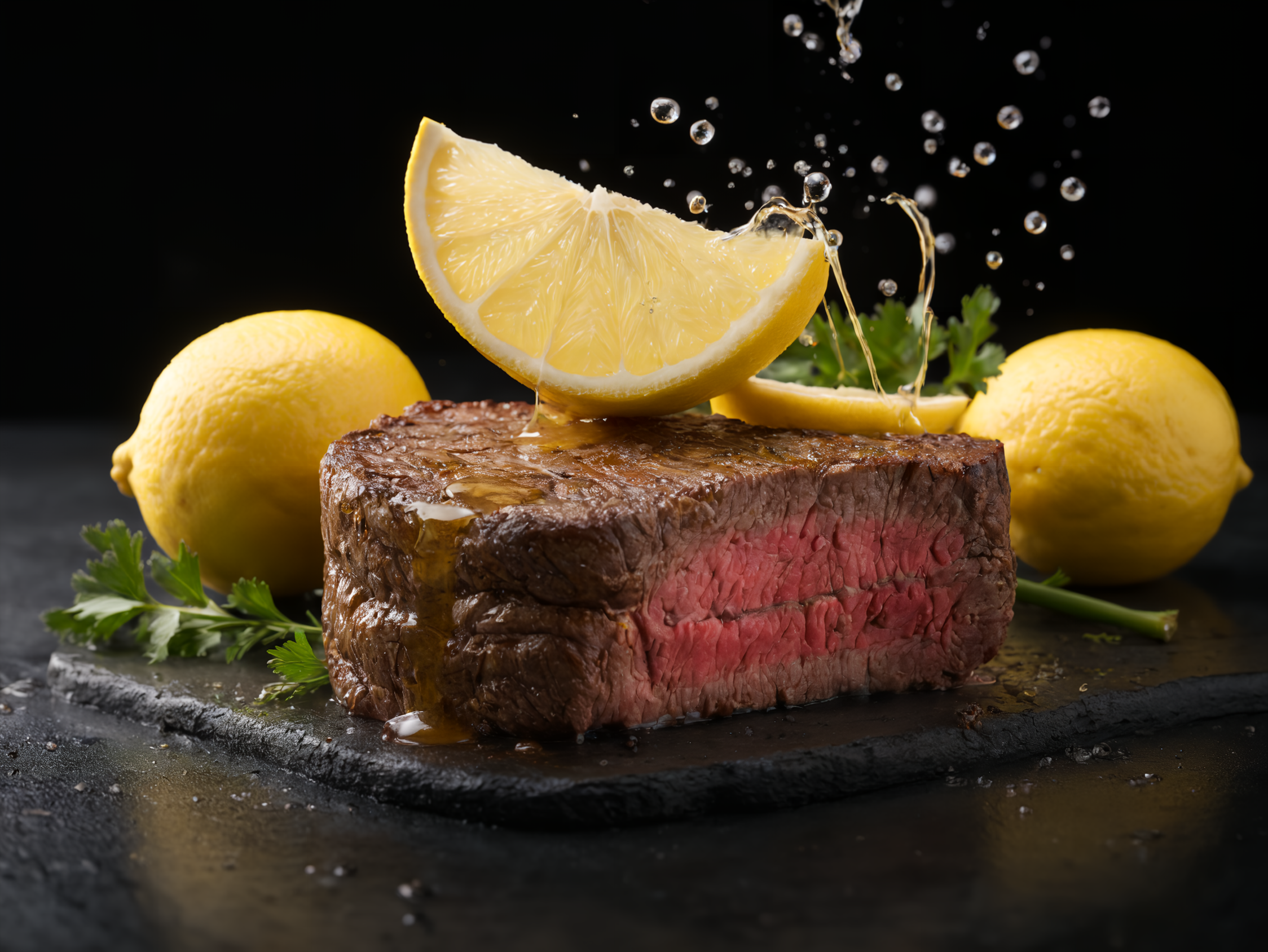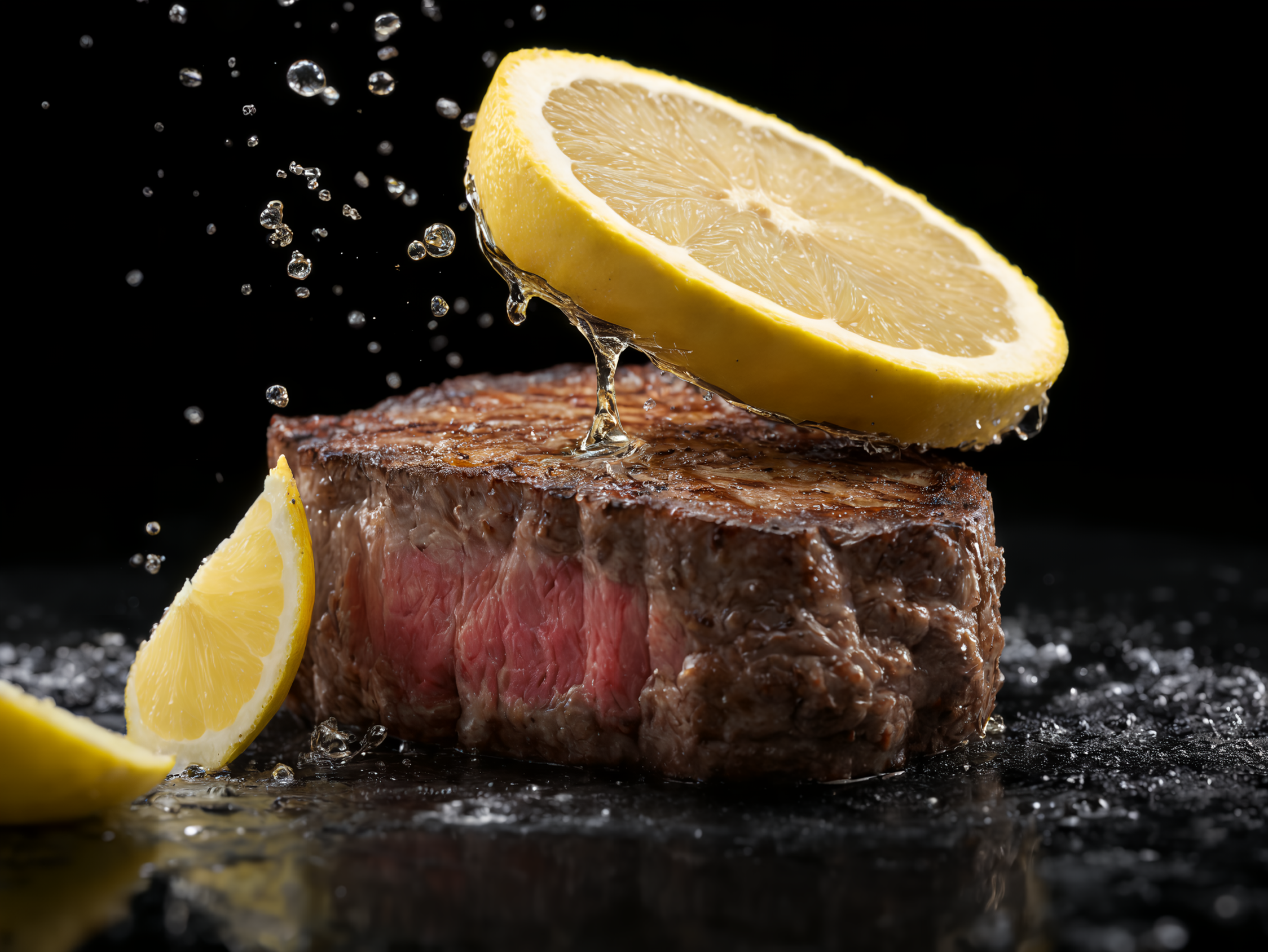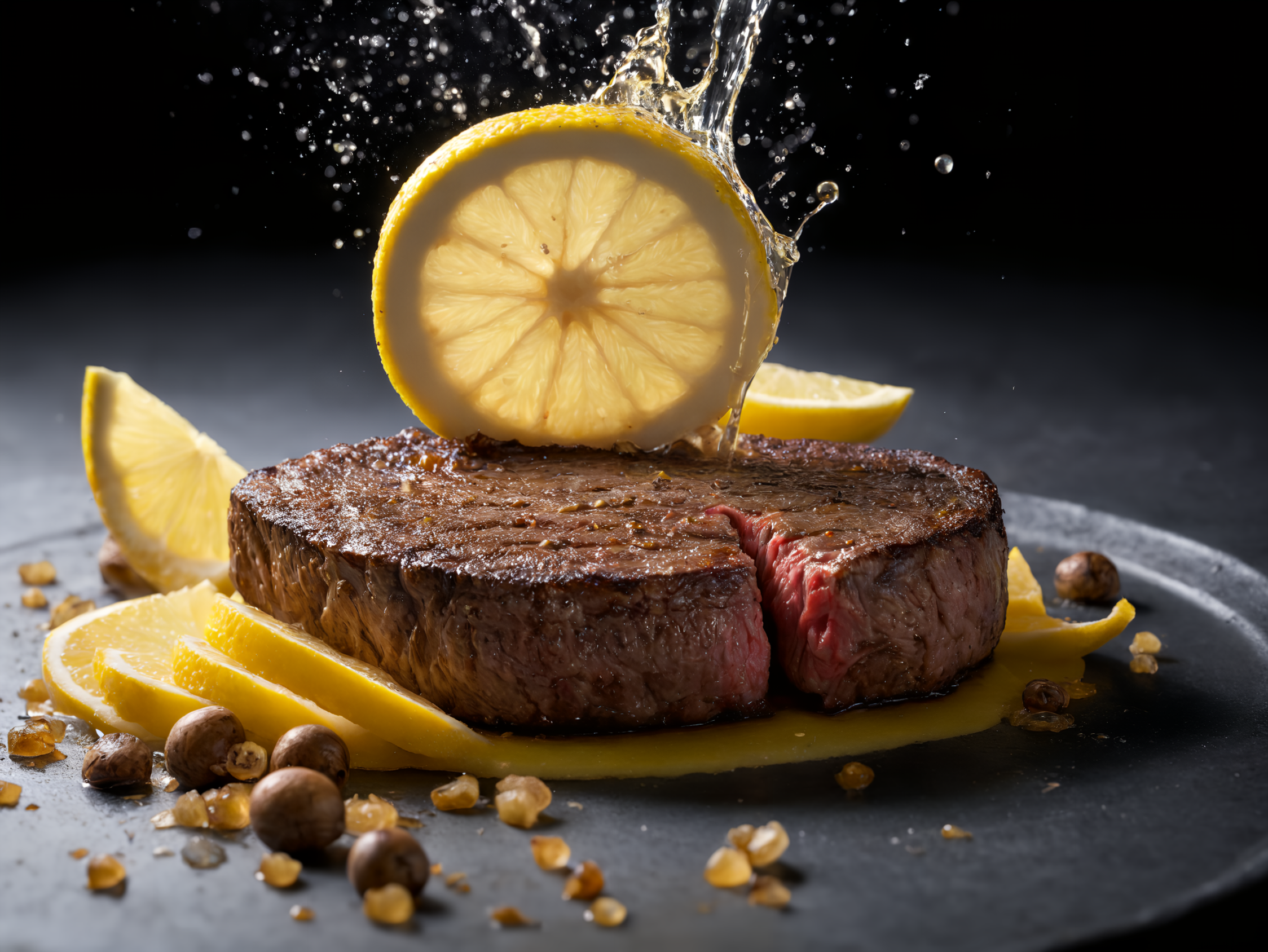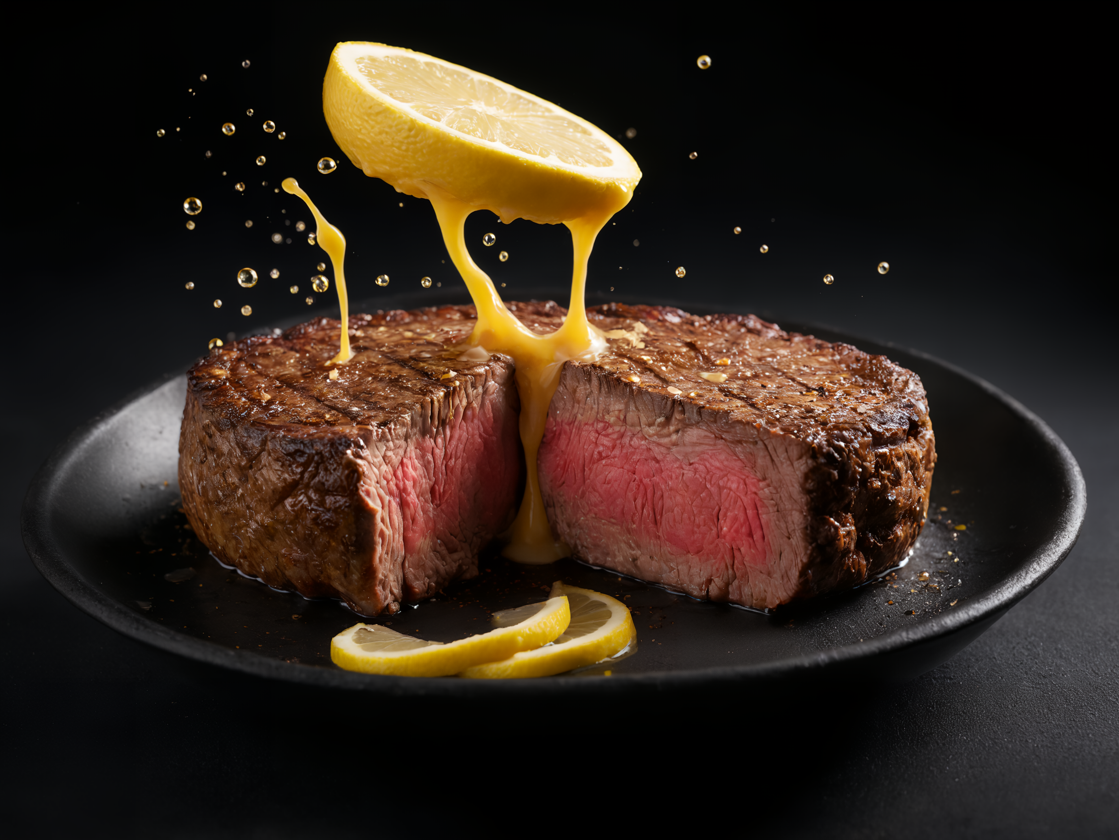ステーキにレモンかけちゃいますねー!