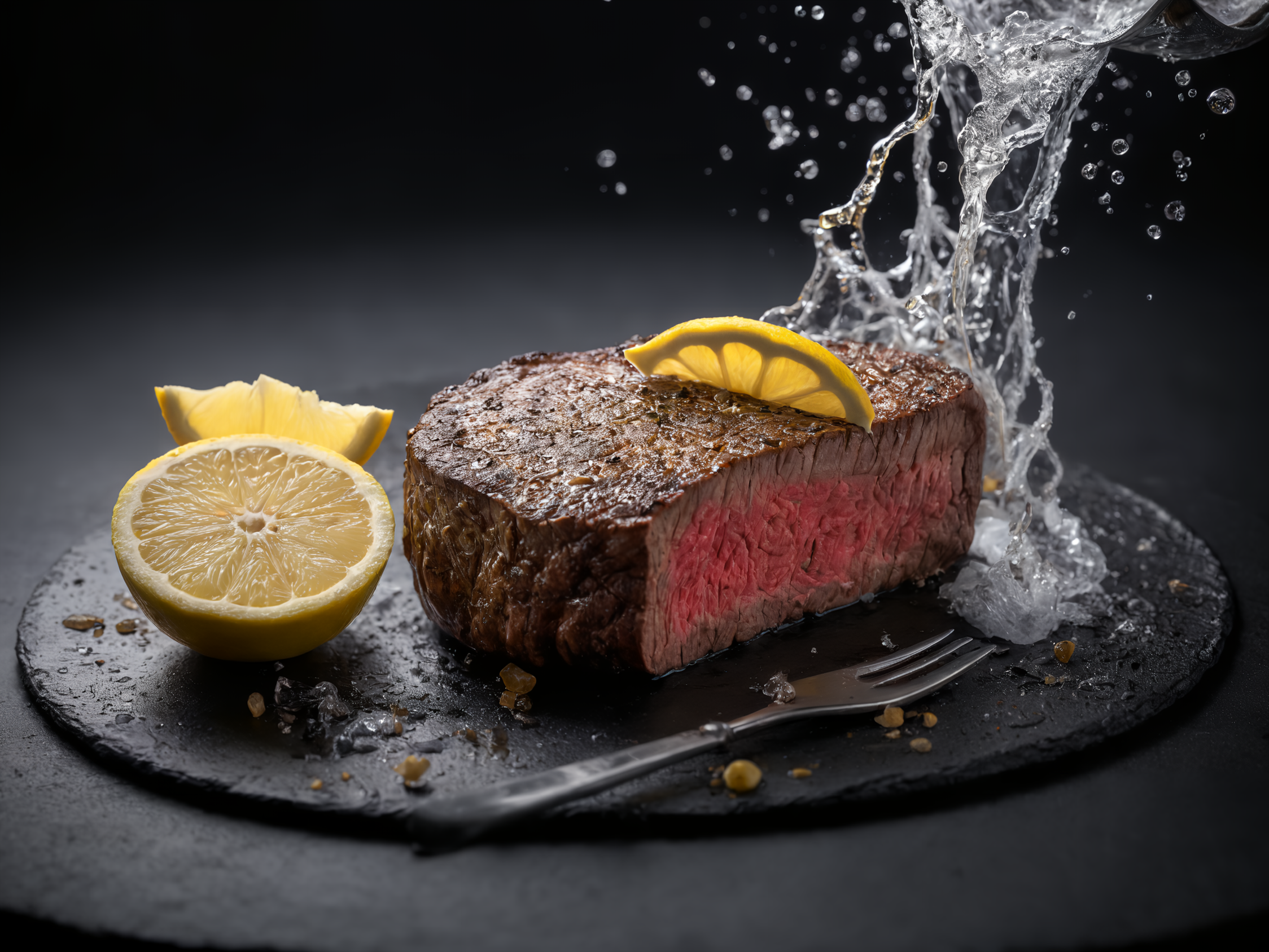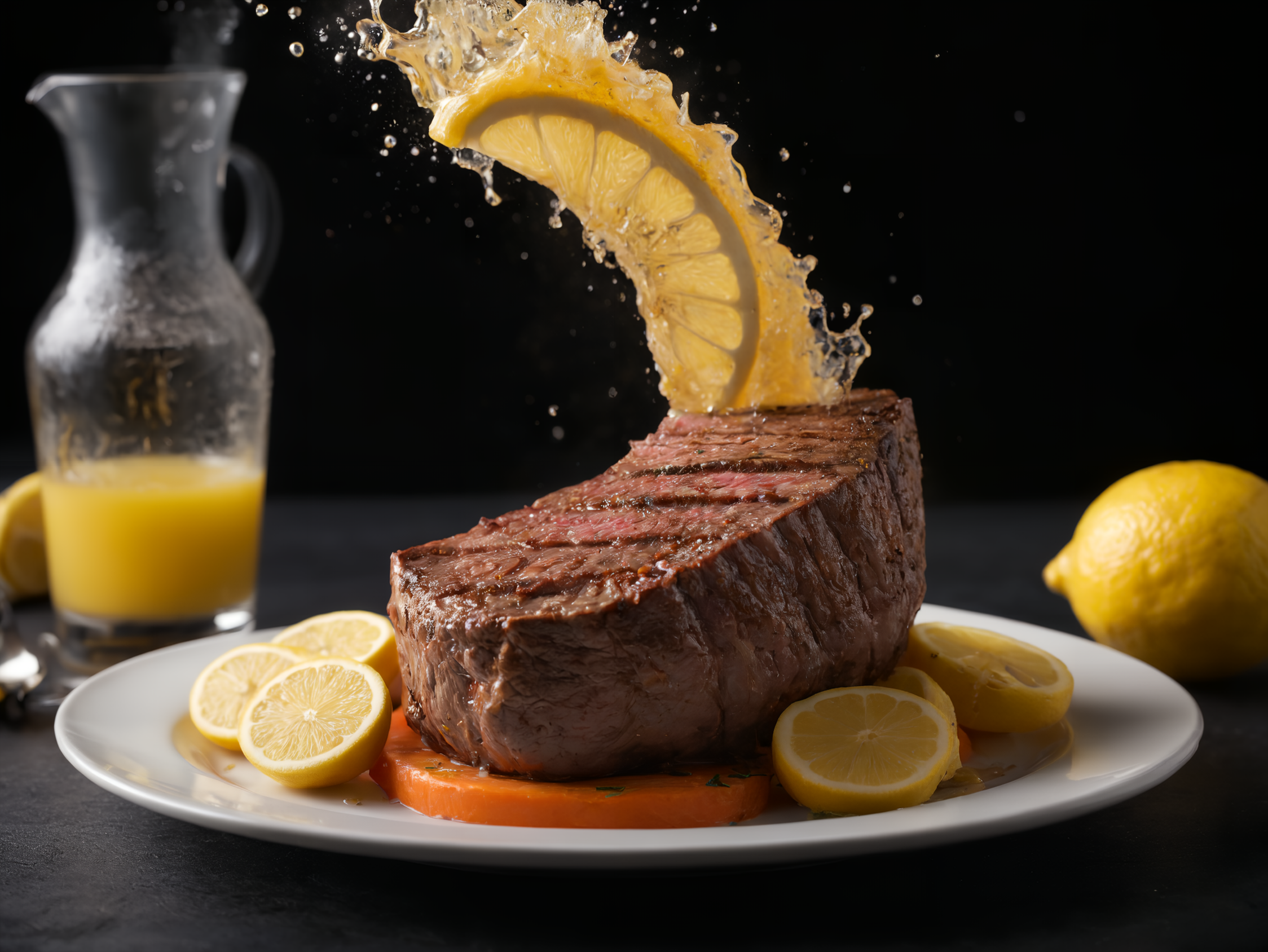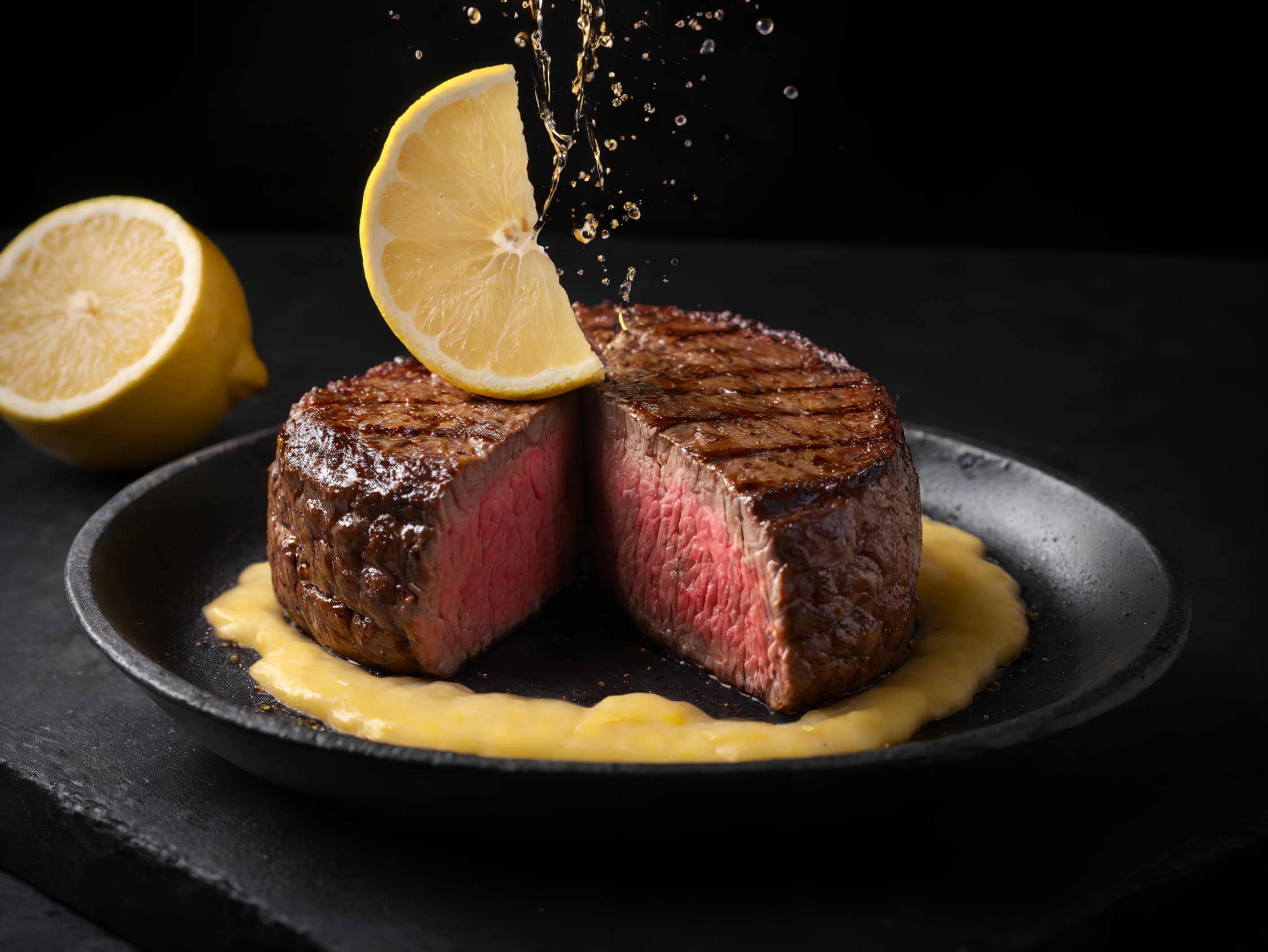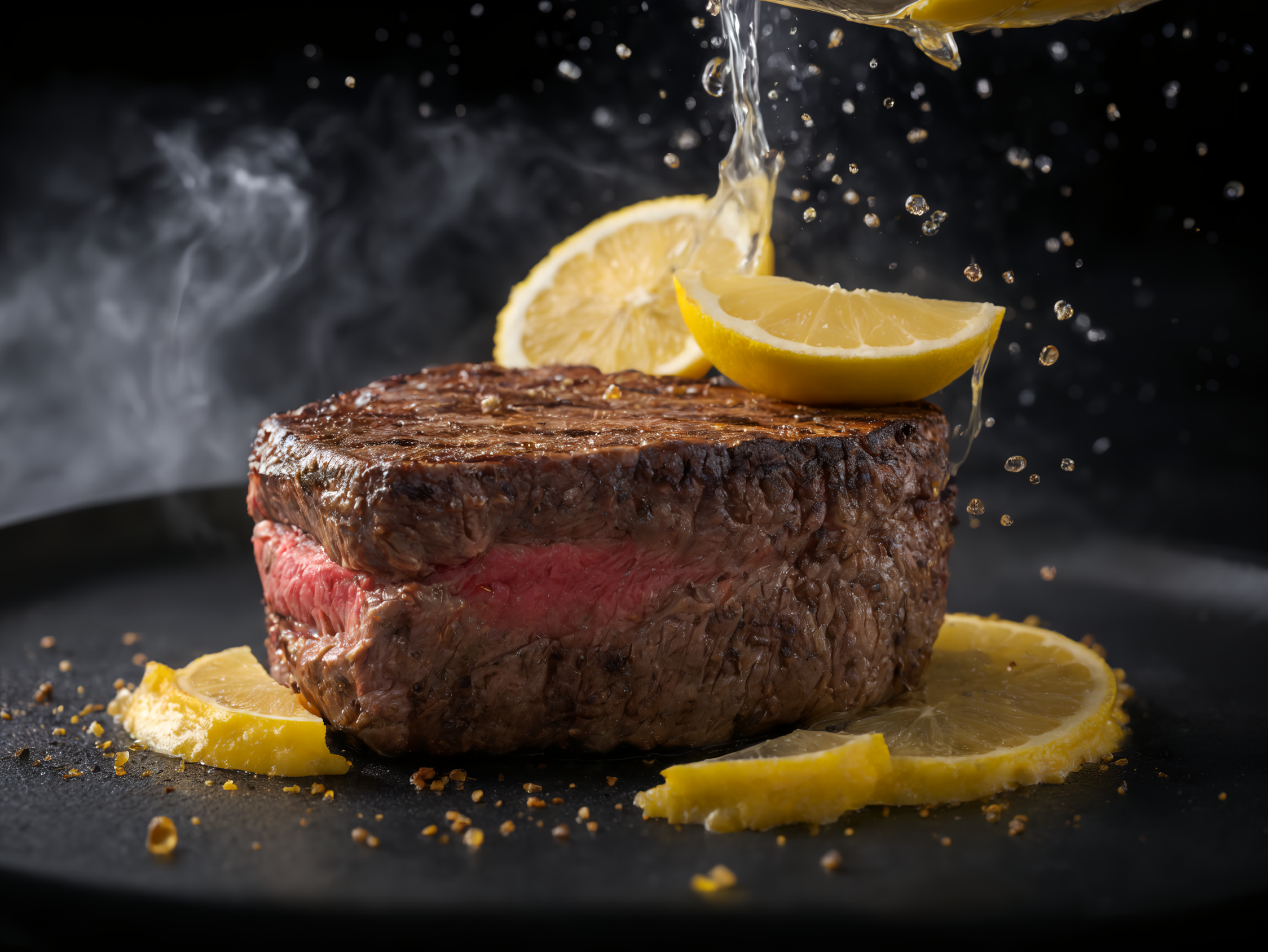 ステーキにレモンかけちゃいますねー!